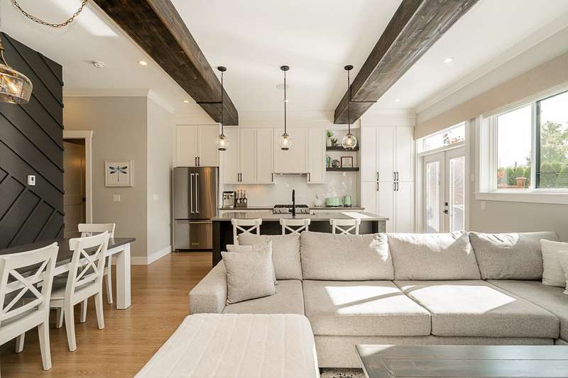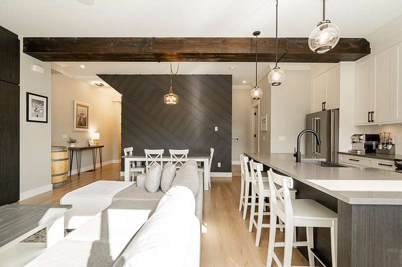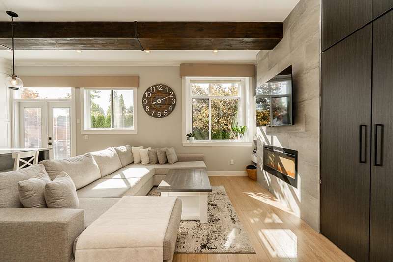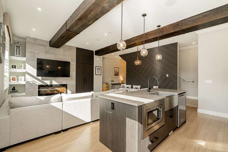 Step into this stunning 4-bedroom executive townhouse! Enjoy the modern open-concept main floor plan. Cook in the gourmet kitchen with its 5-burner gas stove, stainless steel appliance & massive quartz island while loved ones gather nearby. Snuggle up by the cozy fireplace in the living room on an fall evening. Enjoy sunny afternoons or weekend barbecues in your private backyard with low-maintenance artificial turf, perfect for kids & pets. Unwind in the spacious primary suite with vaulted ceilings, a spa-like en suite & a private patio just for you. The finished basement adds space to grow with a rec room, wet bar, bonus space & guest bedroom. With a double-wide garage for storage, great amenities & a location near beaches, parks & hiking trails. Quick Commute just a few minutes to Hwy 99