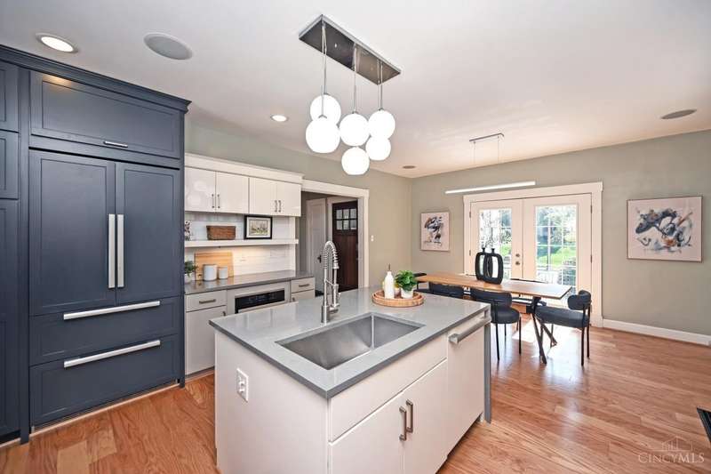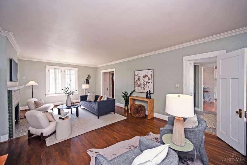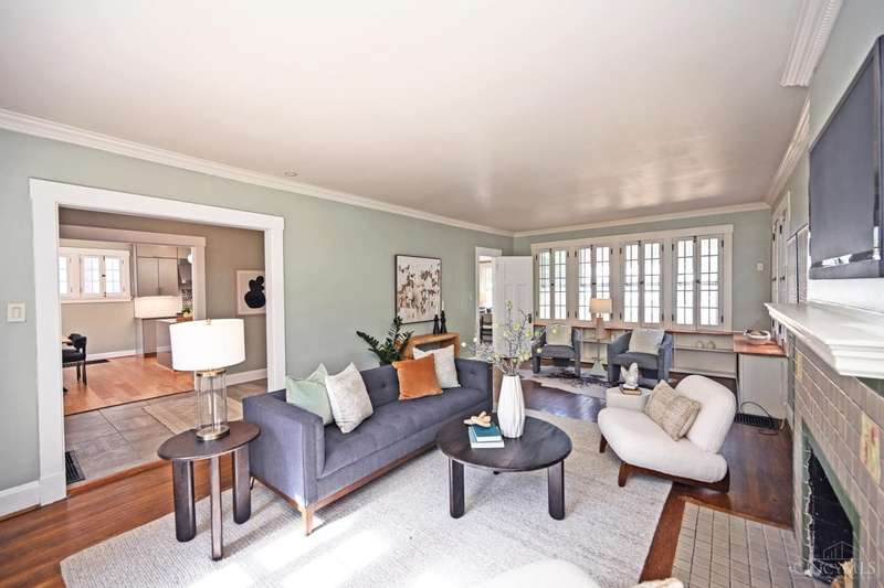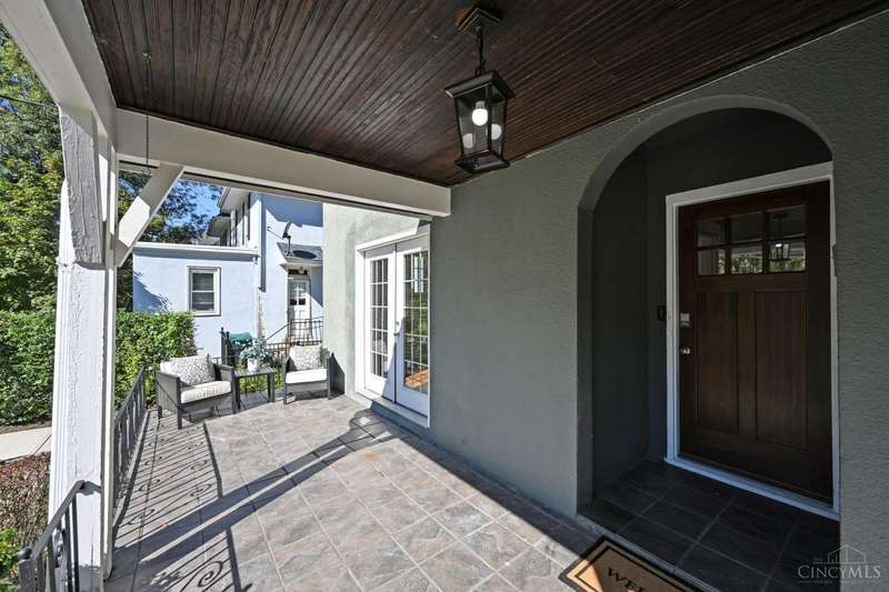Beautifully updated Tudor in the heart of Paddock Hills. This charming home is tucked away on a quiet no-outlet street, with easy access to major highways and all that central Cincinnati has to offer. Inside, you'll love the spacious chef's kitchen featuring high-end appliances, a pot filler at the convection/steam range with commercial-grade hood, and open into the dining area, perfect for cooking and entertaining. Enjoy outdoor living on the large, front porch or the large back deck, ideal for relaxing or hosting guests. The home boasts generously sized rooms throughout, including a third-floor bedroom with its own en-suite bath. The long driveway and detached two-car garage offer ample off-street parking. With classic Tudor charm and modern updates, this home is a rare find in one of Cincinnati's most desirable neighborhoods.