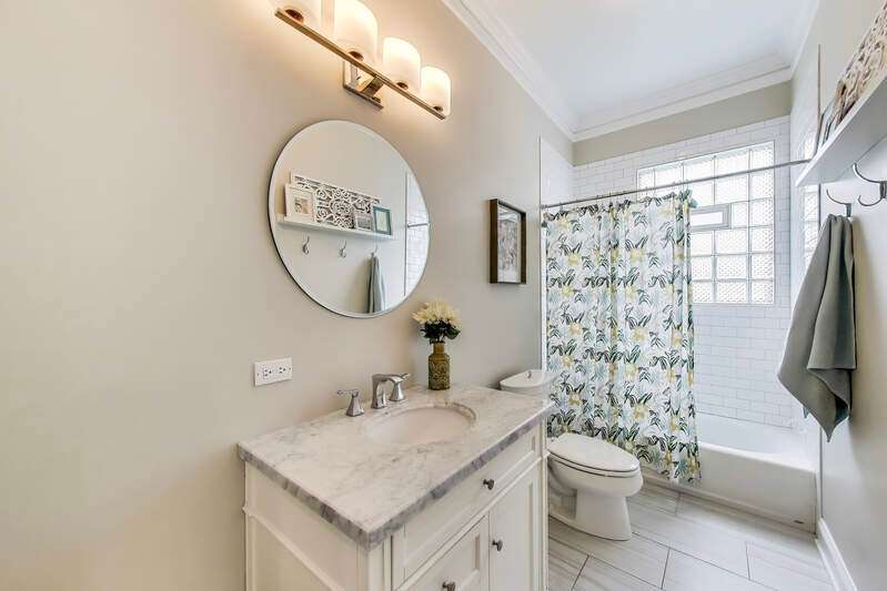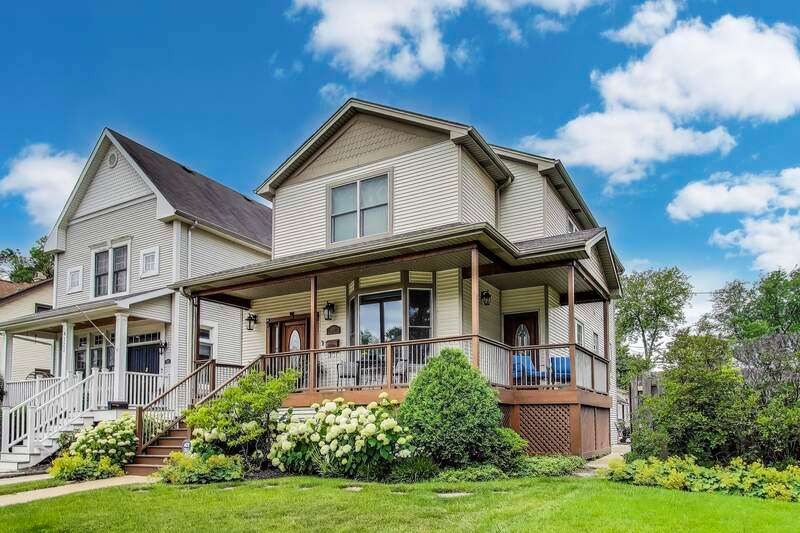 RARE DOUBLE LOT in Old Irving Park! Nestled on a sought-after tree-lined street, this beautiful 4-bedroom, 4-bath home features a welcoming wrap-around covered porch and the perfect blend of timeless character and modern comfort. Fully gutted to the studs and rebuilt as new construction in 2003, the home has been lightly lived in by only 2 owners and meticulously maintained since. Expect to be impressed with the well-designed floor plan that includes 3 spacious bedrooms and 2 full baths on the second floor, including a luxurious primary suite with ample space, walk-in closet, and spa-like bath with double vanity, over-sized tub, and separate shower. The chef's kitchen is a showstopper with 42" white custom cabinetry, professional stainless steel appliances, granite counters, marble subway tile backsplash, a large pantry closet, butler's pantry, and generous dining space that opens to the great room with a gas fireplace and built-ins. Oversized windows flood the home with natural light, while thoughtful details-crown molding, wainscoting, and hardwood floors run throughout the main and second levels. Enjoy the benefits of newer construction with zoned HVAC (2025 furnace), newer windows, 2017 tear-off roof, sump pump, drain tile, and more. The finished lower level offers a large recreation space with built-ins, a full bath, ample storage, and a walkout vestibule (12x6) leading to the incredible backyard. Step outside from the family room through sliding glass doors to a new composite deck, flagstone patio, and beautifully landscaped yard-a true rarity in the city! With the home and 2+ car garage being situated on the Southern half of the lot, the "yard" is suburban worthy! All this in a premier Old Irving location near Kolmar Park, the Blue Line, and top-rated schools including Level 1+ Belding Elementary and Disney II Magnet. Easy access to 90/94, Independence & Portage Park, the farmer's market, a plethora of restaurants and nightlife, and so much more. A true gem in one of Chicago's most desirable neighborhoods!