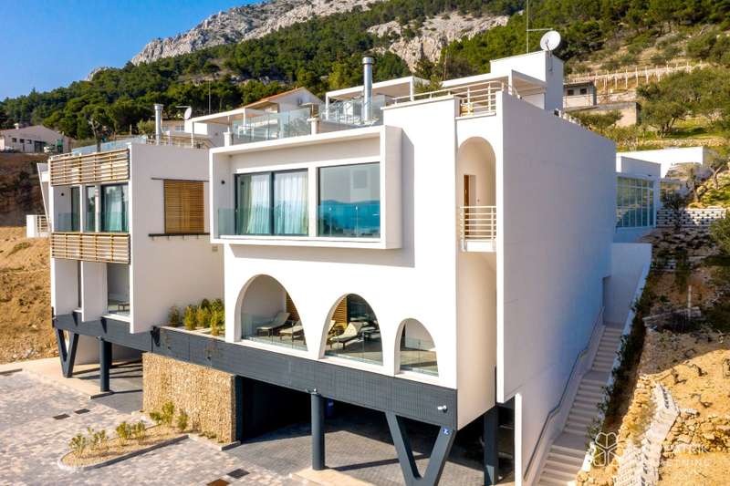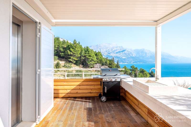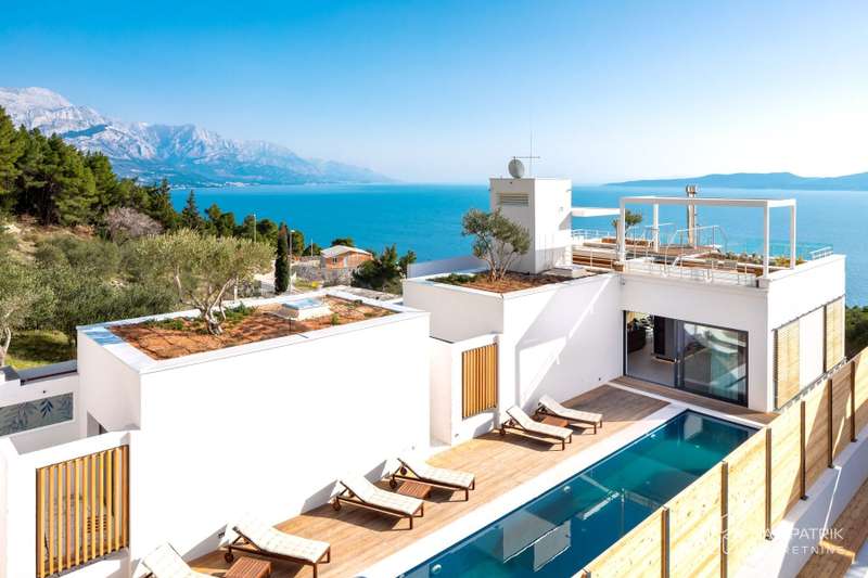 We present Villa Bura, a masterpiece of modern architecture, spreading over 297 m2 of luxurious living space, surrounded by a spacious garden of 593 m2 where nature and elegance merge in perfect harmony. This villa, located in an idyllic setting near the historic town of Omis, is designed to provide a timeless sense of peace and luxury with unforgettable views of the azure blue sea and Dalmatian islands.