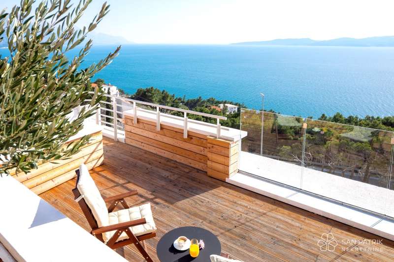 Two lavish villas with panoramic views are located on a total plot area of 2,253 m2, only 200 meters from the sea. It is possible to purchase both villas together or each separately.
