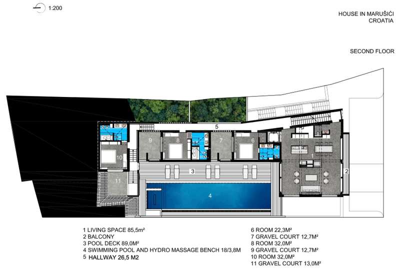 Villa Bura - ground floor + 2 floors + rooftop terrace - area 297 m2 (3 bedrooms + 3 bathrooms + 7 terraces + wellness area + gym + pool + rooftop terrace) + 8 parking spaces = €1,600,000