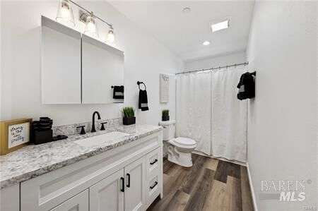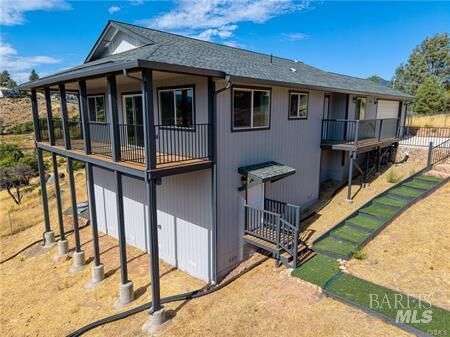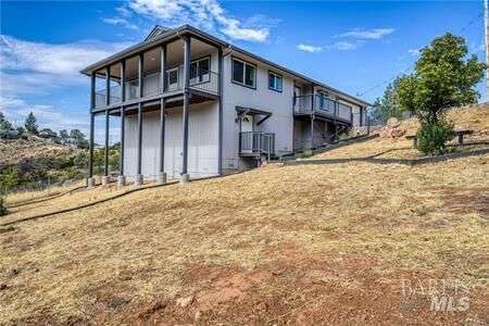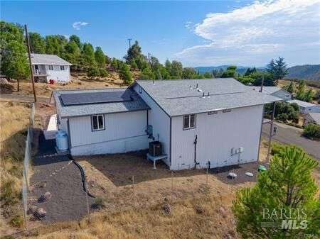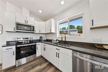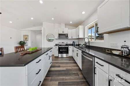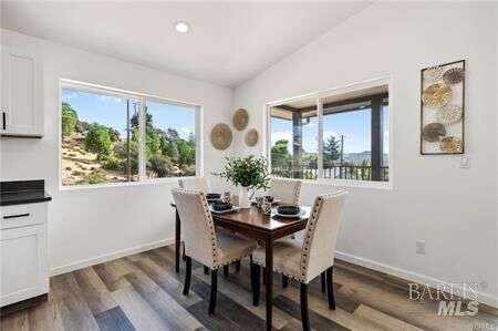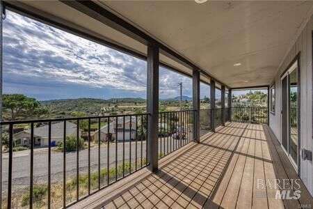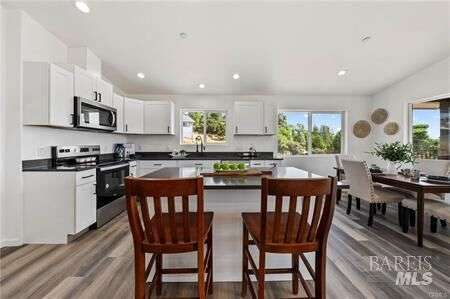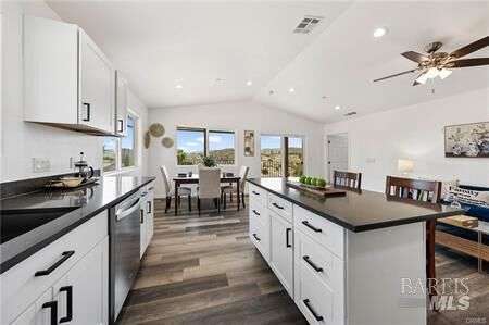 This brand-new contemporary home offers a spacious, fenced yard, a level driveway, and a welcoming front deck. Inside, the open floor plan features vinyl plank flooring, modern can lighting, and classic finishes. The great room has vaulted ceilings and abundant natural light, connecting to the kitchen with a center island, stainless steel appliances, and quartz countertops. The dining room opens to a covered deck, perfect for outdoor living. The private primary bedroom includes an en-suite bath with a double vanity and tub/shower combo. Bedroom 2 offers Mt. Konocti views and is near the hall bath. Additional features include an interior laundry room, a two-car garage, and a third room ideal for a home office. Efficiency features include solar, on-demand water heater, mini split AC, and propane heat. The home also has approval for a 670+ sq. ft. ADU unit with a full kitchen and bath. Located in the Kelseyville Riviera, this community offers easy access to schools, shopping, and water activities on Clearlake.