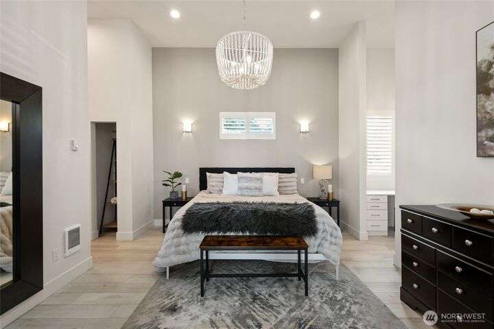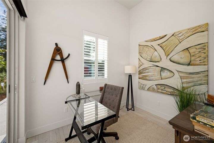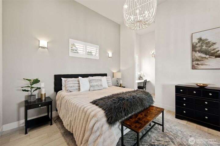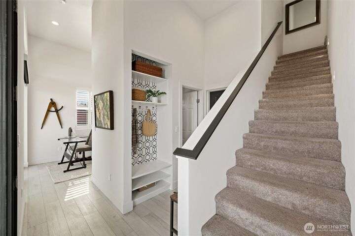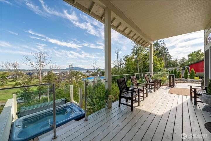 Experience coastal living at its finest in this stunning 3bed, 2.25bath home. With 1,857 sqft of thoughtfully designed space, it offers sweeping bay views, high ceilings, and a spacious primary bedroom on the main floor with an oversized walk-in closet and dedicated vanity area. The gourmet kitchen features granite counters, a butler’s pantry, and opens to a large al fresco dining area with custom bifold windows-perfect for entertaining while enjoying breathtaking sunsets. Upstairs, you'll find two additional bedrooms and a large rec space, ideal for a media room, play area, or guest retreat. A private trail right out your back door leads to community amenities including a pool, golf course, and pickleball court.