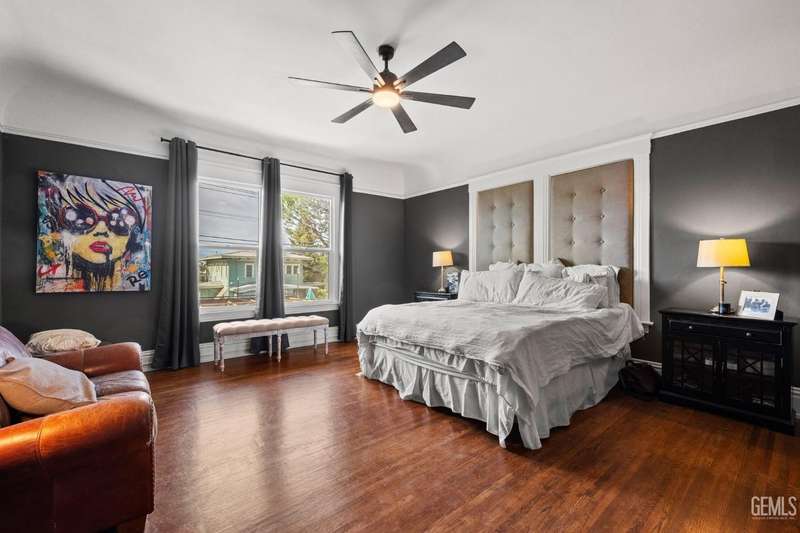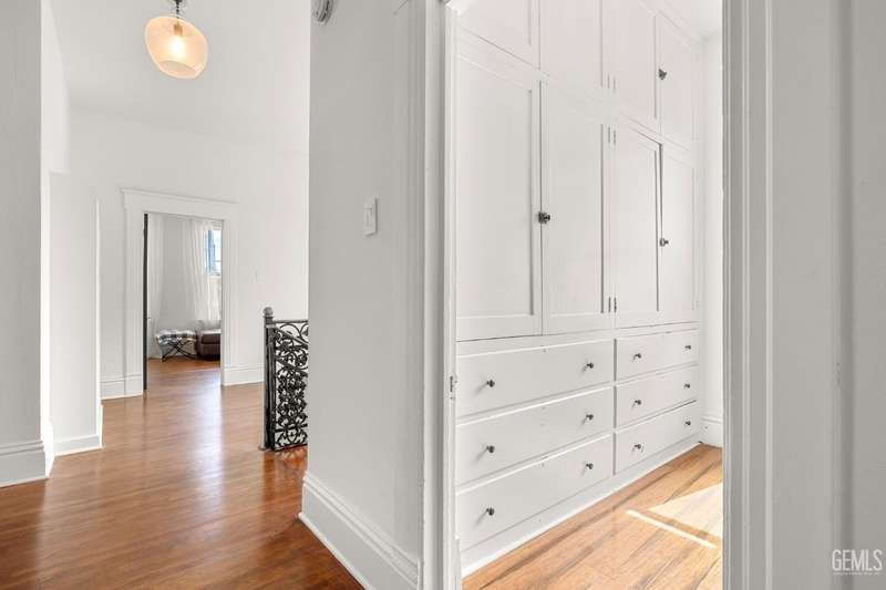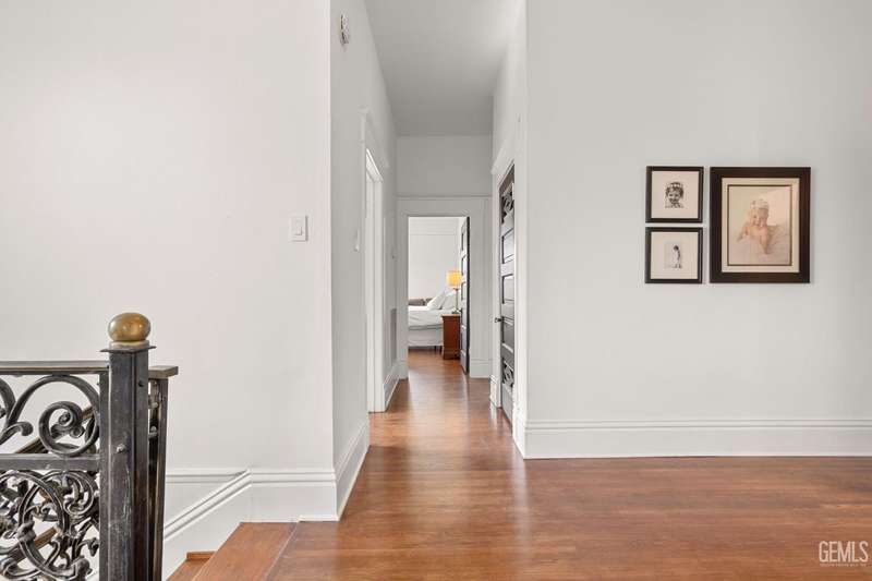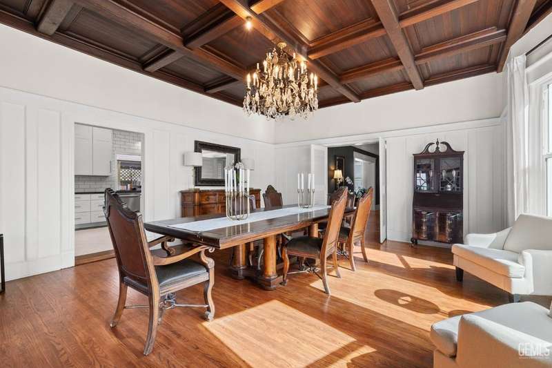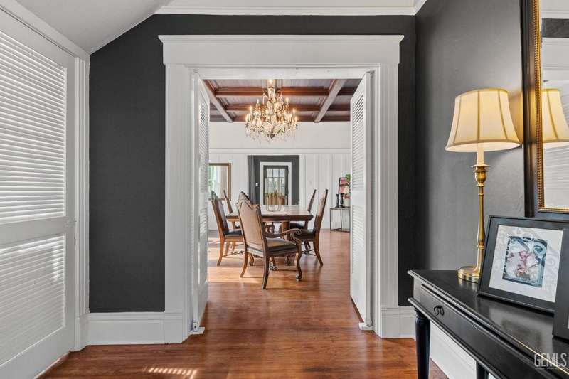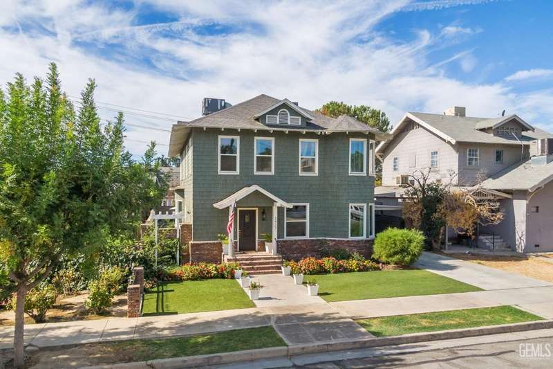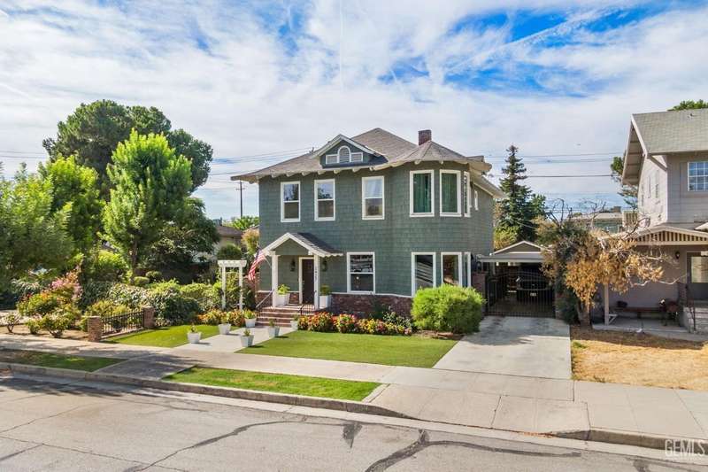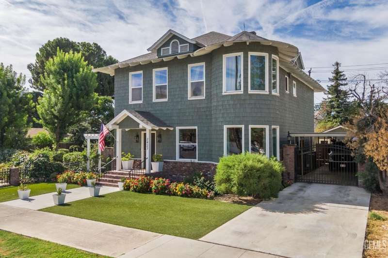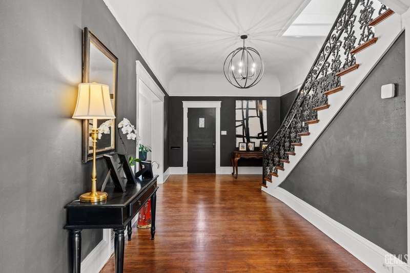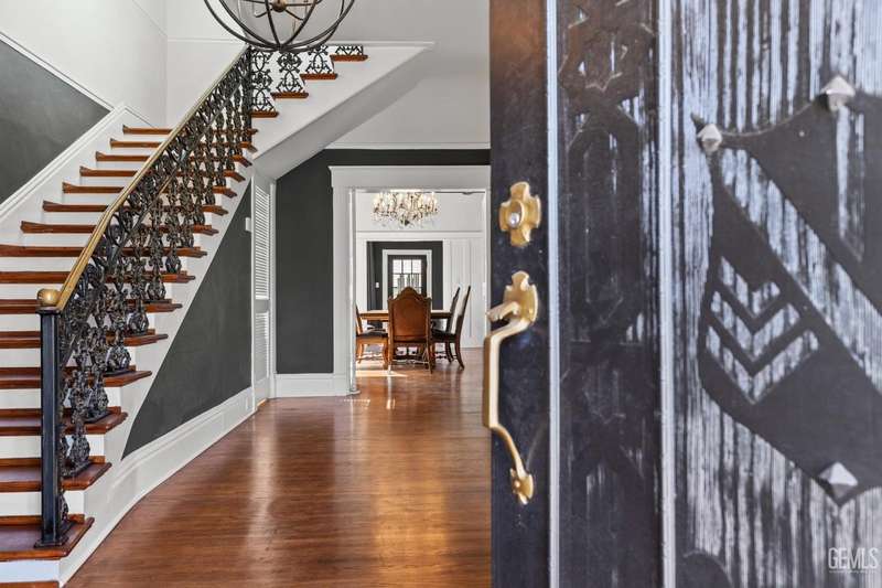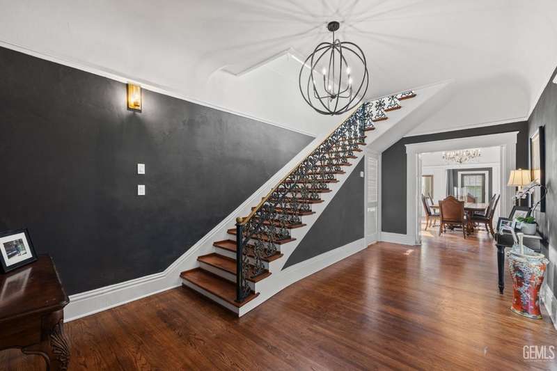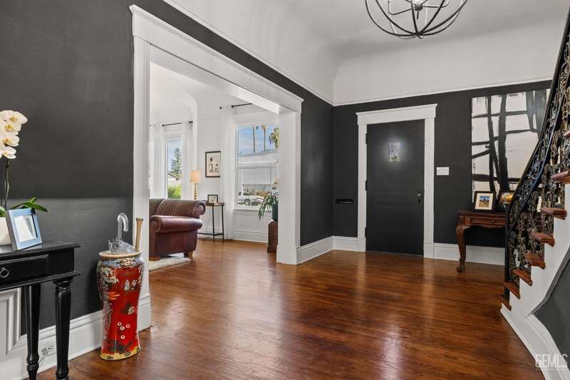 Step into this timeless 1910 remodeled home that blends historic charm with modern elegance. The grand entryway is highlighted by an ornate wrought iron staircase and beautiful refinished hardwood floors throughout. Stunning formal dining room with a dramatic coffered wood ceiling along with a dazzling crystal chandelier. Chef inspired remodeled kitchen with sleek black and white cabinetry, granite countertops, subway tile backsplash, stainless steel appliances, pendant lighting, spacious kitchen nook, and walk in pantry. The spacious, light and bright family room is so inviting with a cozy white brick fireplace, hardwood floors, and new windows. Four large bedrooms and three remodeled bathrooms. Some of the many upgrades to this home include exterior/interior paint, all new windows, front/backyard landscaping, front automatic gate, garage door, and outdoor bbq area. Basement awaiting your creativity! Own a slice of the past with all the comforts of the present!