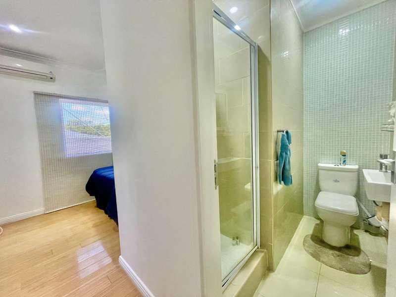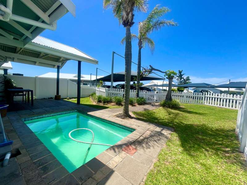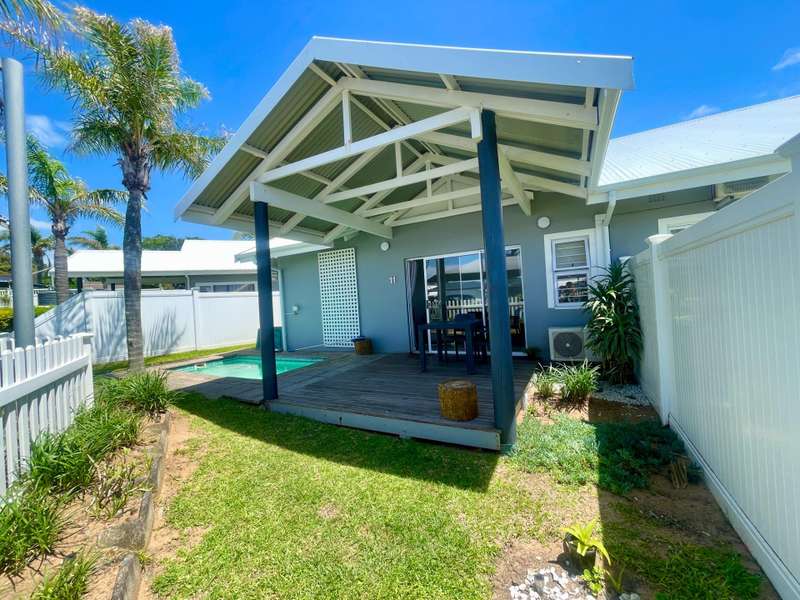 Situated in an upmarket complex is this stunning two bedroom townhouse in the heart of Shelly beach. This townhouse boasts a lovely petite and well manicured garden with a splash pool and a covered patio. Perfect for outdoor relaxation or for entertaining guests. There are stunning distant seaviews from the garden area. You can enter into the home from the main entrance through the covered patio or the side the door at the kitchen. This immaculate and modern townhouse has a spacious and airy open plan living area with a fully fitted kitchen. There are two generous sized bedrooms with en-suite bathrooms. A slim line jojo tank for collecting raining water is on the side of the home for the herd garden and to fill up the splash pool. The complex is pet friendly for our furry little friends. There are two 5000l water tanks in the complex connected to the units. There are two covered parkings allocated for the townhouse as well as visitors parking. Walking distance to Shelly Centre and all other amenities. This townhouse is perfect for retirement, a small family or a home away from home. So much to offer. Call me today to view this rare finding.