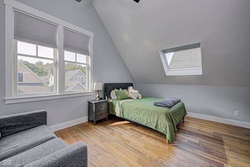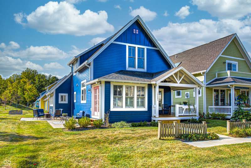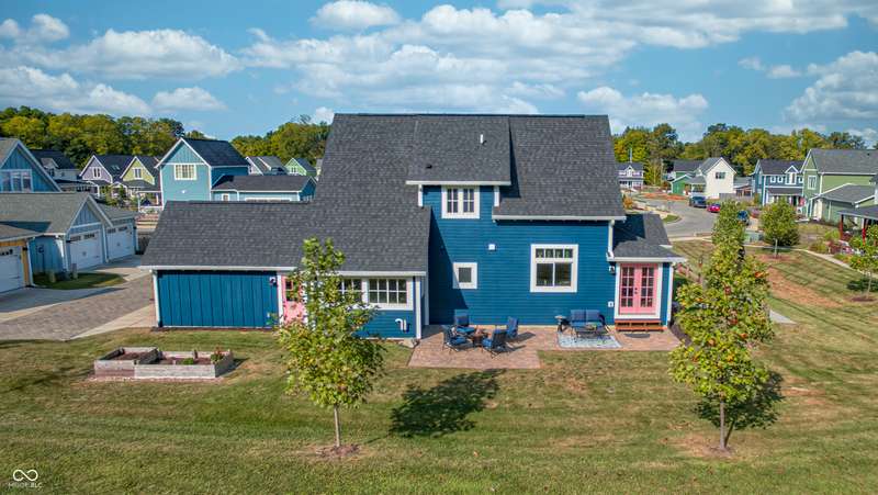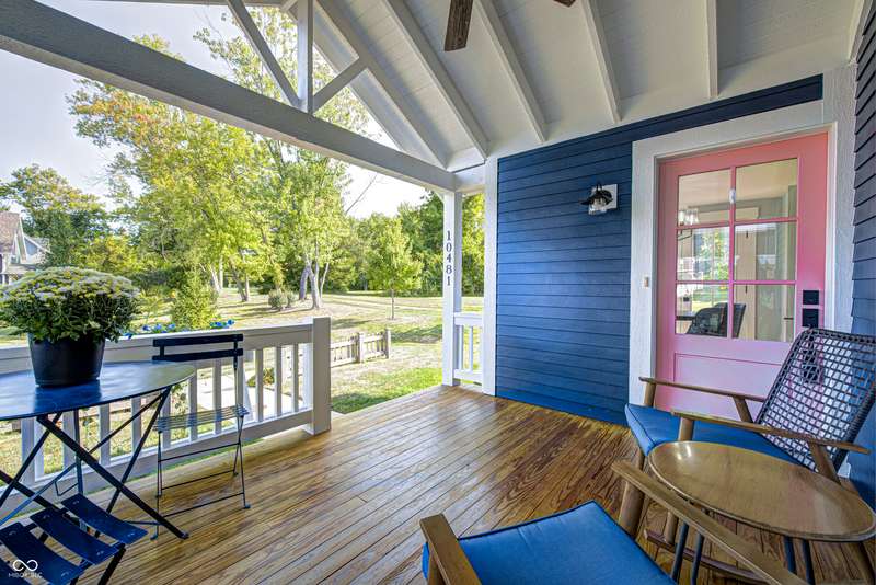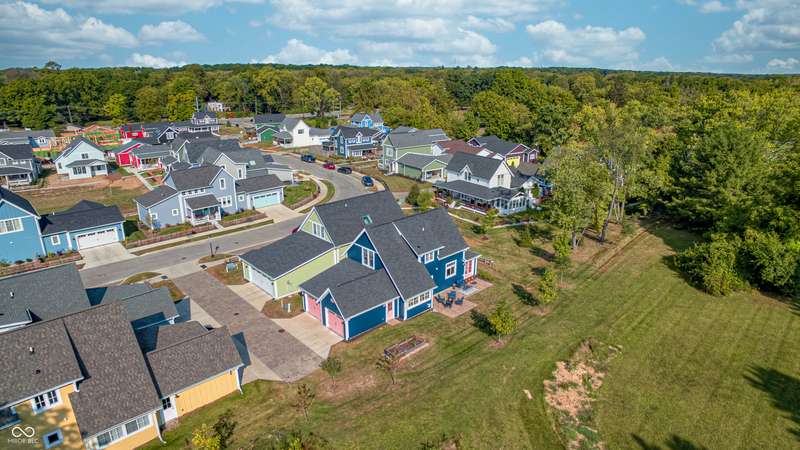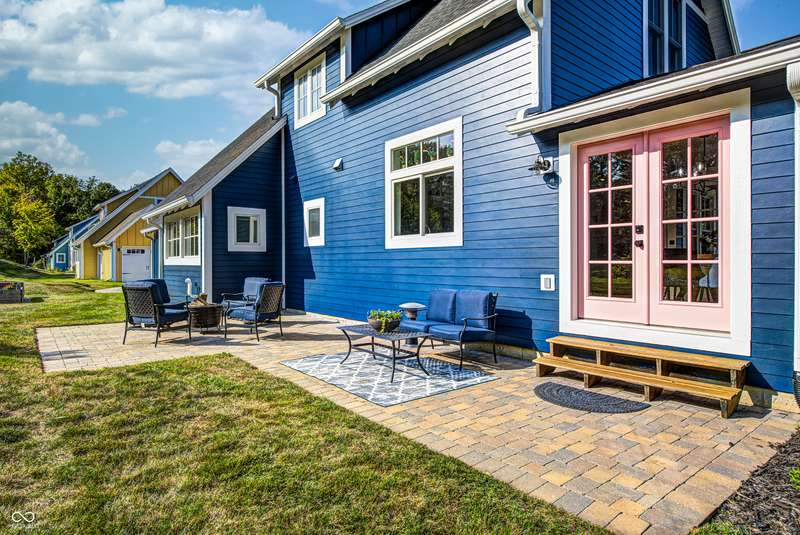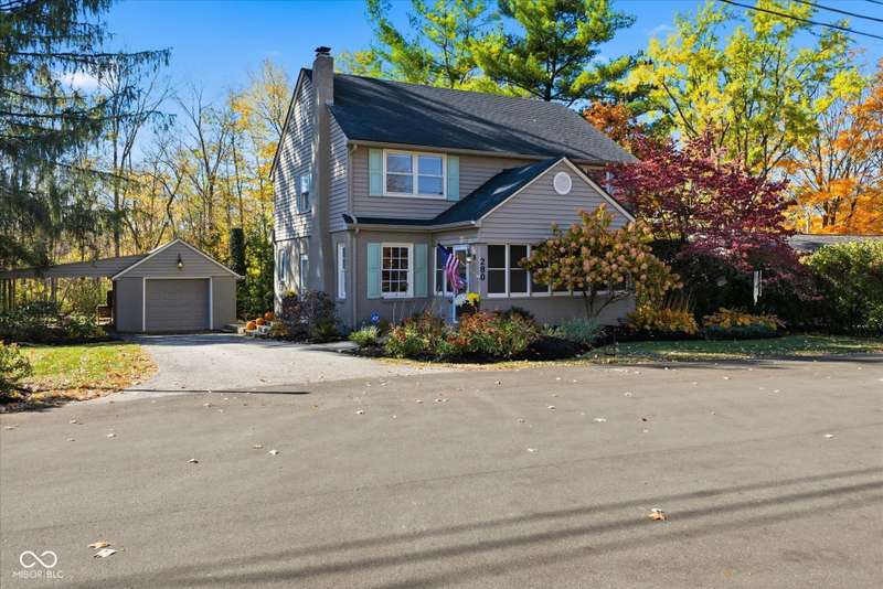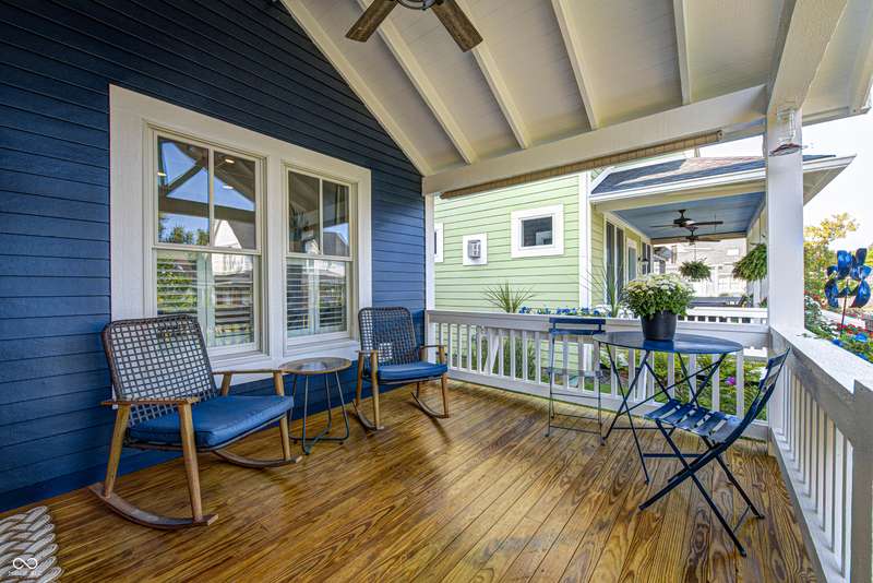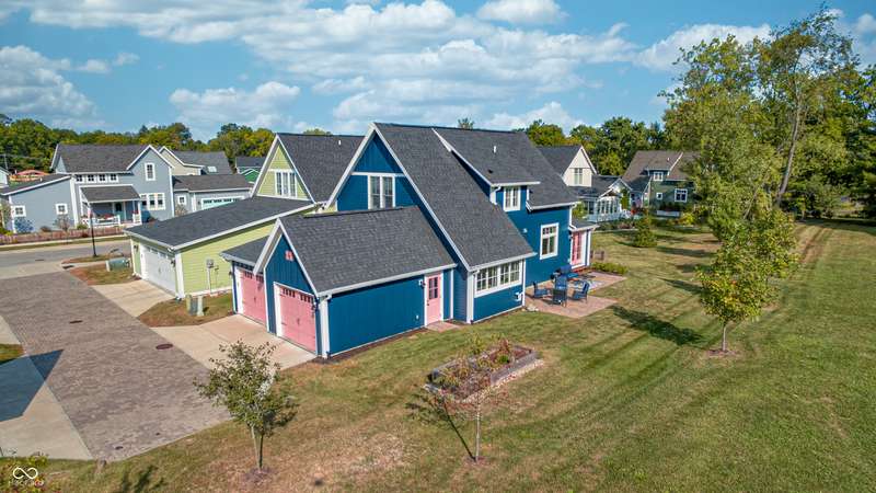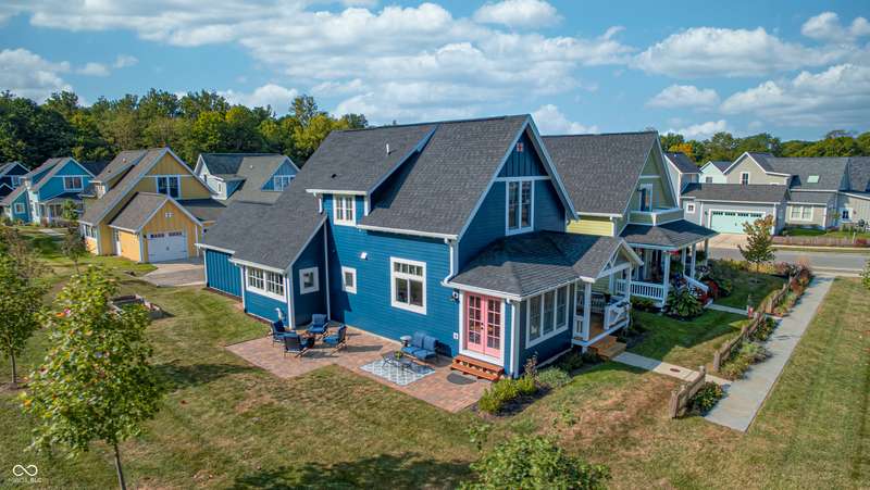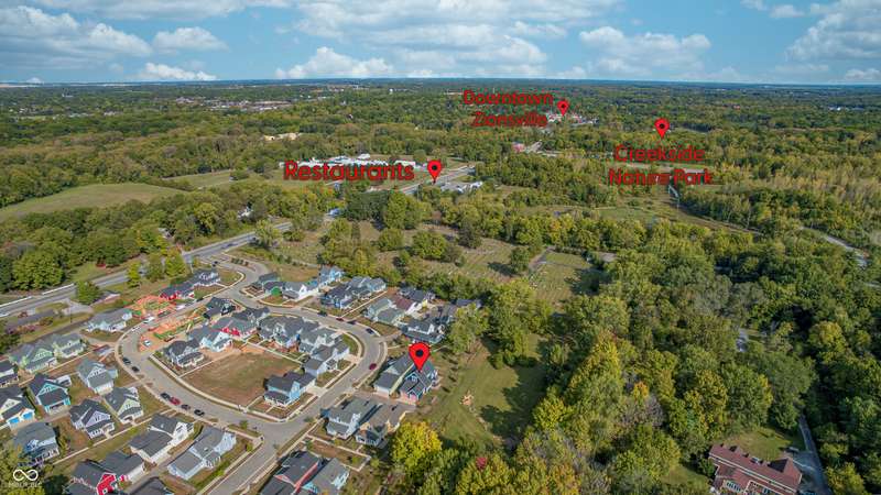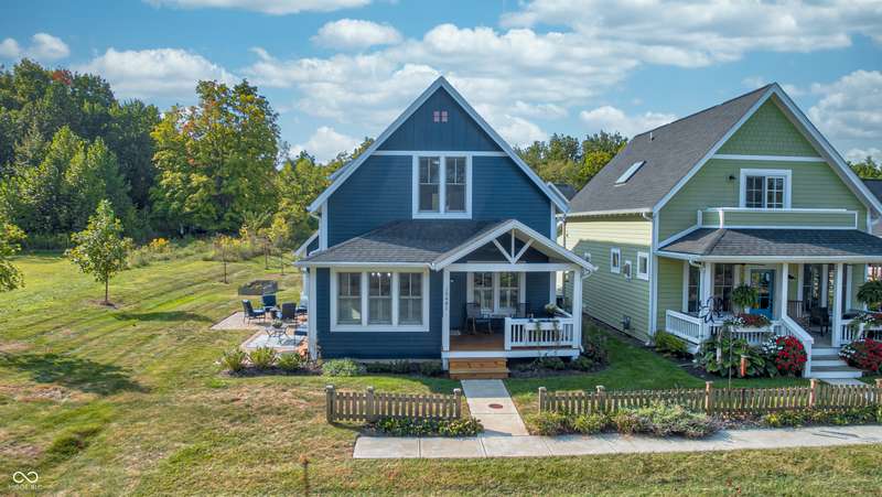 Discover this charming cottage-style home built in 2018 in the heart of Zionsville, offering 3 spacious bedrooms and 2.5 baths with a FIRST-FLOOR PRIMARY SUITE. Enjoy a short walk to downtown Zionsville, the farmer's market, Lions Park, and Creekside Nature Park. Nestled at an ideal end location, the property boasts open views and a peaceful setting. Hardwood floors flow throughout, enhancing the home's architectural details, while solid wood interior doors add to the already quality 3-year hold home. The two oversized bedrooms feature unbelievably large closets and flank a generous full bathroom upstairs. The open kitchen is a chef's delight, with a center island and gas range. French doors lead to a paverstone patio, perfect for outdoor dining, while the welcoming front porch invites you to enjoy morning coffee or evening drinks. The finished basement extends your living space, offering a large storage room plumbed for a sink and a versatile room with glass doors, ideal as an office or workout space. The freshly painted exterior adds to the home's curb appeal. Yard maintenance is included in the HOA for easy living. This home combines charm, functionality, and an unbeatable location for a truly exceptional lifestyle.