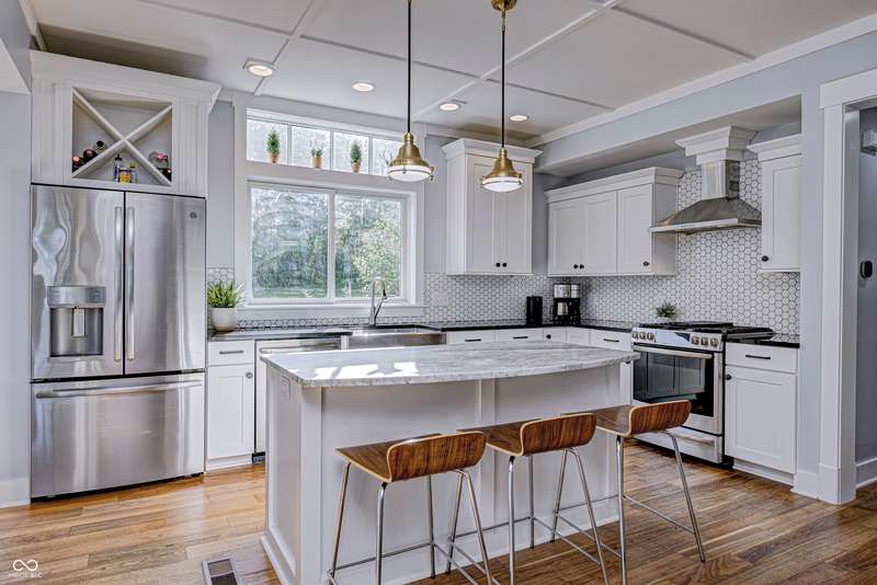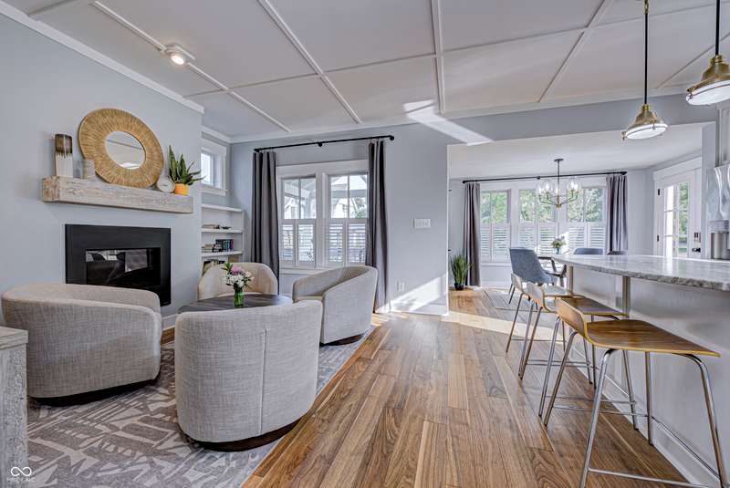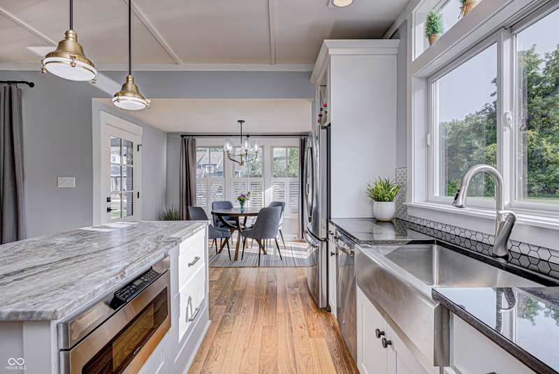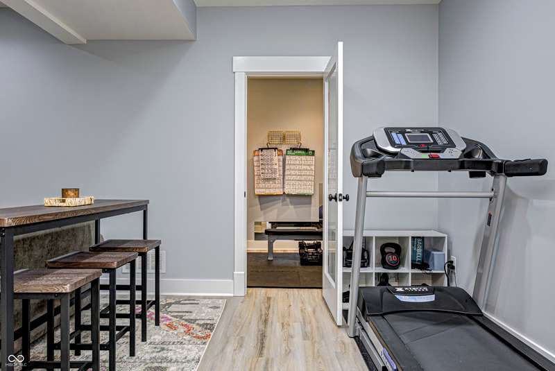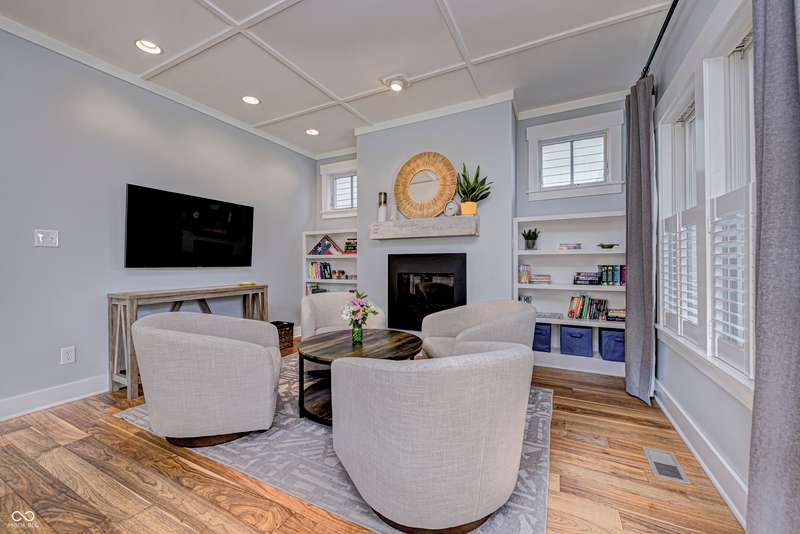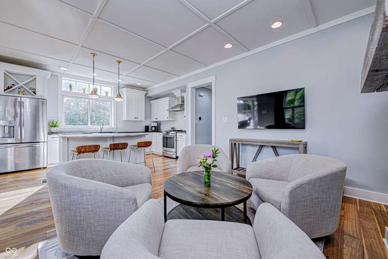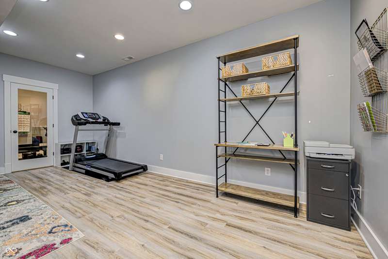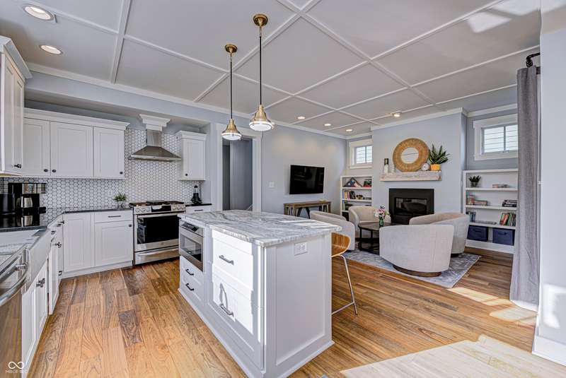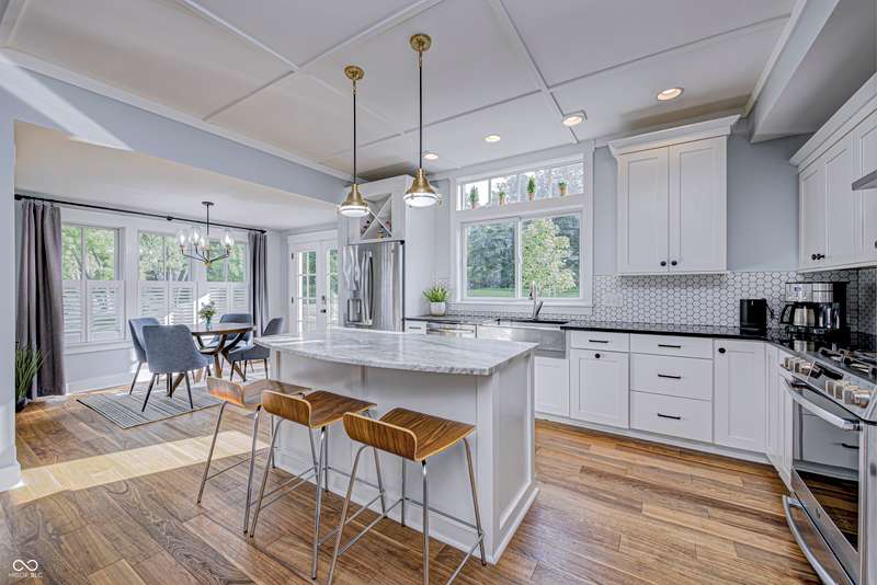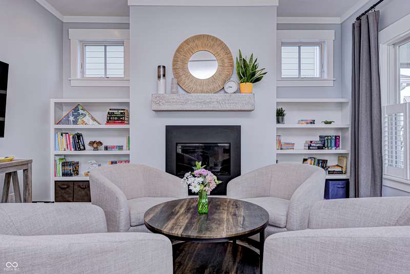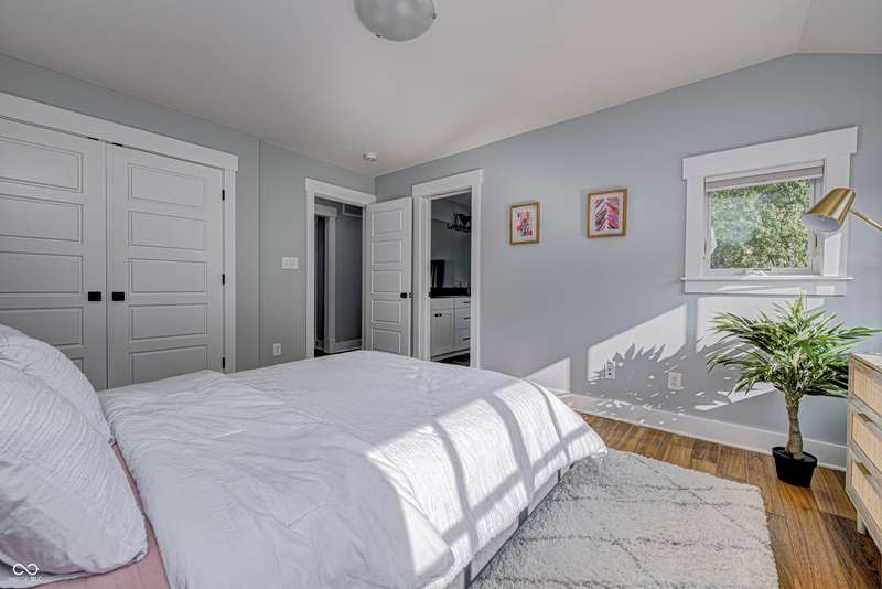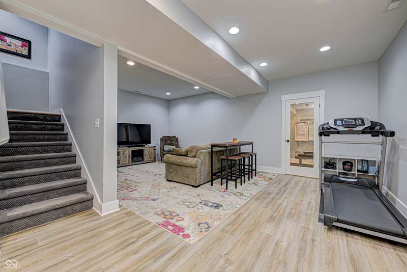 Discover this charming cottage-style home built in 2018 in the heart of Zionsville, offering 3 spacious bedrooms and 2.5 baths with a FIRST-FLOOR PRIMARY SUITE. Enjoy a short walk to downtown Zionsville, the farmer's market, Lions Park, and Creekside Nature Park. Nestled at an ideal end location, the property boasts open views and a peaceful setting. Hardwood floors flow throughout, enhancing the home's architectural details, while solid wood interior doors add to the already quality 3-year hold home. The two oversized bedrooms feature unbelievably large closets and flank a generous full bathroom upstairs. The open kitchen is a chef's delight, with a center island and gas range. French doors lead to a paverstone patio, perfect for outdoor dining, while the welcoming front porch invites you to enjoy morning coffee or evening drinks. The finished basement extends your living space, offering a large storage room plumbed for a sink and a versatile room with glass doors, ideal as an office or workout space. The freshly painted exterior adds to the home's curb appeal. Yard maintenance is included in the HOA for easy living. This home combines charm, functionality, and an unbeatable location for a truly exceptional lifestyle.