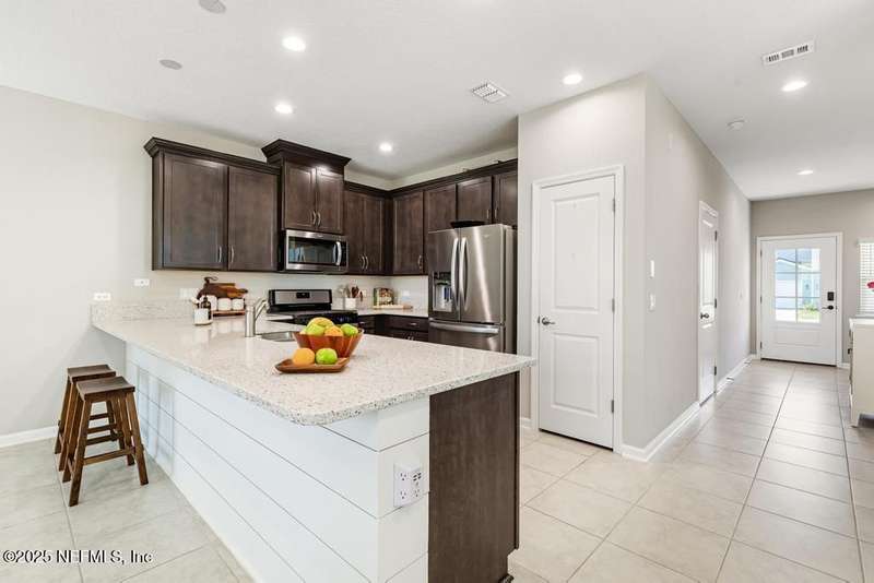 Welcome to this stunning 3-bedroom, 2.5-bathroom side-unit townhome in the highly sought after Silverleaf community of St. Johns County! Built in 2022, this home offers a perfect blend of modern comfort and stylish living. Inside, you'll find tile floors throughout the main living areas, and 9-ft ceilings on both the first and second floors, creating an open, spacious feel.The gourmet kitchen features 42-inch cabinets, a beautiful granite countertop, and an updated refrigerator. The gas oven/stove is perfect for home chefs, and the kitchen flows seamlessly into the living area -ideal for entertaining. The upstairs loft provides additional living space, perfect for a home office, play area, or cozy retreat.The spacious master suite includes a private en-suite bathroom, offering a serene space to unwind. Two additional bedrooms share a spacious full bathroom. Washer and dryer are also included for added convenience.