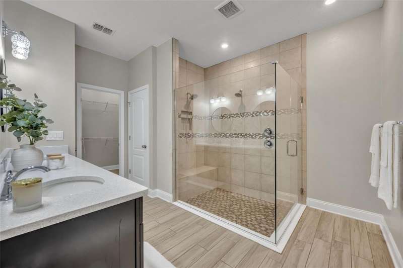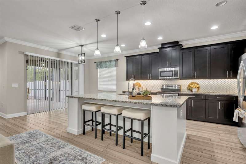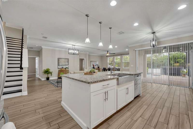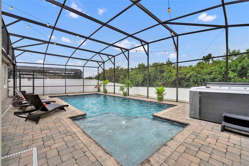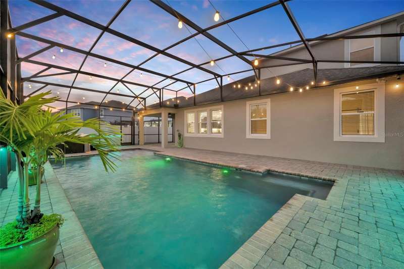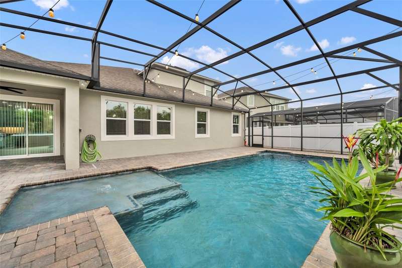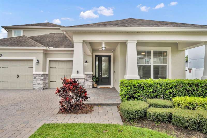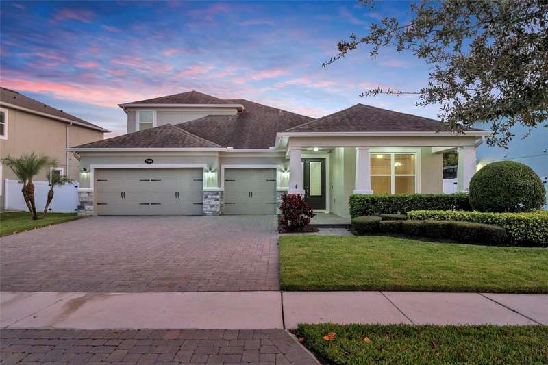 Under contract-accepting backup offers. One or more photo(s) has been virtually staged. Welcome to this beautifully appointed executive home in the sought-after Lake Nona area, just minutes from the Lake Nona Medical City complex. With 4 bedrooms, 4 baths, and a 3-car garage, this home combines luxury, comfort, and functionality in everything from the tankless water heater and water filtration system to the spacious and private fenced backyard perfect for outdoor entertaining. The heart of the home is the expansive kitchen featuring granite countertops, upgraded cabinetry, stainless steel appliances, and a large island with seating — perfect for both everyday living and entertaining. Seamless wood-look tile flooring flows throughout the first floor, complemented by crown molding for added style. A spacious laundry room with a utility sink and cabinets adds convenience, while the freshly painted exterior and charming front porch with a paver driveway enhance curb appeal. The primary suite, located on the first floor, offers pool views and a spa-like bathroom with dual sinks, a large walk-in shower with dual shower heads, and a massive walk-in closet. The smart three-way split floor plan ensures privacy, with two guest bedrooms and a shared bath at the front of the home, plus a third guest bedroom with its own bath on the opposite side. Upstairs, discover a nearly 600 sq. ft. bonus room featuring the fourth bathroom and storage closet—ideal for a media room, playroom, guest retreat, or a second primary suite. Step outside to your private backyard oasis overlooking the serene nature preserve. The screened patio showcases a gorgeous heated pool with a large sun shelf, decorative lighting all around, plus a 7-seat jetted spa. The three-way sliders that lead to a covered lanai create the ultimate indoor-outdoor lifestyle. Set in the gated community of Somerset, residents enjoy a peaceful setting with added security from the gated entrance, a community pool, walking sidewalks, and a playground. All of this is just moments from Lake Nona’s shopping, dining, and world-class amenities. This home is move-in ready and waiting for you to enjoy the Orlando lifestyle.