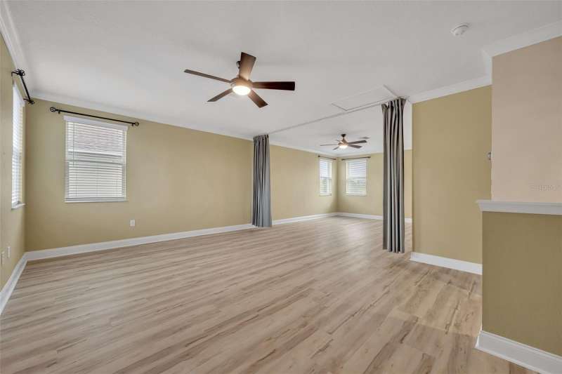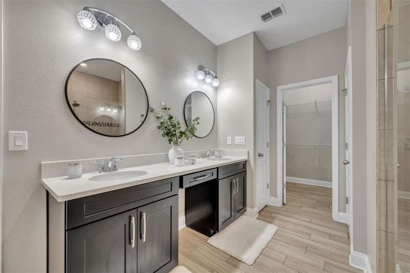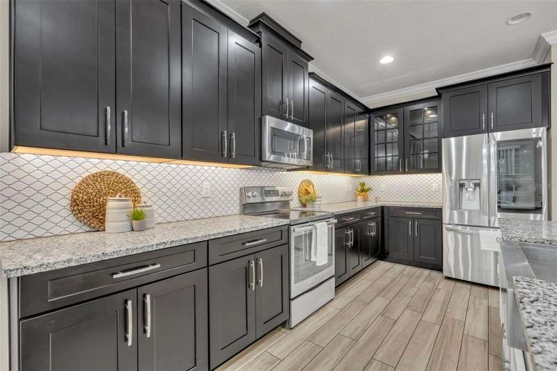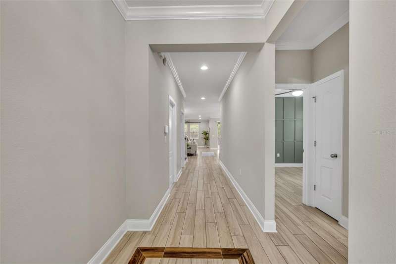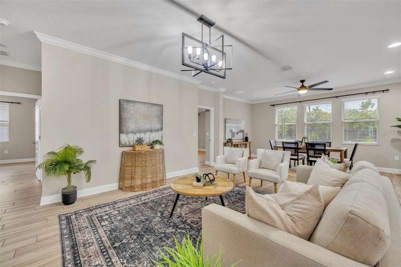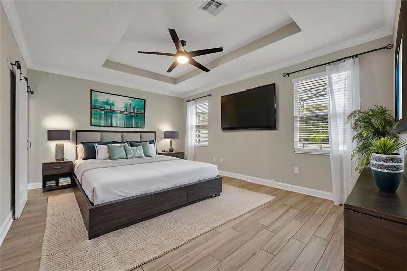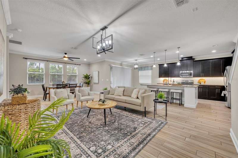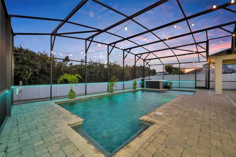 Under contract-accepting backup offers. One or more photo(s) has been virtually staged. Welcome to this beautifully appointed executive home in the sought-after Lake Nona area, just minutes from the Lake Nona Medical City complex. With 4 bedrooms, 4 baths, and a 3-car garage, this home combines luxury, comfort, and functionality in everything from the tankless water heater and water filtration system to the spacious and private fenced backyard perfect for outdoor entertaining. The heart of the home is the expansive kitchen featuring granite countertops, upgraded cabinetry, stainless steel appliances, and a large island with seating — perfect for both everyday living and entertaining. Seamless wood-look tile flooring flows throughout the first floor, complemented by crown molding for added style. A spacious laundry room with a utility sink and cabinets adds convenience, while the freshly painted exterior and charming front porch with a paver driveway enhance curb appeal. The primary suite, located on the first floor, offers pool views and a spa-like bathroom with dual sinks, a large walk-in shower with dual shower heads, and a massive walk-in closet. The smart three-way split floor plan ensures privacy, with two guest bedrooms and a shared bath at the front of the home, plus a third guest bedroom with its own bath on the opposite side. Upstairs, discover a nearly 600 sq. ft. bonus room featuring the fourth bathroom and storage closet—ideal for a media room, playroom, guest retreat, or a second primary suite. Step outside to your private backyard oasis overlooking the serene nature preserve. The screened patio showcases a gorgeous heated pool with a large sun shelf, decorative lighting all around, plus a 7-seat jetted spa. The three-way sliders that lead to a covered lanai create the ultimate indoor-outdoor lifestyle. Set in the gated community of Somerset, residents enjoy a peaceful setting with added security from the gated entrance, a community pool, walking sidewalks, and a playground. All of this is just moments from Lake Nona’s shopping, dining, and world-class amenities. This home is move-in ready and waiting for you to enjoy the Orlando lifestyle.