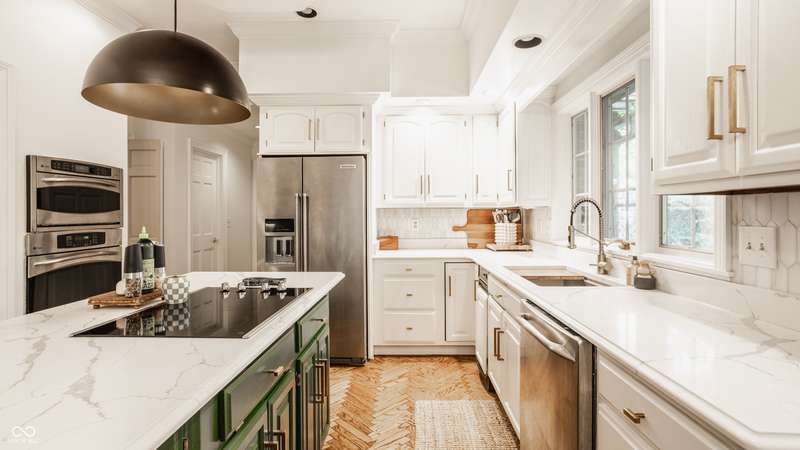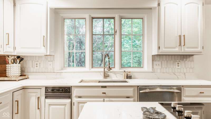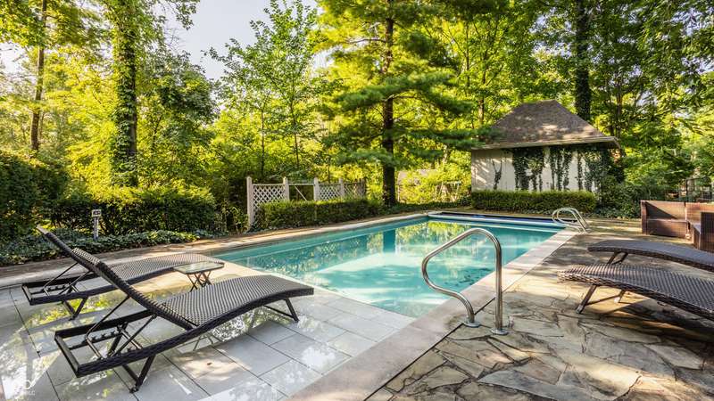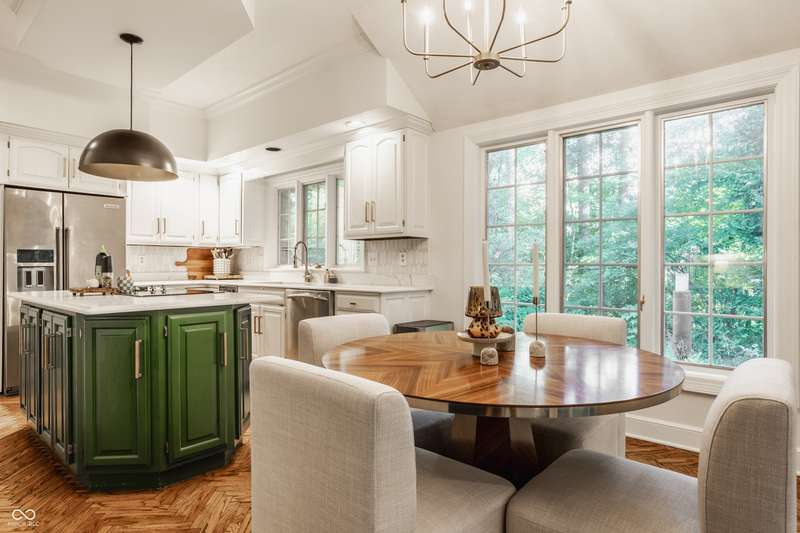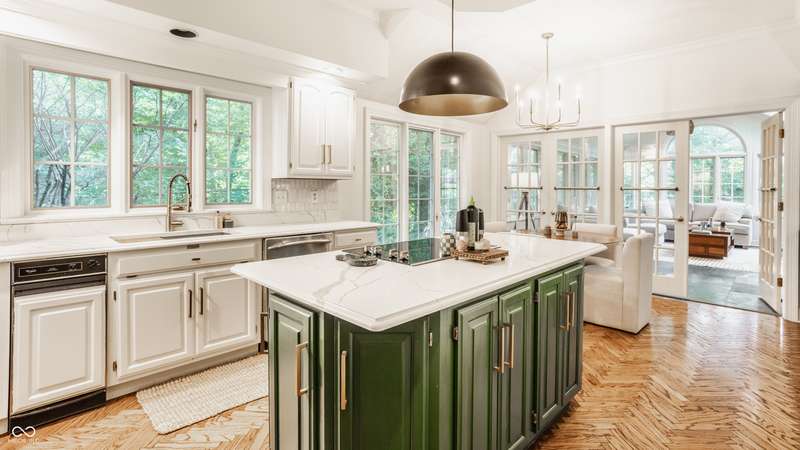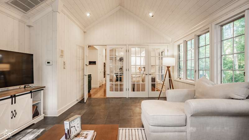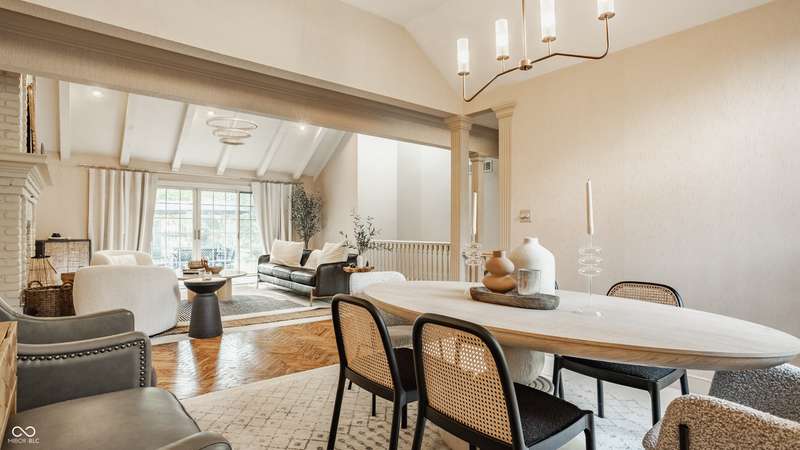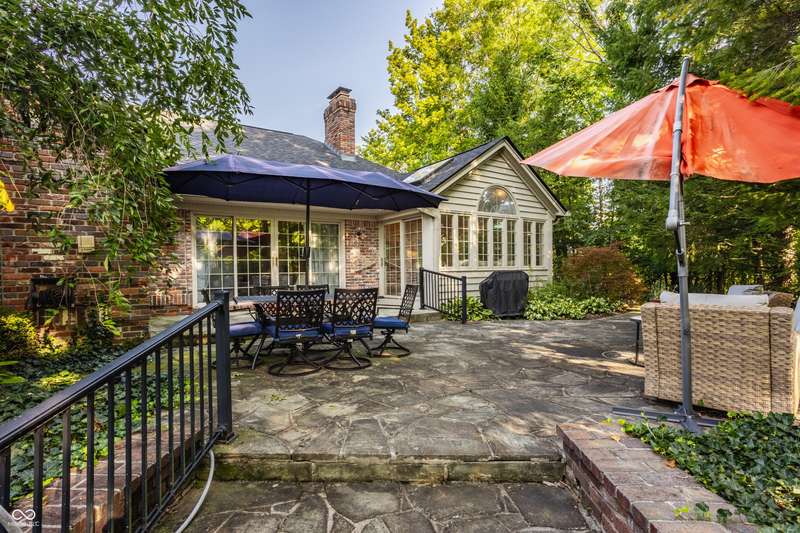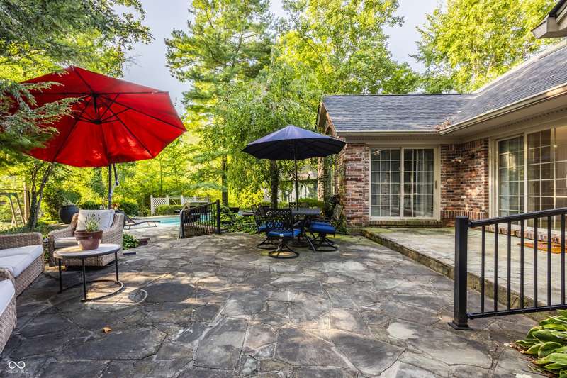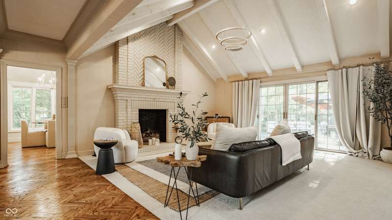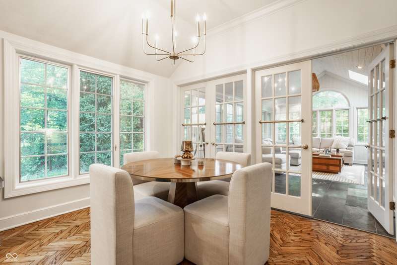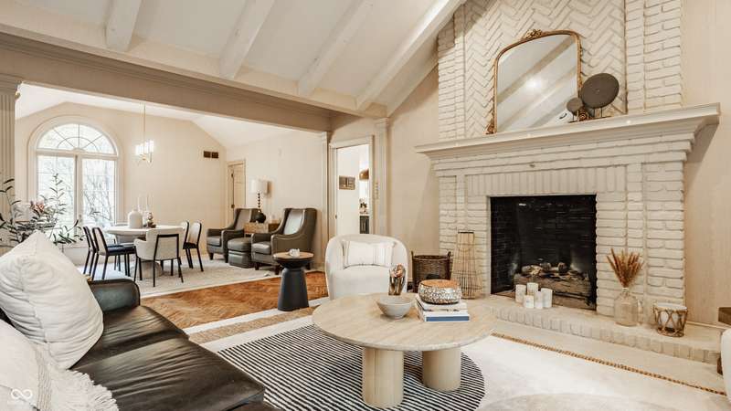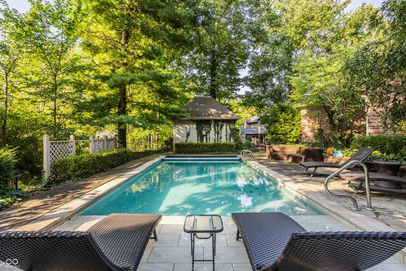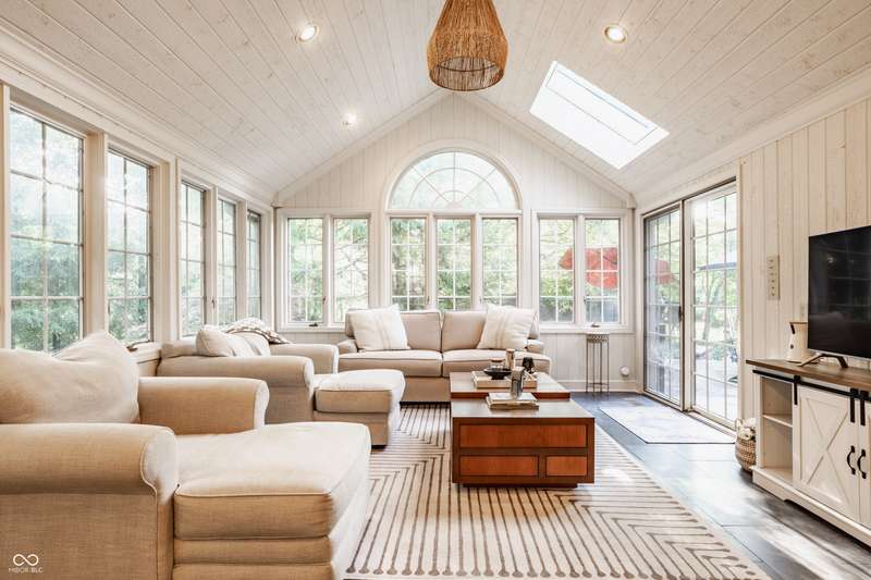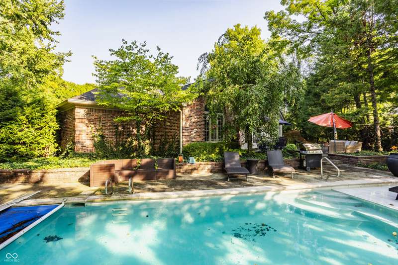 Quiet elegance meets everyday comfort in this remarkable residence. From the circular driveway framed by manicured gardens to the inviting pool and refined interiors, this home is designed to impress. Inside, herringbone hardwoods greet you in the foyer and carry through to the kitchen. The breathtaking living room showcases soaring cathedral ceilings, a stately fireplace, and a wall of windows with sliding doors that frame views of the lush gardens, patios, and sparkling pool. The chef's kitchen is a true centerpiece with a large center island, brand-new quartzite counters, and a stylish tile backsplash. It opens seamlessly to an informal dining area and the sun-drenched four-season room-separately heated and cooled-where vaulted ceilings and walls of windows create a serene retreat. The primary suite offers the perfect end-of-day escape, featuring expansive walk-in closets and a spa-like bath with dual vanities, a soaking tub, and a separate shower. Two additional bedrooms and a full bath complete the main level. The lower level is the home's coup de grace, boasting a spacious family room with a cozy fireplace and built-in bookshelves, plus a flexible exercise room or office and a convenient half bath. Outdoors, beautifully landscaped grounds set the stage for multiple patio areas, a pool with an electric cover, and a charming pool house-ideal for entertaining or private relaxation. All of this just minutes from Geist, shopping, dining, and with an easy commute throughout the city, this property truly checks every box.