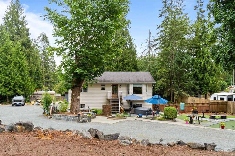 Welcome to 2830 Steelhead Road, Tranquil Living Just Minutes from the City. This charming 3-bedroom plus den, 2-bathroom home offers nearly 2,000 sqft of comfortable living space, nestled on a generous 18,000 sqft corner lot. Located just a 5-minute stroll from the river and only 15 minutes from downtown Nanaimo, this property provides the perfect balance of peaceful rural living with convenient access to city amenities. The home features a functional layout ideal for families or anyone seeking extra space to work or relax. The den makes for a perfect home office, playroom, or guest space. Outside, you'll find plenty of room to roam with the oversized lot—ideal for gardening, entertaining, or simply enjoying the outdoors. There's even a dedicated 30-amp RV service hookup, perfect for travelers or hosting guests. With easy access to nearby walking and hiking trails, nature lovers will feel right at home. All measurements are approximate and should be verified if important.