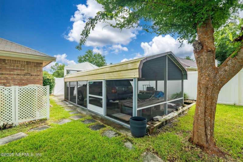 Beautiful 4BR/2BA home featuring a vaulted-ceiling family room with fireplace, sunroom, and spacious kitchen with granite counters and stainless appliances. Primary suite offers dual vanities, soaking tub, and walk-in closets. Enjoy a screened patio, fenced backyard with mature trees, and utility shed. Includes formal living/dining rooms, laundry with LG washer/dryer, and garage with workbench. Move-in ready with thoughtful updates throughout! See document tab for additional details.