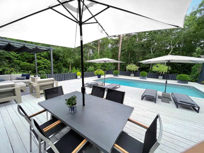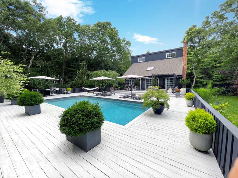 Rental Reg. # 24-317 This very stylish home located in the Northwest Woods of East Hampton features 3 bedrooms, 2 bathrooms, and a wonderful open dining/living room area with double height ceiling. The back of the house is lined with sliding glass doors which open on to the resort-like pool area surrounded by expansive decking and lush landscaping. A fabulous place to entertain or just relax. Listing ID: 754971