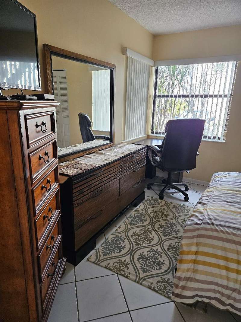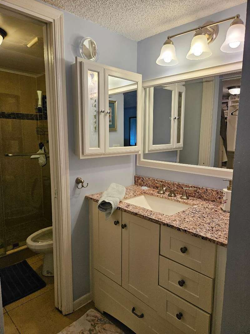 This Condo is in prestine condition ready to move in. Beautiful decorated, completely furnished for your convenience., original paintings set in all the rooms. Floors are tile set up diagonally shows the extension of the area. Maytag Appliances all under AHS warranty. New Air Conditioner in 2025. Electric Panel replaced. Wooden blinds in Living Room and kitchen . Wall to wall mirror in Dinning Room, Vertical Blinds in Bedrooms. New light fixtures w/ceiling fans in all rooms. Both bathrooms were updated w/newer vanities and w/stone counters & new light fixtures. Balcony furnished w/accordion hurricane shutters & storage closet.
