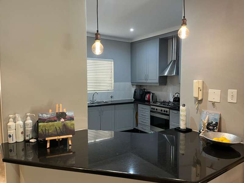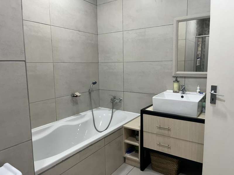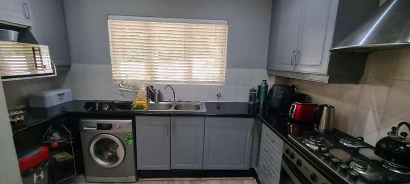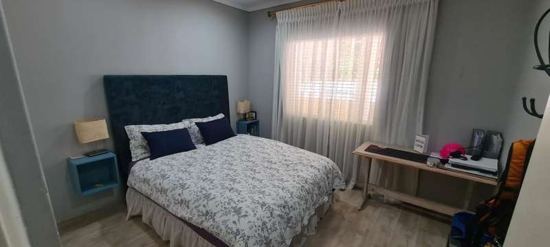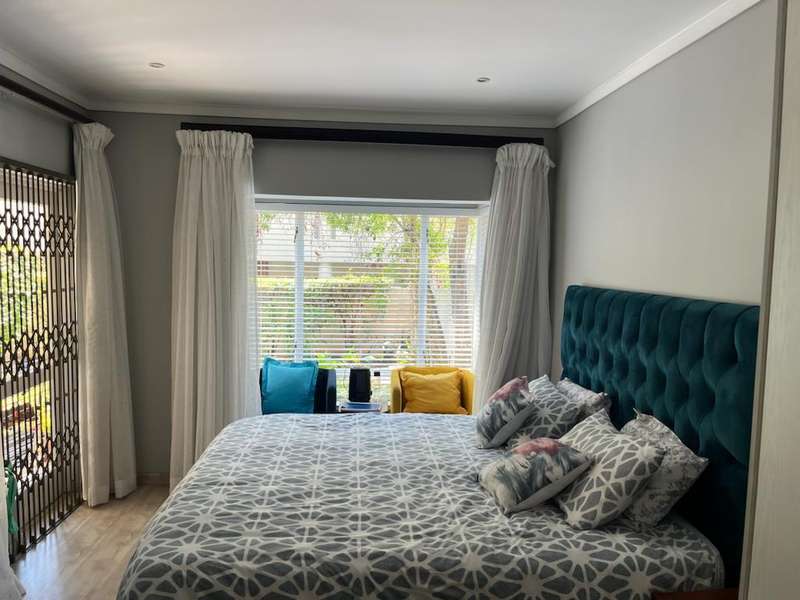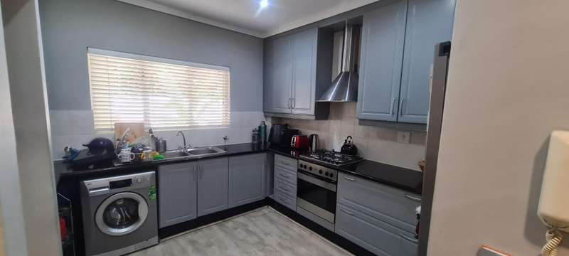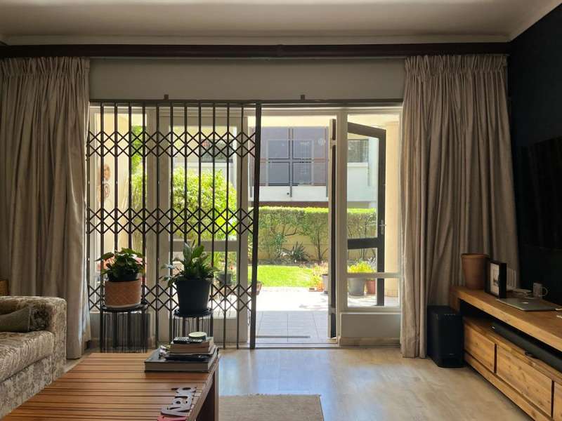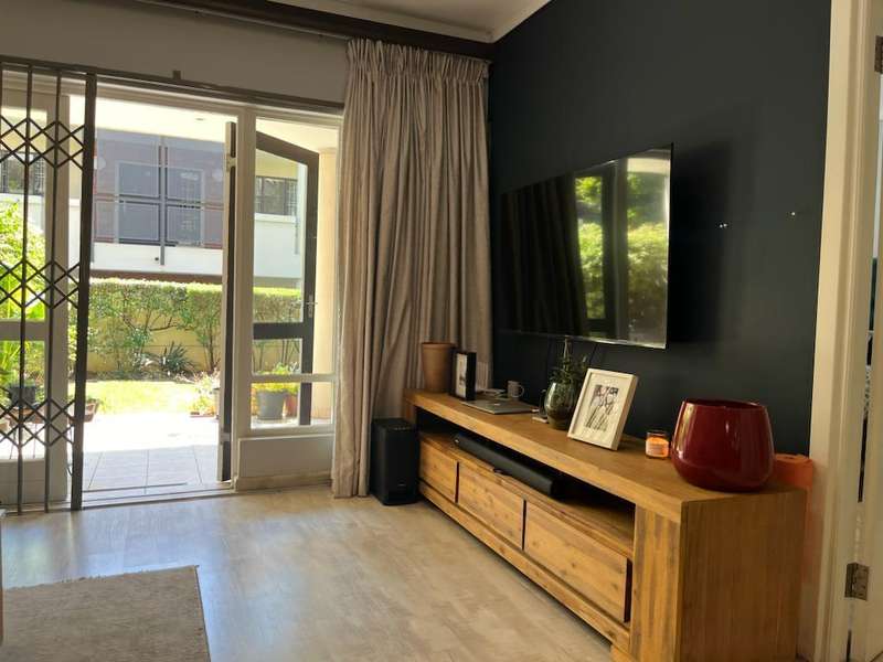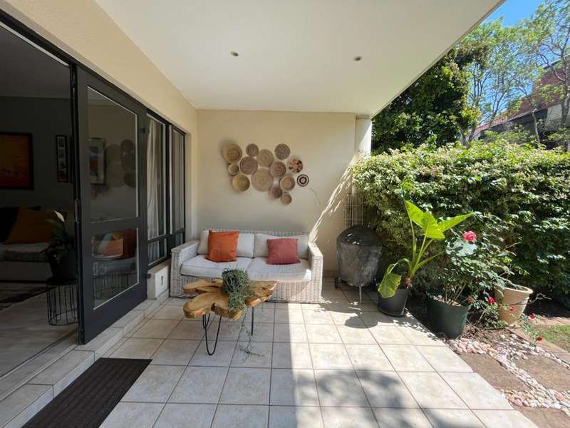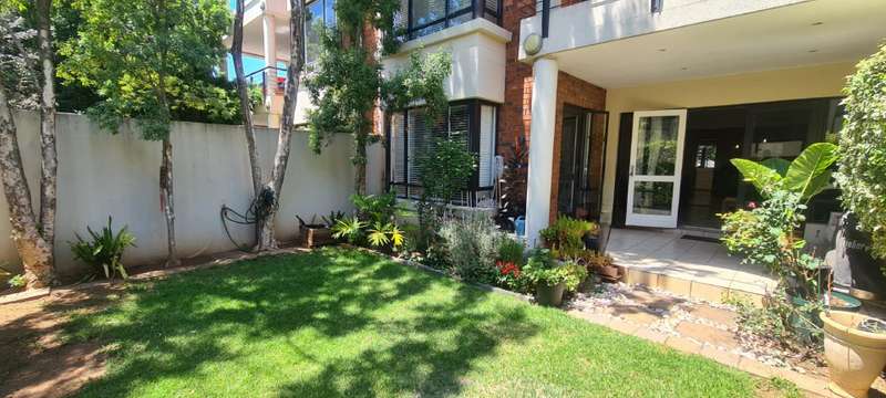 Stylish 2-bedroom apartment with garden Modern ground floor apartment offers comfort, convenience and space in a secure well maintained complex. Welcoming entrance hall 2 bedrooms with laminated flooring. Main bedroom opening out to the patio 2 bathrooms (main en suite with full modern bathroom, second with shower) Functional kitchen with pantry, gas hob and space for 2 under counter appliances. Dining area and spacious lounge leading onto a covered patio overlooking an established garden. Laminated floor throughout. The complex offers a communal swimming pool, excellent security and a well run environment No pets allowed 2 Basement parking Situated in sought after Morningside close to major routes, shopping centres and schools