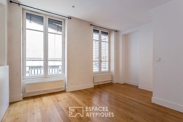 Located in the heart of the Presqu'ile de Lyon, in the Ainay district of Lyon 2nd, this 66sqm apartment is located on the 2nd floor with an elevator in a quiet area. The entrance and its storage space lead directly into the living area, which includes an open kitchen and a living room.