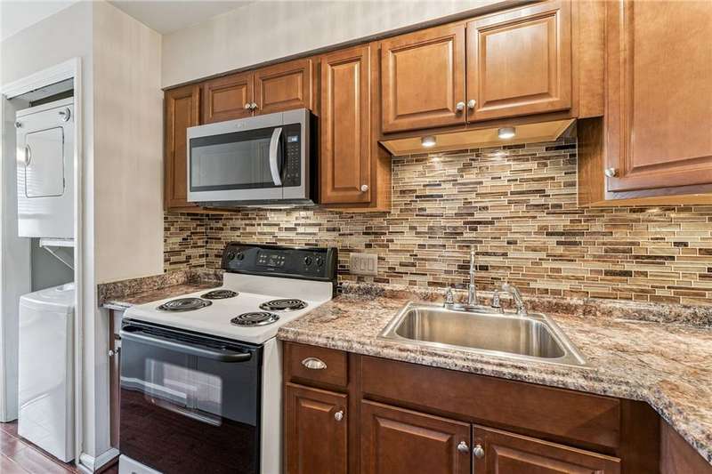 Beautiful one bedroom unit with sharp updated kitchen and bathroom. Main electric wiring replaced 2024. Circuit breaker updated. New microwave 2025. Subfloor and floor replaced in bathroom. Private in unit laundry, vaulted ceiling in living room. Very spacious bedroom and great storage. The amenities of the community are a large swimming pool, sidewalks, storage lockers (for fee), and party room (for fee). HOA fee includes Gas (Heat), roof, water and sewage, exterior maintenance and pool.