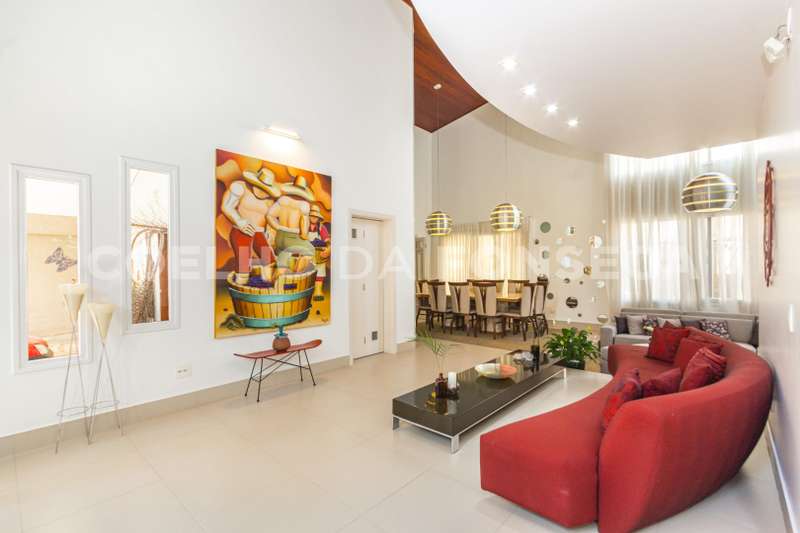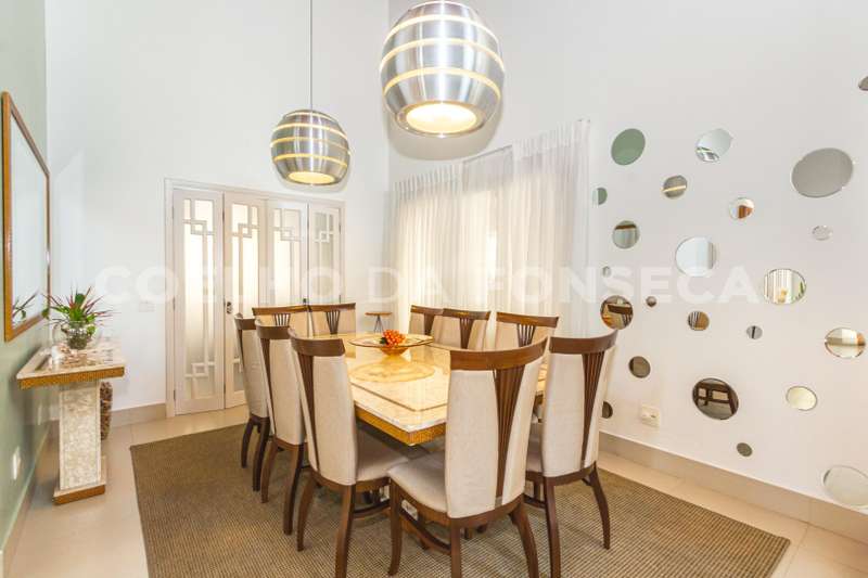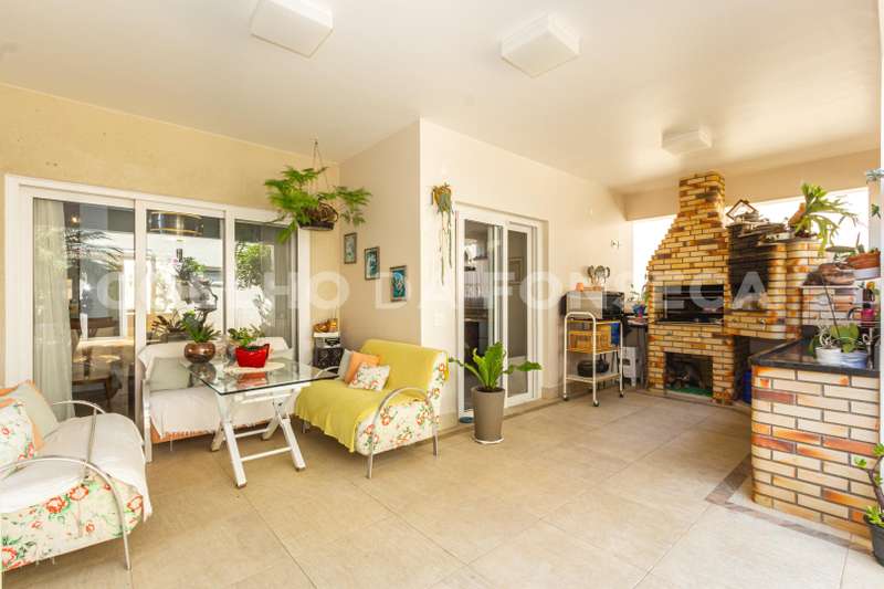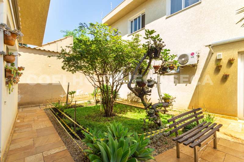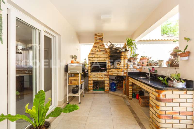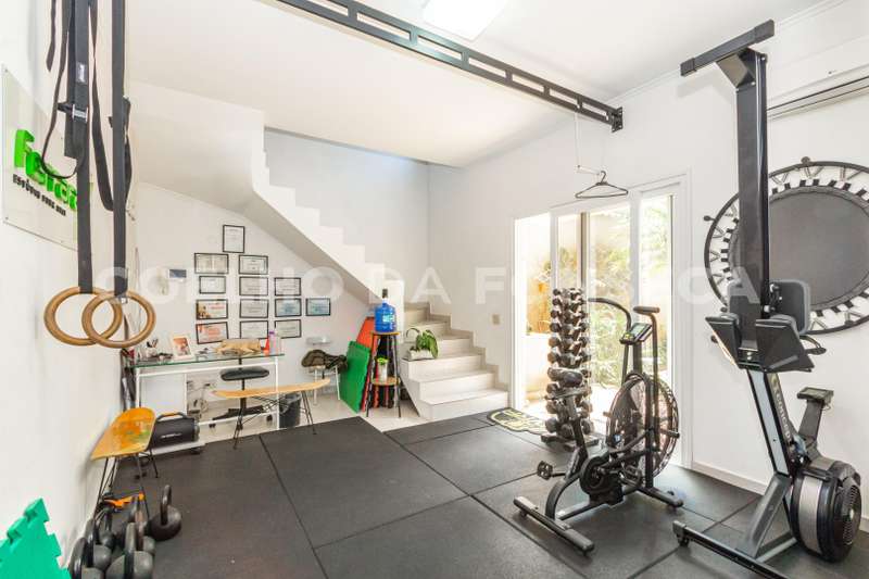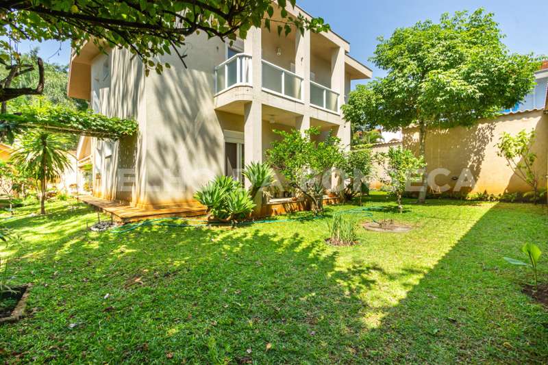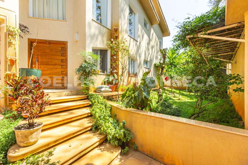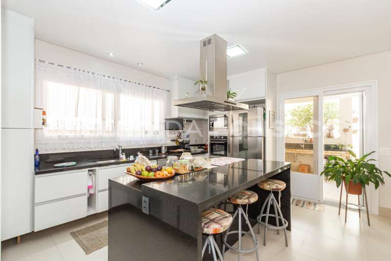 Sobrado em rua fechada com 4 suítes (master com closet e hidromassagem), sendo 2 suítes no térreo, living amplo com pé direito duplo com muita iluminação, espaço gourmet, academia, oficina, área externa com jardim e árvores frutíferas. Cozinha ampla e bem equipada, armários planejados e bancadas em granito.