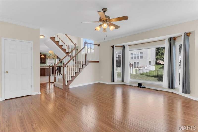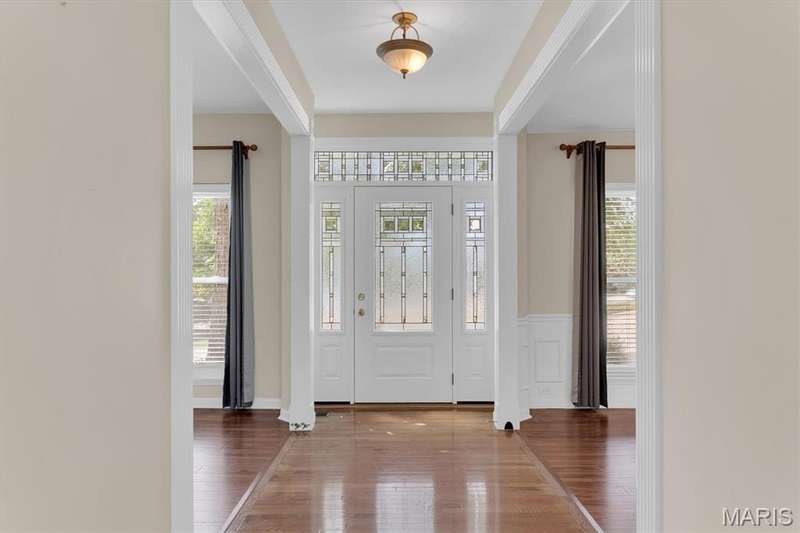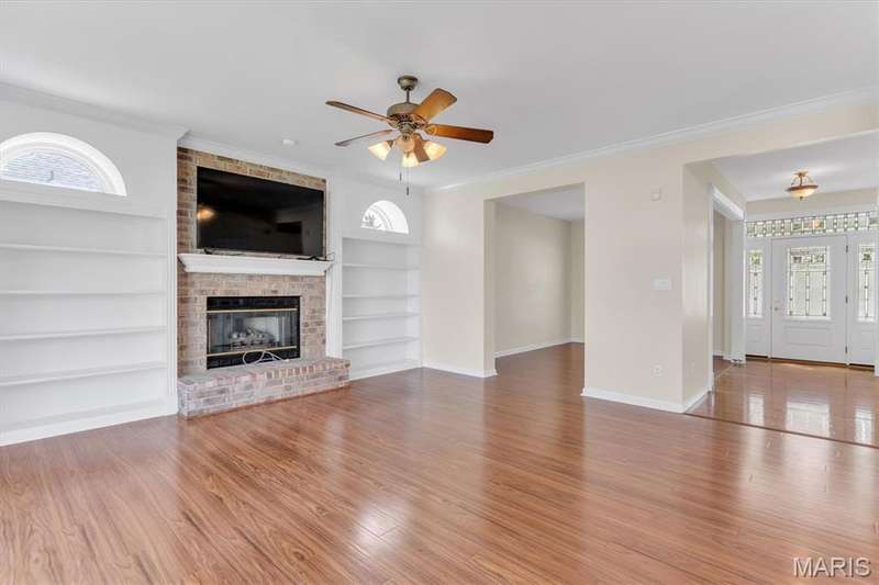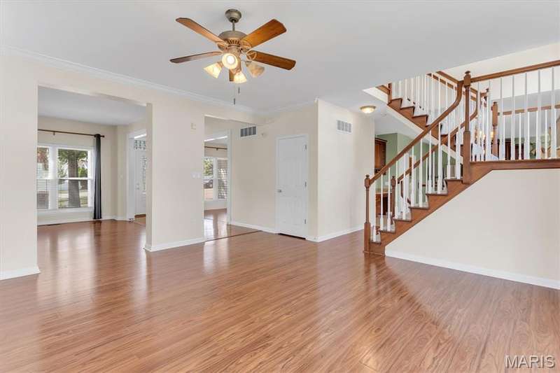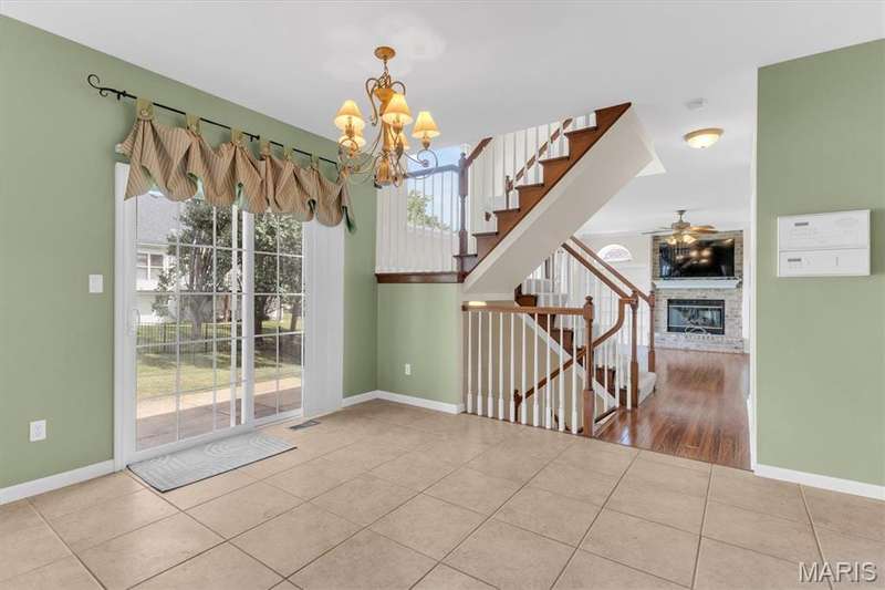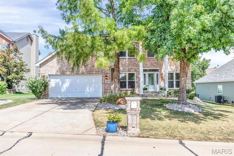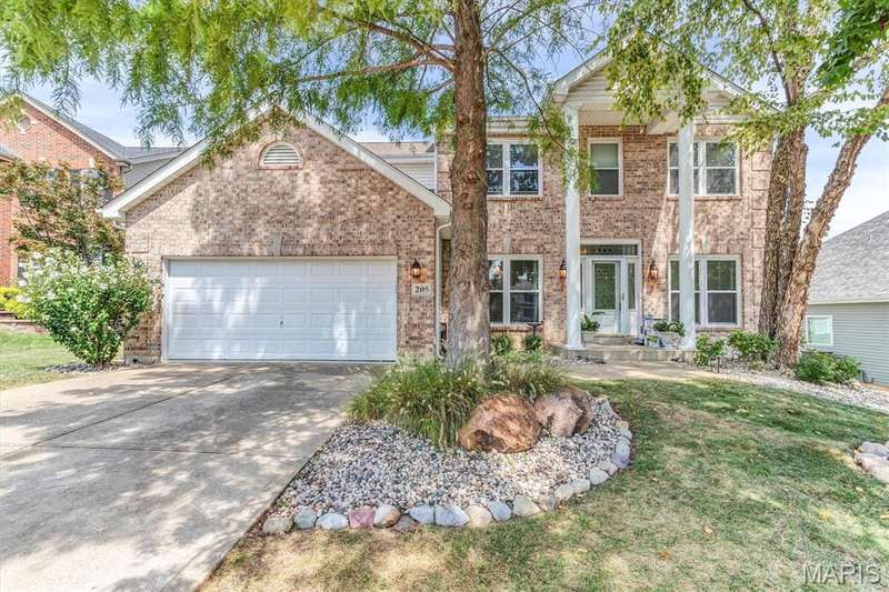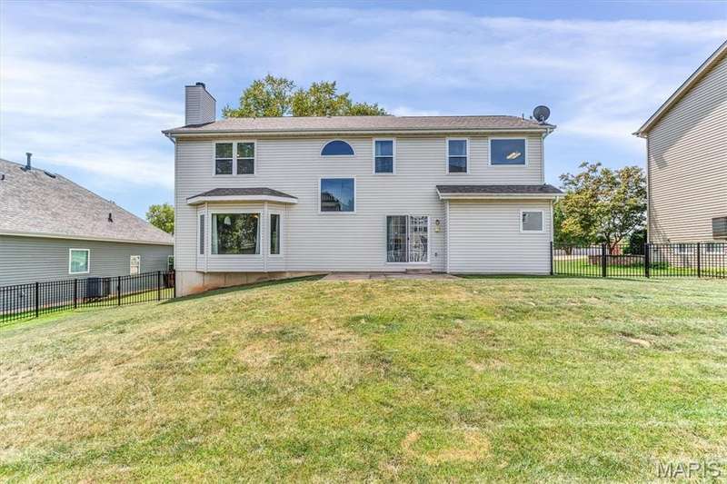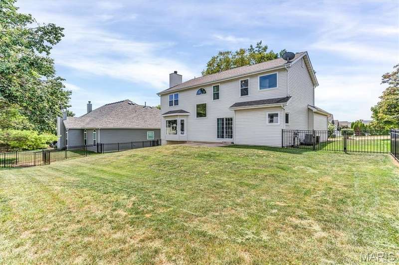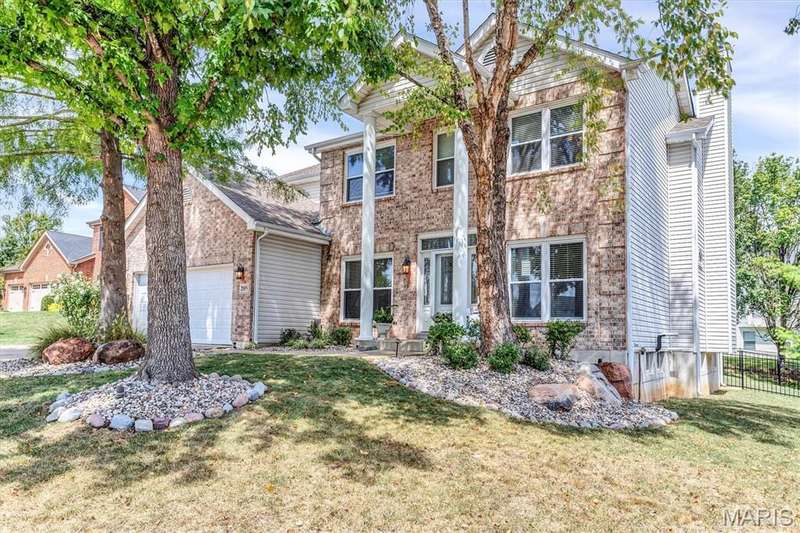 Incredible Two Story with over 2700 sq feet of living space. Four Bedrooms, 2.5 baths, 2 car garage. Former Display so the home has all of the bells and whistles including: open spindled staircase, half round window, transom window, built in shelves flanking both sides of the fireplace, cultured marble shower walls, bedrooms with walk in closets, 9ft ceiling on the main floor, hard wood in the entry, main floor laundry, BRAND NEW FENCE!!!! Kitchen has a butterfly island, 42 inch maple cabinets, granite counters, stainless appliances, undermount composite sink, Butler shelf, planning desk, open breakfast room and formal dining room. Dining Room has a beautiful tray ceiling with lower board and batten walls. The laminate floors look like hardwood floors. Laundry has extra built in matching cabinets. Rear staircase, landing and loft, large picture window, Massive Primary bedroom suite and luxury primary bath. Dual sinks, soaking tub, separate shower. Three more generous size bedrooms with large closets. Lower Level is ready for your finish. Backyard is a level lot, completely fenced. Nice rear patio. Exterior has architectural shingle roof, vinyl siding, full brick front with grand pillars. Well maintained home and yard. Professionally landscaped. Home is so close to Cottleville and all of the amenities. Close to highway access and shopping but yet tucked away and the haven of a culdesac. Come check it out! You will love this home!
