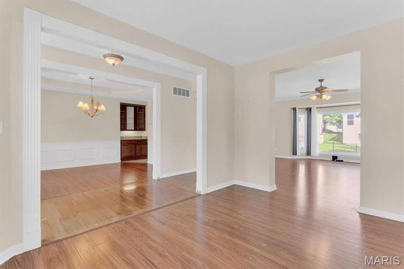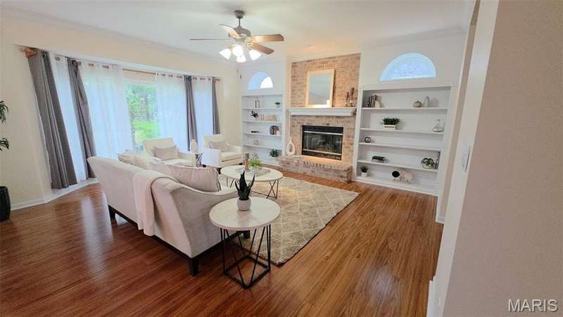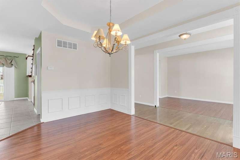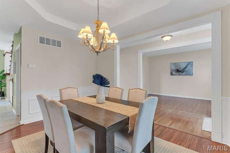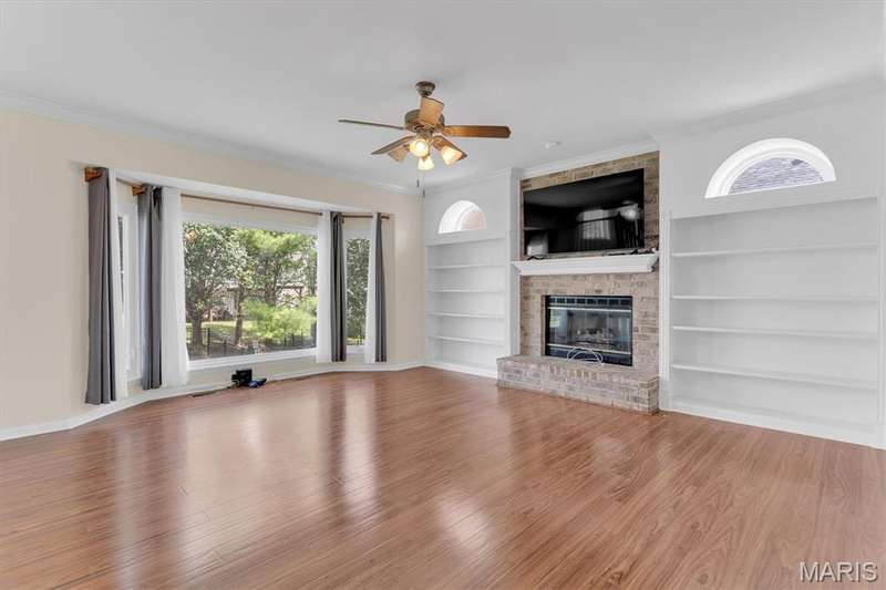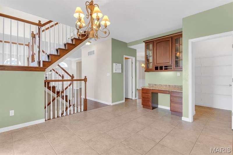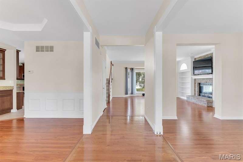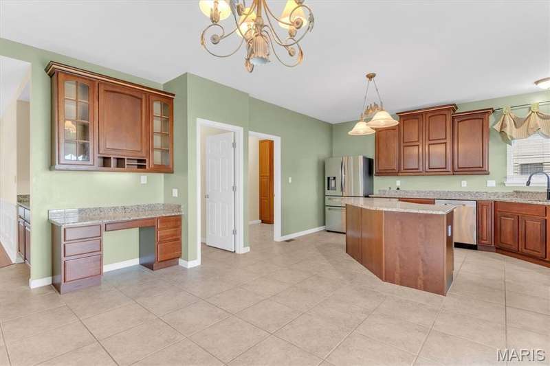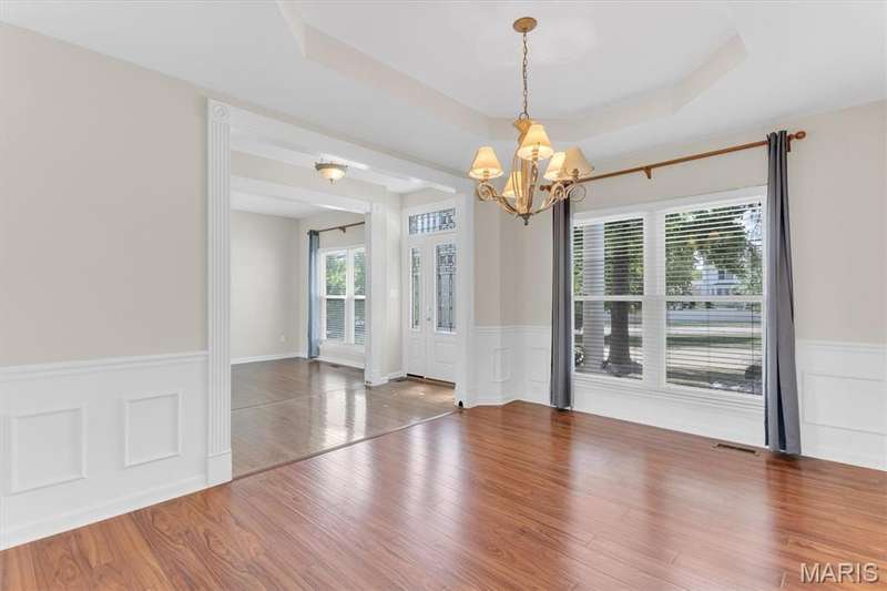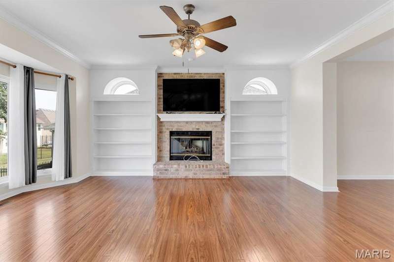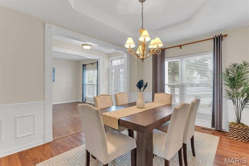 Incredible Two Story with over 2700 sq feet of living space. Four Bedrooms, 2.5 baths, 2 car garage. Former Display so the home has all of the bells and whistles including: open spindled staircase, half round window, transom window, built in shelves flanking both sides of the fireplace, cultured marble shower walls, bedrooms with walk in closets, 9ft ceiling on the main floor, hard wood in the entry, main floor laundry, BRAND NEW FENCE!!!! Kitchen has a butterfly island, 42 inch maple cabinets, granite counters, stainless appliances, undermount composite sink, Butler shelf, planning desk, open breakfast room and formal dining room. Dining Room has a beautiful tray ceiling with lower board and batten walls. The laminate floors look like hardwood floors. Laundry has extra built in matching cabinets. Rear staircase, landing and loft, large picture window, Massive Primary bedroom suite and luxury primary bath. Dual sinks, soaking tub, separate shower. Three more generous size bedrooms with large closets. Lower Level is ready for your finish. Backyard is a level lot, completely fenced. Nice rear patio. Exterior has architectural shingle roof, vinyl siding, full brick front with grand pillars. Well maintained home and yard. Professionally landscaped. Home is so close to Cottleville and all of the amenities. Close to highway access and shopping but yet tucked away and the haven of a culdesac. Come check it out! You will love this home!