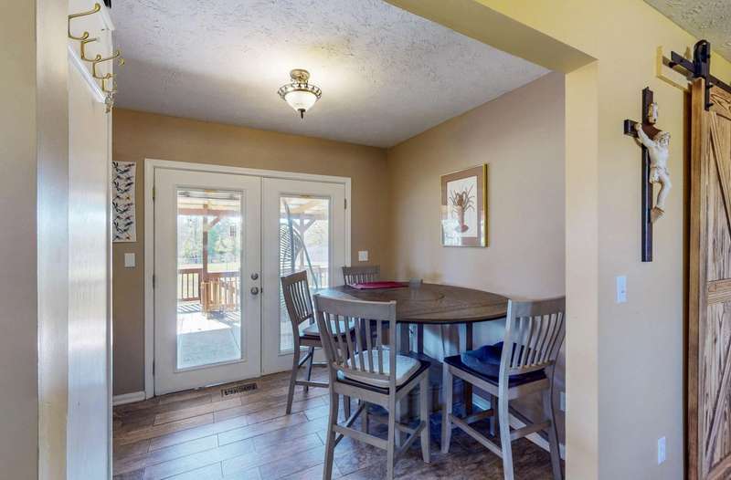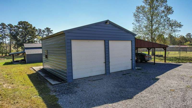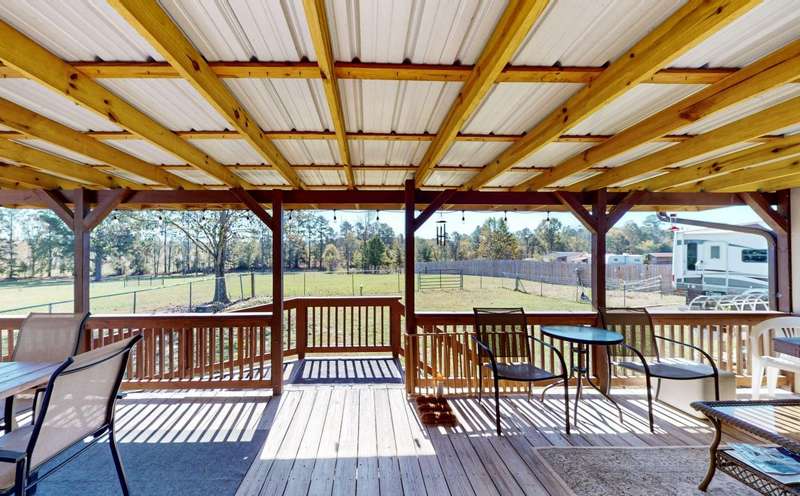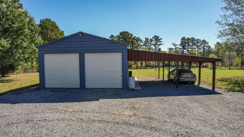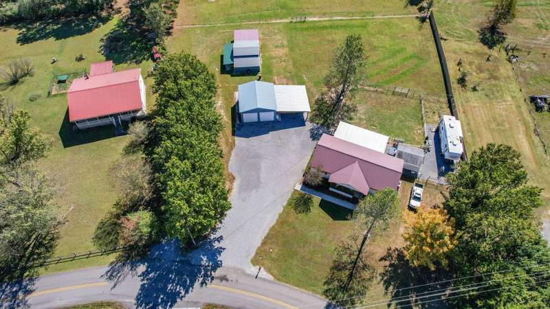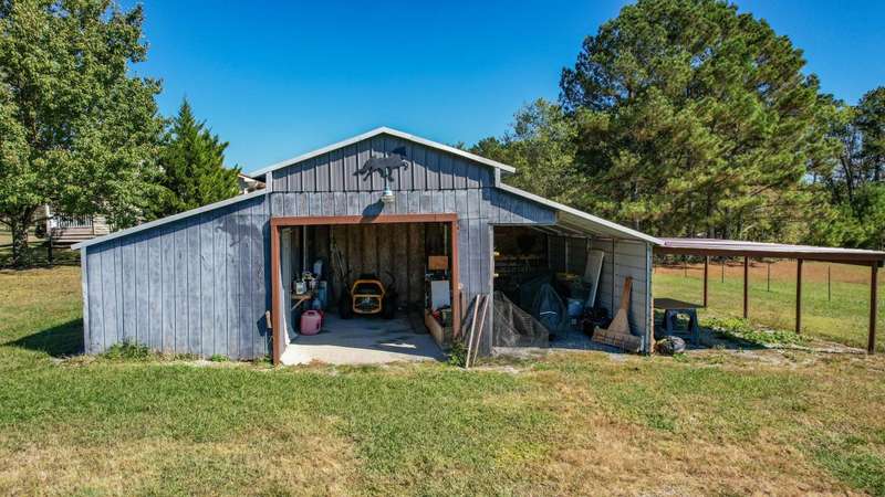 WELCOME to your Mini Farm! 3.38 Acres with a fenced pasture for grazing horses, cattle, goats, or whatever else you can think of. The barn is equipped with two lean-tos- covered extensions on one side and the back-which provide additional sheltered space ideal for storing equipment, hay or offering shade and protection for animals. Inside the barn there is a dedicated tack room. The home has 3 bedrooms and two bathrooms. One of the bedrooms is currently being used as an office and has a murphy bed. The guest bath has a whirlpool tub and shower. The owner's bath has a recently installed walk-in shower. The kitchen showcases a mix of contemporary and rustic elements with stainless steel appliances and barn style wooden cabinet doors. Front covered porch for watching the sunsets and horses in the pasture across the street and a back covered deck for morning coffee while watching the sunrises and deer grazing in the pasture. There is a separate two car garage with 10-foot roll up doors and double car port. Fully fenced yard for the dogs and the laundry room door has a doggie door for easy access in and out for them. There is a 12 x 16 finished out building with water and electricity. AC and heat. Use your imagination...She-Shed? Man-Cave? or whatever! The RV has water and electricity hook-ups and sits on a gravel RV pad. There is a dedicated garden area fenced off so the dogs and deer don't have access. This location offers a rural environment ideal for those seeking a country setting. Come see, and you will fall in love with this homestead.
