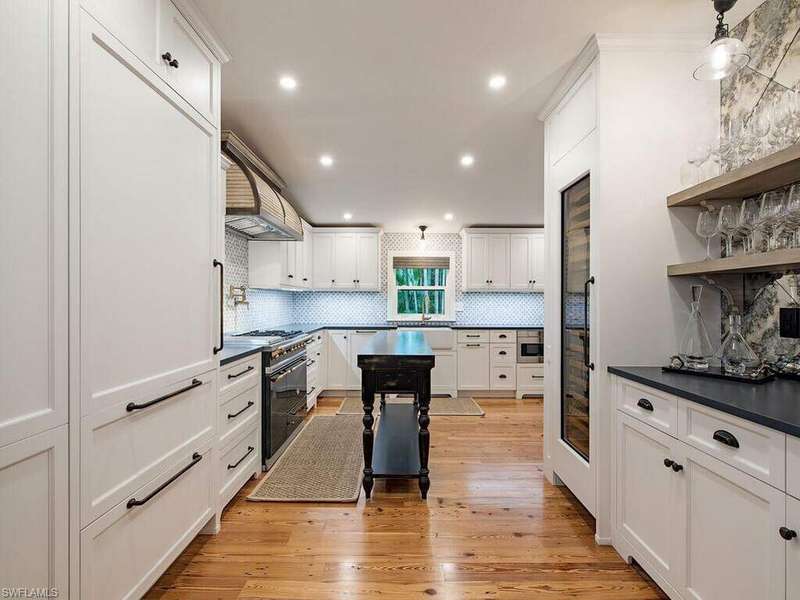 Filled with every ounce of warmth, character, and history, the 1929 Captain Parker House captures the dream of Olde Naples and is located just steps to Cambier Park, 5th Avenue South, 3rd Street South, and Naples' sugar sand coastline. Having been fully restored over the years to create a perfect marriage between history and modern-day elegances, the romantically-set cottage features a gracious front porch, old-growth heart pine flooring, a fireplace enveloped in hand-picked oyster shells, ship-lap walls, whimsical tiling, stunning soaking tub, grotto style pool, and Hardie board siding. A number of other luxurious features are encompassed, such as a chef's kitchen outfitted with a Lacanche gas range, Sub-Zero refrigerator and wine cooler, as well as a whole-house generator, impact glass, and a metal roof. The remainder of the parcel is enveloped in lush tropical foliage and includes vegetation such as a 50' Royal Poinciana tree, birds of paradise, banana, coffee, and coconut trees, as well as gardenias.
