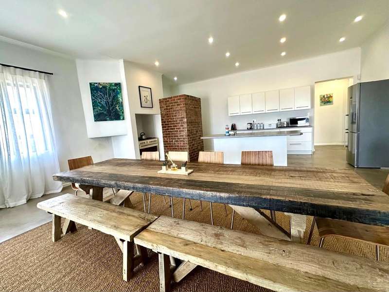Discover the ultimate coastal retreat in this expansive six-bedroom home. Nestled in a prime location with unobstructed vistas of Walker Bay, this property offers unparalleled access to the renowned cliff pathway, ideal for whale watching. The home features an open-plan living area that seamlessly connects to a spacious patio. Enjoy sun-soaked days by the pool or host unforgettable gatherings. The inviting lounge, complete with a fireplace and built-in braai, provides a cozy ambiance for chilly evenings. The residence boasts six generously sized en-suite bedrooms, each offering a private sanctuary. Two upper-level bedrooms feature private balconies with panoramic ocean views, while a lower-level bedroom opens onto the pool area, providing breathtaking vistas. The remaining three bedrooms are bright and airy, ensuring ample space and comfort. {No Transfer duty}