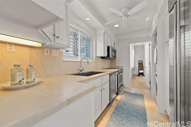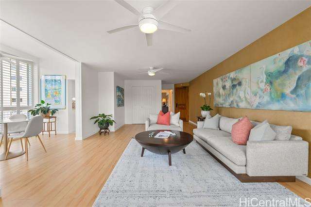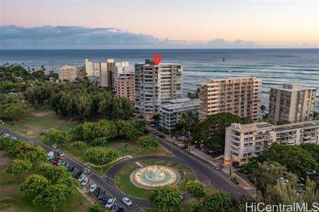 Don't miss this opportunity for a well priced, beautiful and large 1-bedroom unit a popular, Diamond Head Apartment's Ltd. A well-managed and maintained building FEATURES a newly renovated stylish entry, covered common area open air lanai with BBQ, guest seating to entertain, heated pool, beach access, and an outdoor shower. Living along the "Gold Coast" of Honolulu is PERFECT for a very convenient location! This jewel of a unit has GREAT greenery views of Kapiolani Park's ironwood trees, distant mountains, Diamond Head over the treetops, and city day & nightlight views! The trade winds blow nicely through the unit bringing in Hawaii's fresh air. An open living room and enclosed lanai are surrounded by large, picturesque windows for WONDERFUL natural lighting. The gold coast is within walking distance of the Waikiki Shell Amphitheatre, popular beaches, restaurants, hiking, surfing, shopping, open markets, and IDEAL for living a healthy lifestyle! Designed by Vladimir Ossipoff and built in 1957, this well laid out unit is move-in ready and features built-in book shelving, extra closet spaces, plantation shutters and a meticulously maintained condition. Furniture is negotiable.