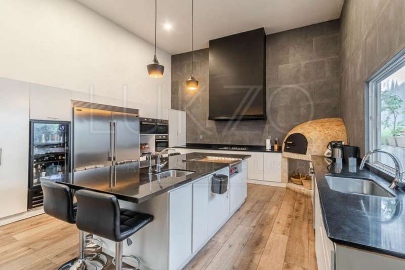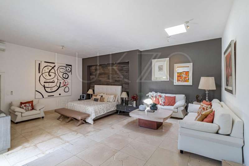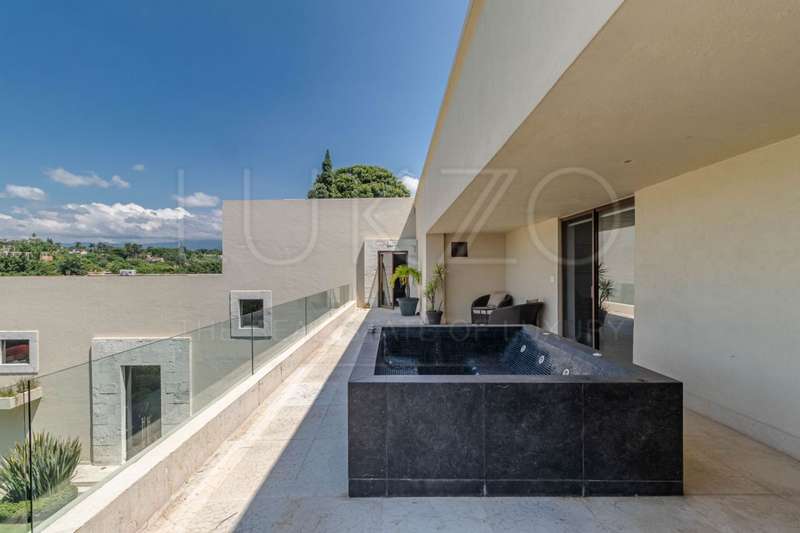 Splendid luxury home with great design that allow you to enjoy the whole house. It has great weather and beautiful views of the city. It has a terrace for each moment of the day. It has large outoor dining and living rooms with great shade. You can watch the sunset on a beautiful terrace with a small lake and cascade. You can enjoy stargazing from the jacuzzi and balcony on the top floor while having a glass of wine. It includes a cozy wine cellar with a pool table and a gymThe house has a movie theathre with 12 reclining seats with a HD movie projector. The kitchen has great equipment like: A teppanyaki, pizza oven, wine fridge, dishwahser and a lot of storage. This home also has an amazing library.