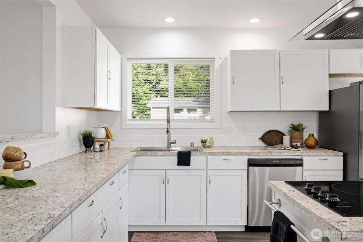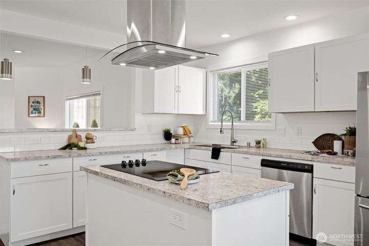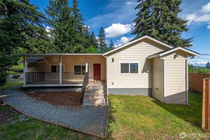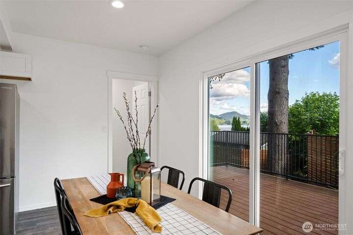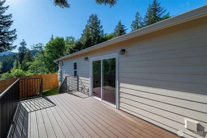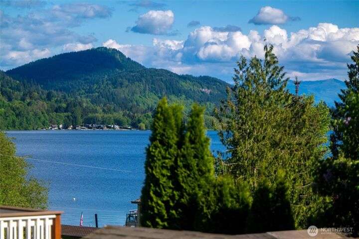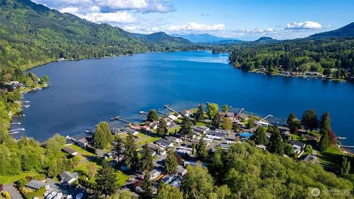 Imagine waking up to serene lake and mountain views in this single-level home in a welcoming 55+ community with its private beach and dock on Lake Samish – all for under $500K. This home has been thoughtfully updated with new LVT flooring, fresh sheetrock, LED can lights, vinyl windows, stainless steel appliances, and upgraded CAT 5/6 wiring and plumbing. Enjoy the large, tiled front porch as you sip your morning coffee while watching the sun rise, or entertain on the new Trex deck with lake and mountain views. There is a shop with electrical outlets, offering the perfect space for hobbies. The home is privately situated in the park, and the monthly dues of $1,100 include basic cable, utilities, and more. Lakefront living on a budget!