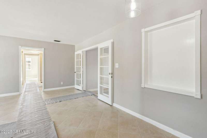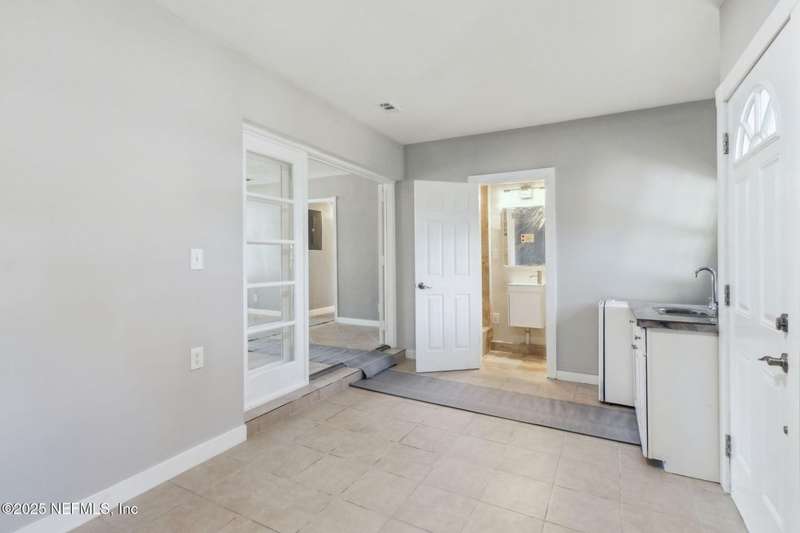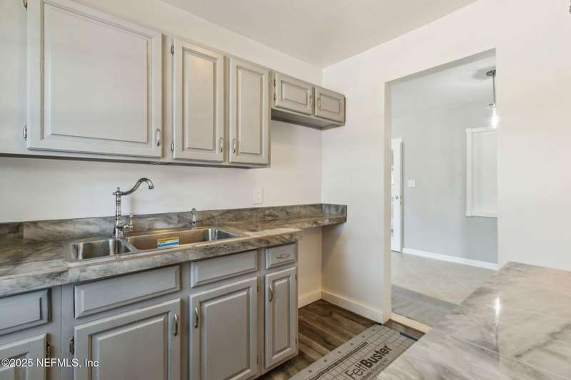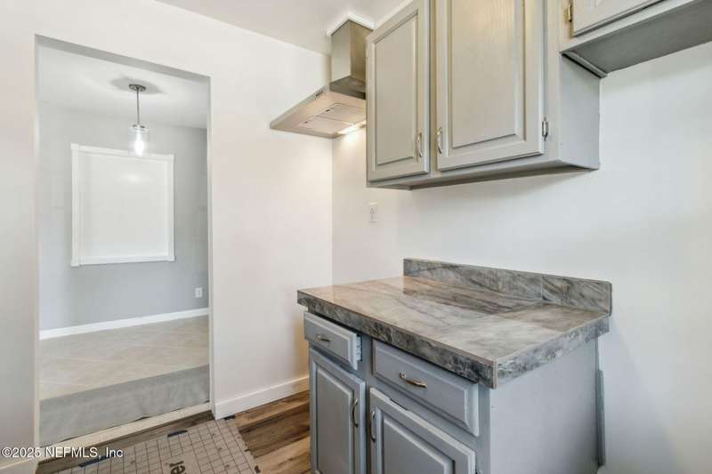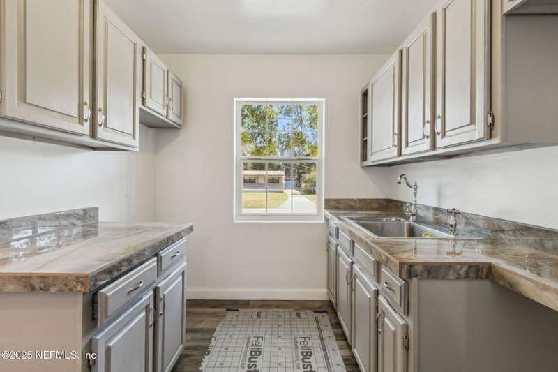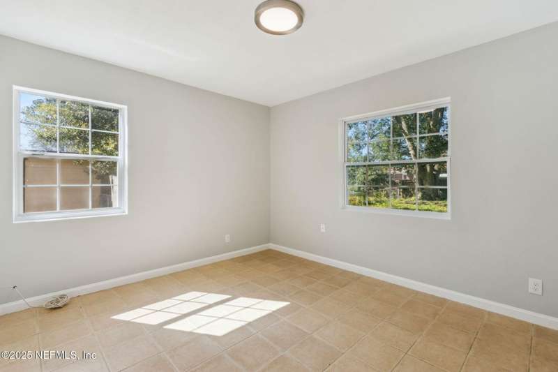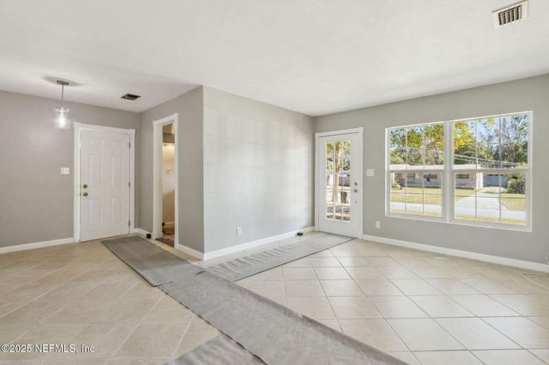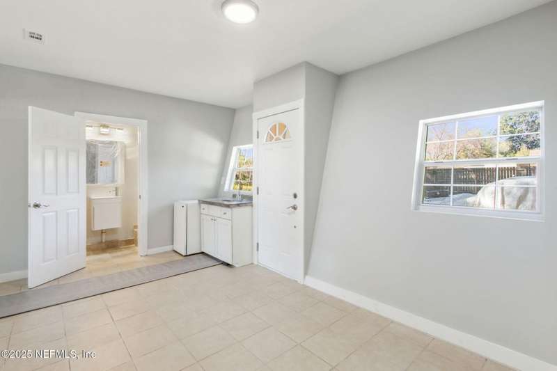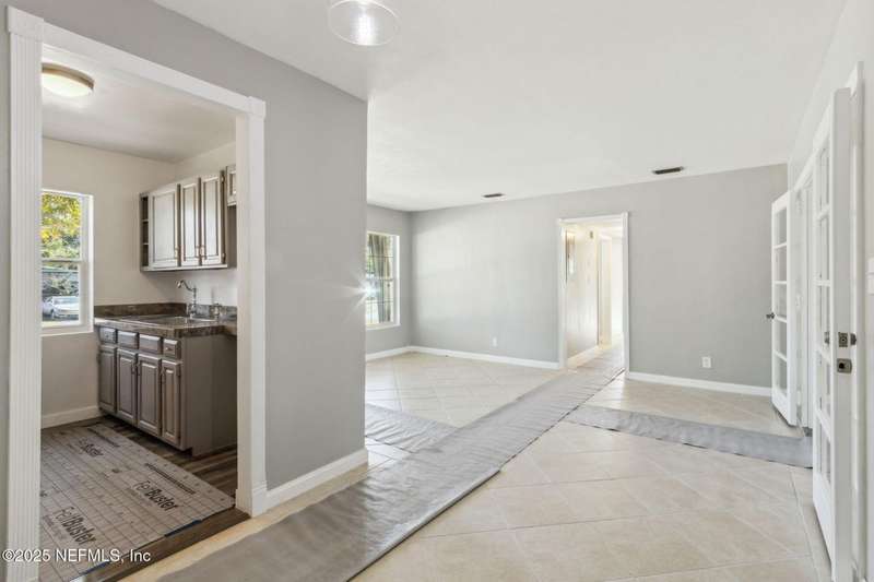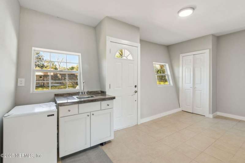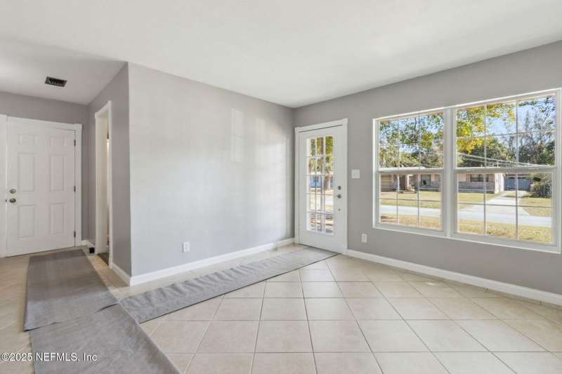 This renovated 4 BR, 2 BA concrete block home is located in a sought-after well-established neighborhood. A fresh coat of interior and exterior paint, along with new attic insulation, the home features new fixtures in bathrooms and kitchen. Other extras includes a new roof in 2022, newer windows and duct work. The bonus room, has its own private entrance and en-suite kitchenette - ideal for a home office or in-law suite. Parking is a spacious covered carport with a large laundry room behind double doors including EZ access to dyer vent cleaning. The fully fenced backyard is perfect for outdoor entertaining. The property is conveniently located near shopping, dining, plus NAS Jax, and Florida State College - Kent Campus. Easy access to I-10, I-295, and I-95 makes commuting a breeze.