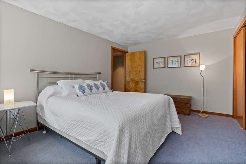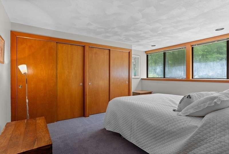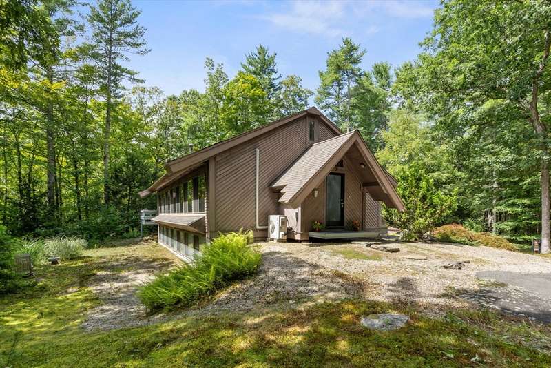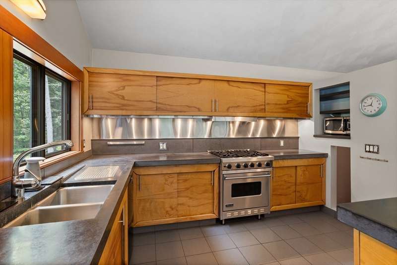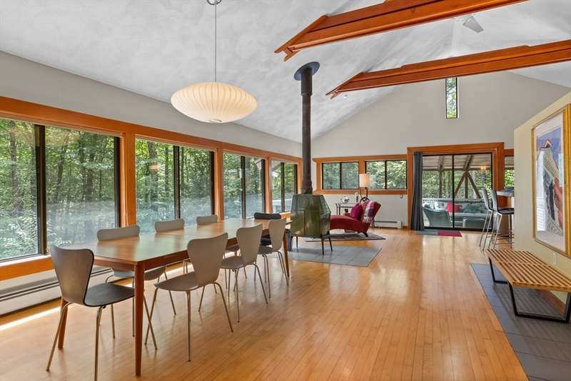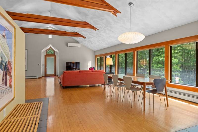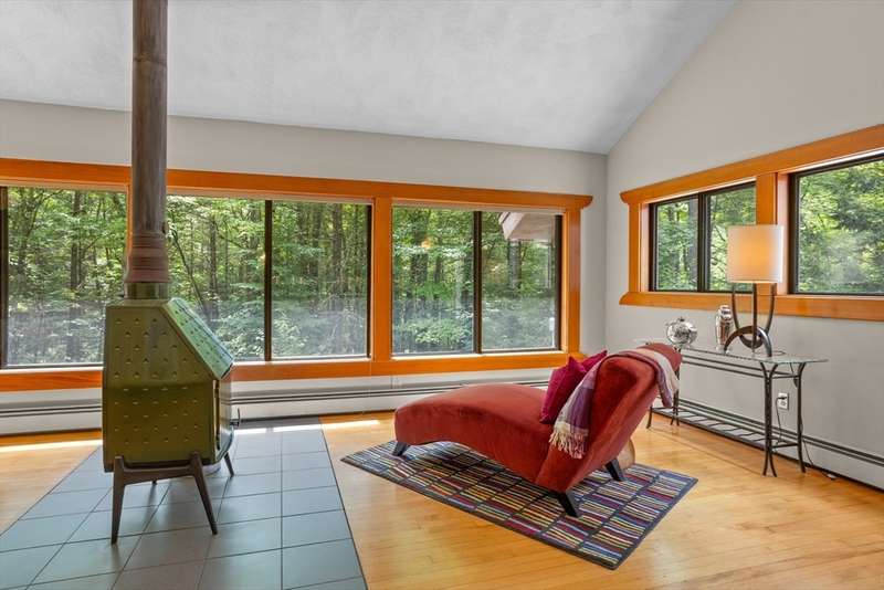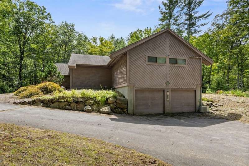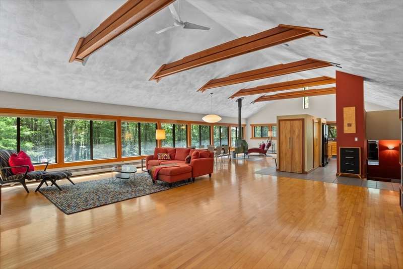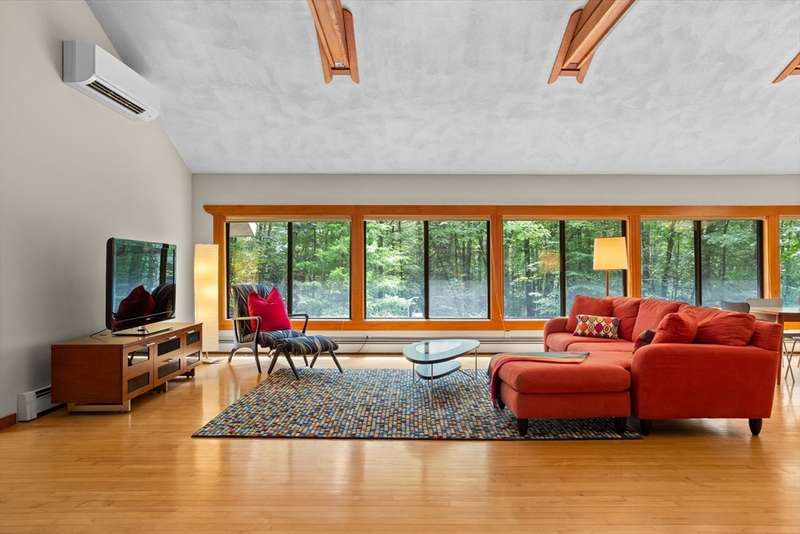 Discover this spacious 4 BR, home set on 4 acres of tranquil, wooded beauty. This home offers an open concept living space with gleaming hardwood floors and soaring cathedral ceilings framed by walls of windows, this home blends modern comfort with the serenity of nature. In the chef's kitchen, which features a Viking 6 burner stove and a two compartment dishwasher, a perfect place for cooking, entertaining and creating memories. The spacious first floor primary bedroom features cathedral ceilings, and generous closet space, the bathroom features a deep soaking tub with shower, while across the hall, there is a separate water closet with storage. Downstairs, you'll find three additional bedrooms each offering excellent closet space, along with a full bath featuring a double vanity. A convenient laundry room and adjoining workshop completes the home. Whether you are relaxing taking in the outside, hosting gatherings, exploring the outdoors, this home is a hidden sanctuary!