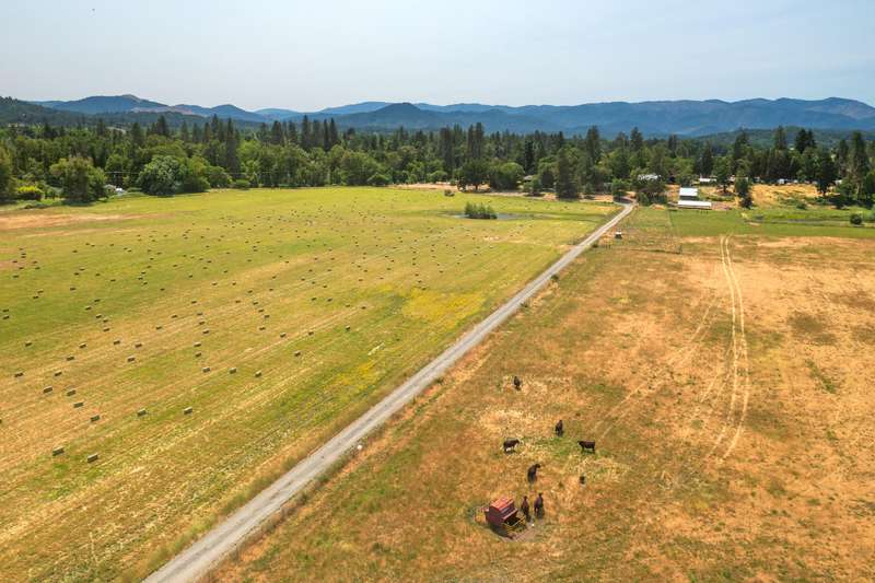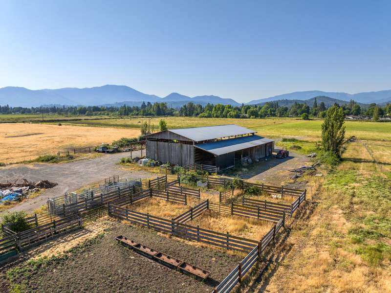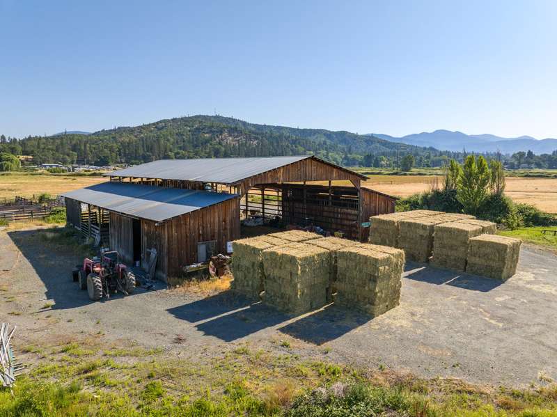 Set in the West Hills of Grants Pass, Kudlac Ranch offers 89.28 acres of productive farmland just 3 miles from downtown. Known for producing award-winning Hereford bulls, including the 2024 Supreme Champion at the Red Bluff Bull Sale, this ranch combines functional operational with natural beauty. With 85 irrigated acres and 55 acres of Class II soils, the land is well-suited for efficient, large-scale farming. The 2,350 SF farmhouse features 4 bedrooms, 2.5 bathrooms, an updated roof, HVAC, and vinyl windows—ready for your finishing touches. A standout feature is the 8,000 sq ft barn with generator-ready wiring, equipment bays, cattle handling facilities, and ample room for hay or vehicle storage. The property also includes a scenic pond and a sliver of Rogue River frontage, where irrigation water is pumped from. Just minutes from shopping, dining, golf, and boating, this is a rare opportunity to own a premier farmstead in a prime Southern Oregon location.