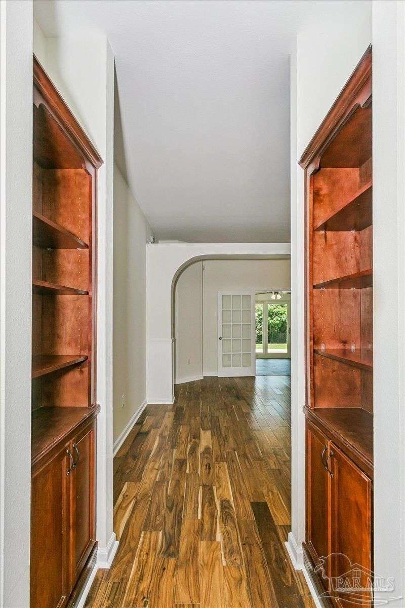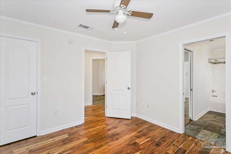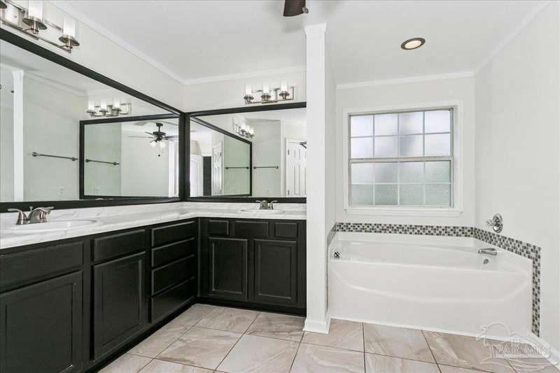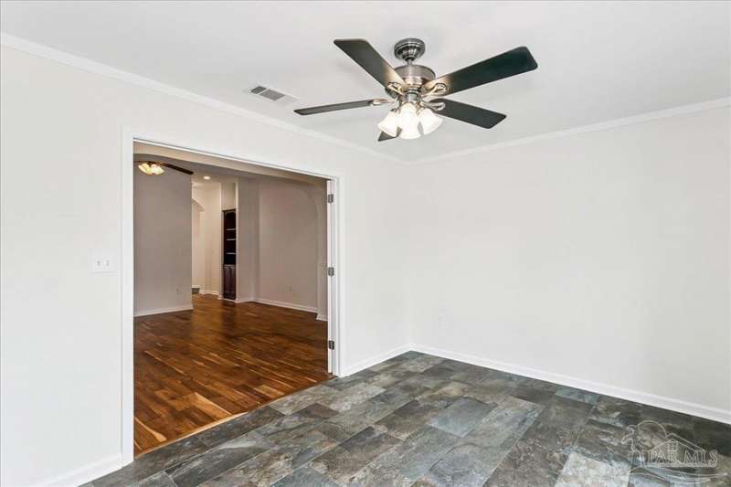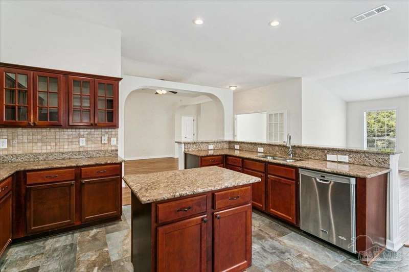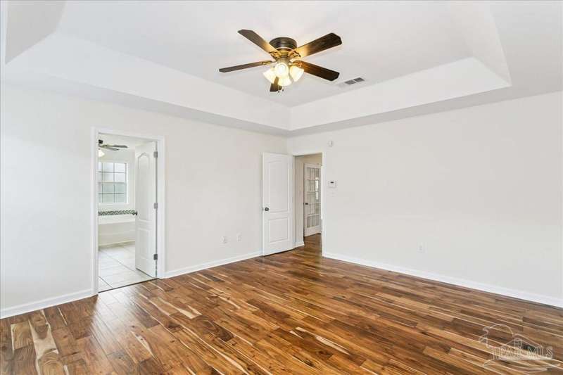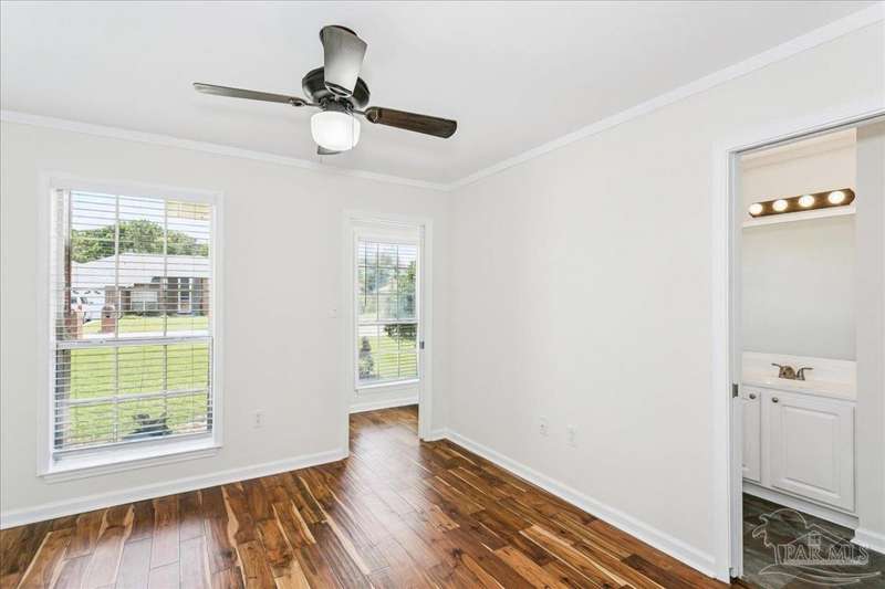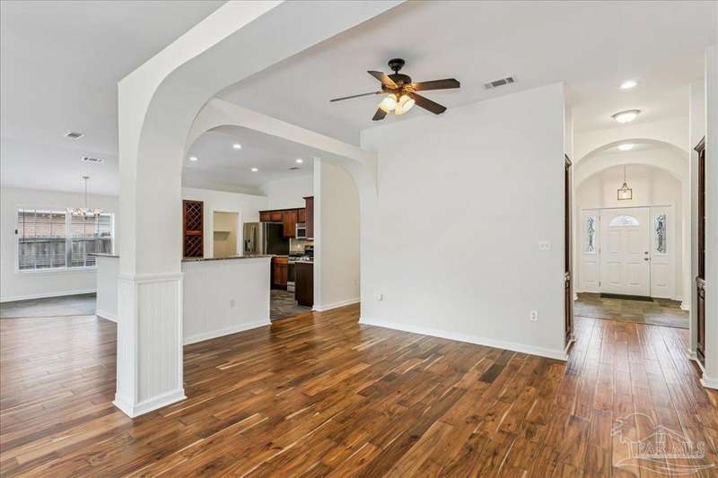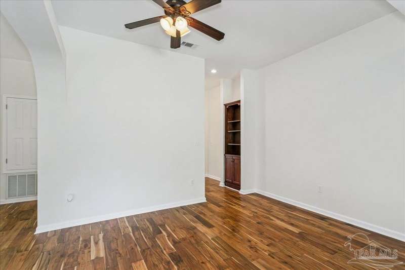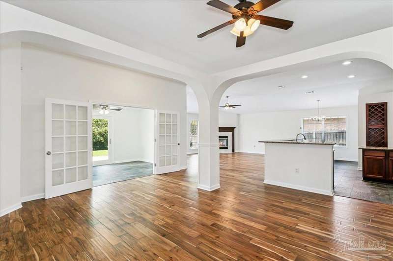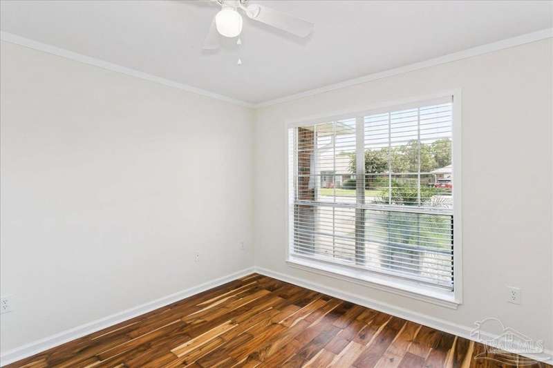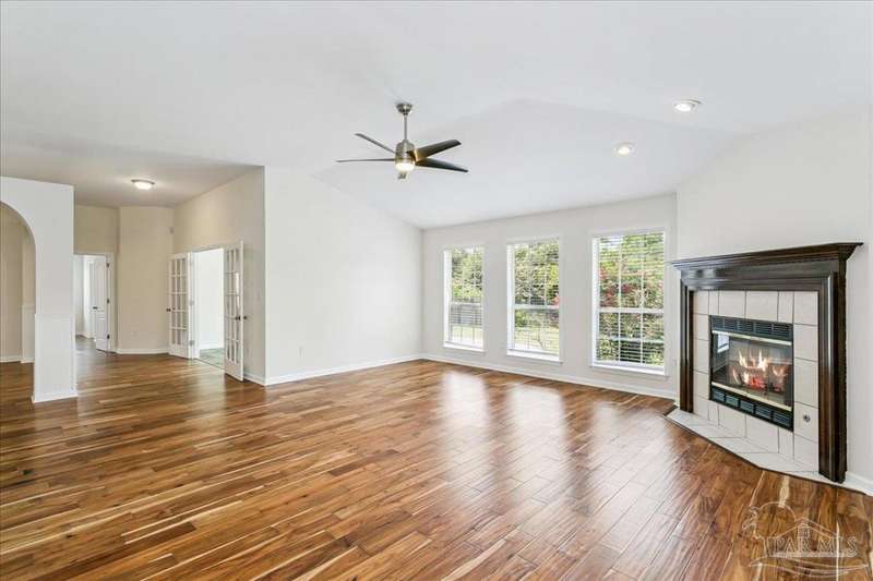 LOCATION! LOCATION! LOCATION! This beautiful brick home is tucked away in the back very desirable Estates at Emerald Shores subdivision. You'll enjoy all that this home has to offer that includes built-ins at foyer/entry hallway, high ceilings, engineered hardwood flooring in most of the main areas, tile flooring in kitchen, breakfast/dining nook, laundry, baths and sunroom, a spacious living room with gas fireplace, and large windows allowing plenty of natural light into your cozy gathering space. The kitchen offers granite countertops, wood cabinets, stainless appliances, tiled backsplash, island, pantry and a breakfast/dining area and laundry just off the kitchen. There's also a dedicated dining area (i.e., 'formal dining') to accommodate larger gatherings around the table. There are 4 bedrooms and 2.5 baths; main bath has a double-vanity, stylish wood cabinets & large wood-framed vanity mirror, updated vanity lighting, garden tub, separate walk-in shower, private water closet and oversized main closet. The backyard is privacy-fenced with plenty of space for those weekend gatherings for cookouts, and to maybe install a pool. The oversized 2-car garage is equipped with garage door opener & pulldown stairs to the attic. There's a sprinkler system on irrigation well, and a whole-home generator to offer convenience and comfort. So many wonderful features in this home, PLUS being in close proximity to the back-gate of NAS Pensacola, Naval Aviation Museum, Blue Angels practices, shopping, restaurants, downtown Pensacola, golfing, boating facilities, Big Lagoon State Park, Gulf Islands National Seashore on the sugar-white beaches and emerald green waters of Perdido Key, this is a great place to call HOME! Call TODAY to schedule a showing!