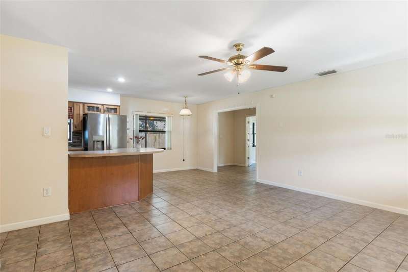 ONE OF THE GREATEST FEATURES OF THIS HOME IS THAT IT IS NOT IN AN HOA. This 4 bedroom 3 bath home is located in a peaceful and well-established Eustis neighborhood, close to the intersection of Highways 19 and 441. This home has 1857 square feet of heated and cooled living space on a generous corner lot. The open kitchen and family room combination provides a comfortable setting for everyday living and entertaining, while the large bonus room-currently used as a bedroom-adds value and flexibility to the floor plan. The primary bedroom includes an en suite bath for added privacy and convenience. Recent updates include a new Drain field installed in May 2024 and a roof replacement in October 2018, offering peace of mind to new homeowner. New flooring in one bathroom and bedroom has been added, as has new glass walls and door for the shower. This home is ideal for those seeking both space and comfort in a quiet, family-friendly community. Conveniently located near historic Eustis, as well as the charming communities of Mount Dora and Tavares, this home offers easy access to a variety of local restaurants, unique shops, and year-round festivals. Whether you're exploring the scenic lakefronts, enjoying weekend farmers markets, or dining al fresco at one of the areas many eateries, you'll love the vibrant lifestyle this central location provides - all while coming home to the peace and quiet of a friendly neighborhood setting.