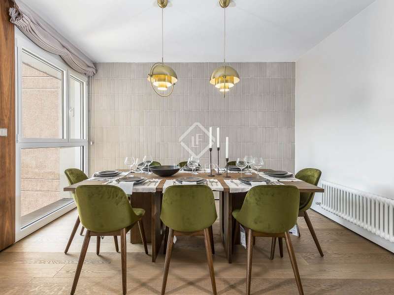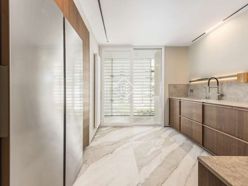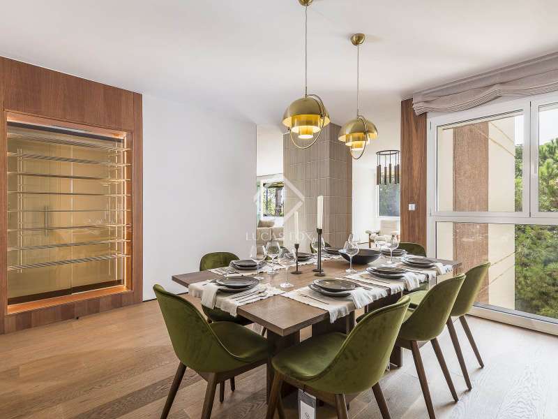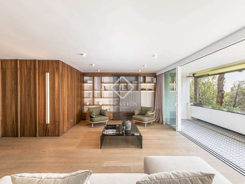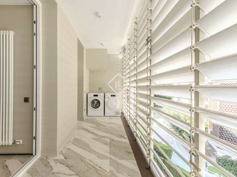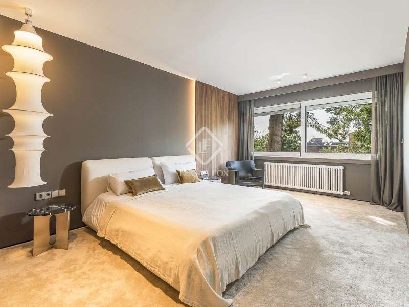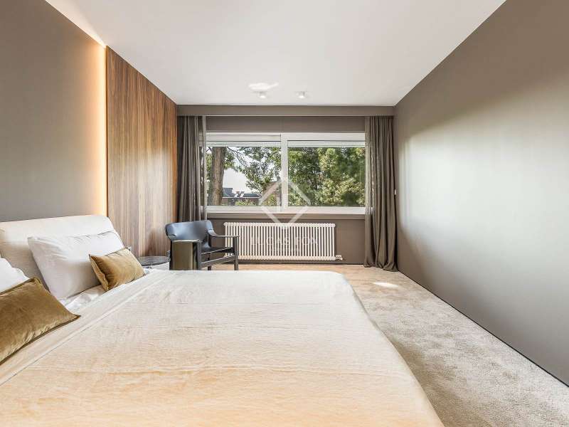 Renovated three-story apartment with large exterior rooms in one of the best areas of Pedralbes. Its surface is divided between a day area with a large living room and separate kitchen; a night area with five bedrooms and three bathrooms, and a service area with one bedroom and an additional bathroom . The pleasant 63 m2 living room is very bright and is divided in a functional and comfortable way between the dining area and the chill-out area. It also has access to a charming 9 m2 balcony with sun for most of the day. The kitchen is custom-made and equipped with high-quality appliances , including an induction hob, oven, microwave, dishwasher, refrigerator, freezer, extractor hood and osmosis system. Next to it, we have the independent service area. The night area is notable for its spacious rooms, which measure between 13 and 19 m2. The en-suite bedroom has a large dressing room and a private bathroom with a shower and bathtub. The four additional bedrooms share two bathrooms, each equipped with a shower. As for the qualities, we have double-glazed windows, ducted air conditioning and mains gas radiators. All this guarantees a perfect temperature throughout the year. In addition, the three-way orientation ensures permanent natural light. The price includes two parking spaces and a storage room, as well as a concierge service on La Finca. As the property is located within walking distance of Barcelona's most prestigious international schools and colleges, it will make a perfect home for a family looking for an exceptional lifestyle in the city's most sought-after neighbourhood . Contact us to arrange a viewing!
