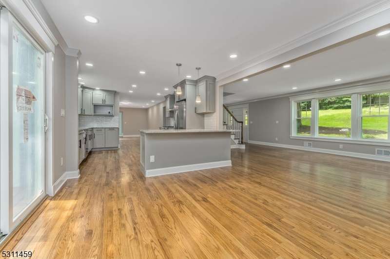 Welcome Home!!! Move-in ready. All you need to do is unpack your bags and enjoy. Renovated (2025) 1st Level - Kitchen - stainless steel appliances, granite countertops, new cabinets. Sliding glass doors open to large deck overlooking private rear yard. New windows. Upgraded molding throughout, lighting, glistening wood flooring throughout plus mudroom area, laundry room, bedroom/office with full bath, spacious living room, dining room, family room with entry access to garage complete this level. Second level includes 4 spacious bedrooms, new windows, wood flooring. Primary bath features quartz countertop vanity, curbless shower with custom door. Neutral paint colors throughout. Exterior features include new siding and poured concrete paths. There's much more to see- so schedule an appointment today - you won't be disappointed. Top rated town and school system plus easy access to major highways and trainline to NYC and vibrant Morristown area make this an ideal choice for your next home. Home is available for IMMEDIATE OCCUPANCY.