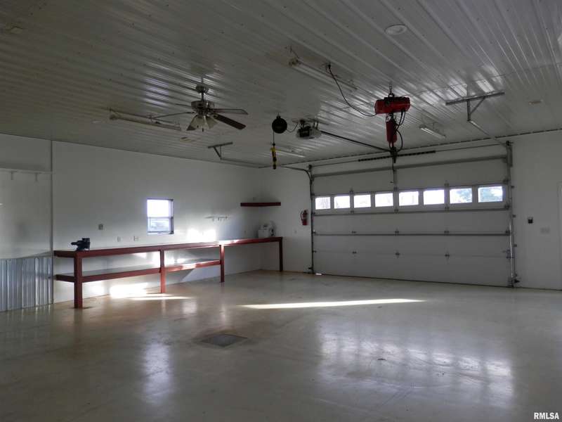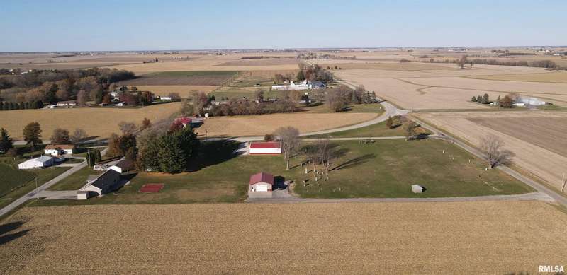 WOW, just WOW!! Priced under appraisal value! What an incredible 4-5 BR, 3 bath, 2600 finished sq ft ranch 2011 build home w/ 2 extra half baths in attached 2 car garage & detached 30x40 shop building, both finished, insulated, & heated w/ own furnaces, window AC units, attic storage & epoxy floors. Beautiful home layout features cathedral ceilings, brand new carpet to main level & lower level bedrooms, & fresh paint throughout over kal-kote plaster finished walls. Plenty of space to relax on the delightful front covered concrete porch or lovely decorative back concrete patio wired w/ hot tub outlet. Home & shop are offered on a 1.47 acre lot w/ garden plot. Lot lines will be approximately 365x150 plus 320x20 to encompass the separate rear driveway to shop outbuilding. One owner, contractor built home w/ solid concrete poured foundation & R19 insulation to walls w/ R38 to attic. All newer appliances stay including 2025 stainless steel refrigerator & main floor washer/dryer. Main BR on suite includes a 3/4 bath w/ walk-in shower plus an 8x5 walk-in closet. Video surveillance cameras & GE generator included! Trenched in down spouts. Embrace small town living, located conveniently only 20 minutes from Moline. City water & utilities. Septic.