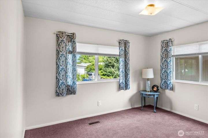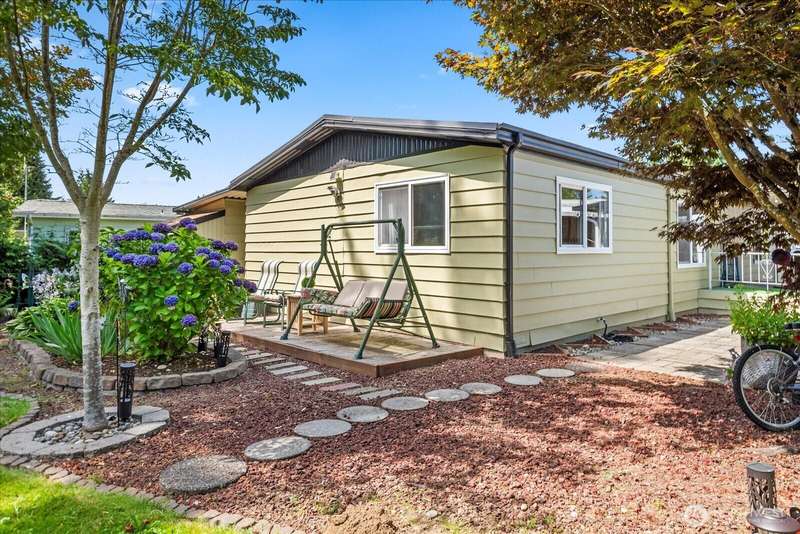 Welcome Home to Comfort in this 55+ Community! This move-in ready 3-bedroom home features a brand new furnace and inviting indoor-outdoor living. Relax on your private patio or cozy up on the small deck. Need space? Enjoy an 8’x10’ lighted shed for extra storage and a charming detached shed ideal for an art studio or personal office. A tandem 2-car covered carport keeps vehicles sheltered year-round. The pet-friendly community welcomes dogs under 40 lbs and cats, with RV parking and storage options available. Located near Alderwood Mall, with easy access to I-5 and 405 for shopping, dining, and commuting convenience. A place to settle in and feel at home!