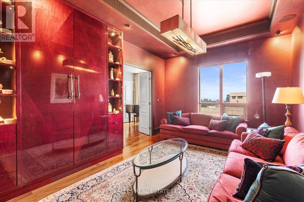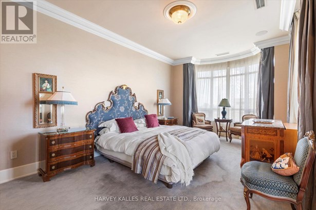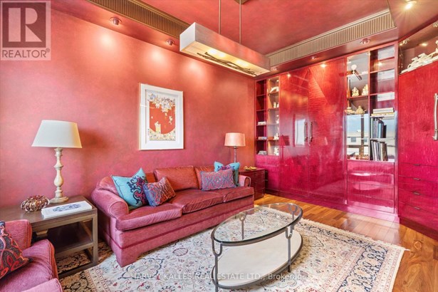 A rare and remarkable suite in the heart of Bayview Village. Originally designed as two separate units, the space has been expertly reimagined into a single, expansive 3-bed, 3-bath residence, offering exceptional scale, flow, and functionality. From the moment you arrive, the attention to detail is evident. Aside from the main suite entrance, this unit offers 2 private entrances from 2 separate elevators. The main elevator opens privately into the suite and the separate Butler's elevator opens into the mudroom - a level of privacy and convenience rarely found in condo living. Inside, you'll find a thoughtfully curated interior finished with granite floors in the hallways and kitchen, rich walnut hardwood throughout, and elegant wallpaper accents that add refined character to each room. The custom kitchen is a chef's dream, featuring cognac walnut cabinetry, granite countertops, and a full suite of premium stainless steel appliances: KitchenAid duo oven, countertop range, dishwasher, and a Panasonic microwave. A Sub-Zero Fridge completed the kitchen with matching cabinet panelling. A secondary stainless steel LG Fridge is available in the secondary mudroom. All of this to say, you're well-equipped for daily living and entertaining. Enjoy two generous balconies for morning coffee or sunsets, along with a dedicated private lounge/library/TV room - perfect for quiet relaxation or hosting guests. The primary suite is a luxurious retreat with a walk-in closet, custom-built-ins, and a spa-style ensuite boasting a glass walk-in shower, heated floors, and a TOTO Washlet toilet. Throughout the suite, thoughtful details such as crown moulding, light valances, and automated curtains and drapes elevate the space. This upscale building offers a full suite of resort-style amenities: fitness and wellness facilities (pool, gym, steam room, hot tub), entertainment spaces (party and game rooms), as well as practical conveniences like concierge, valet, guest suites, and ample parking.