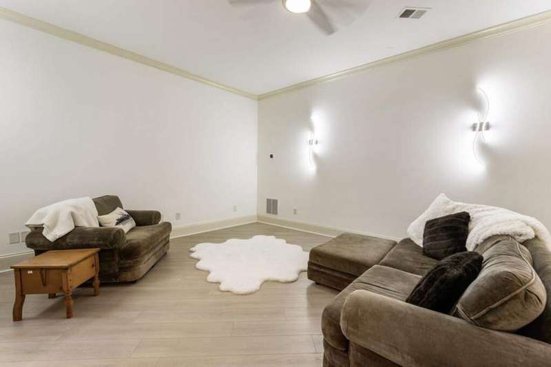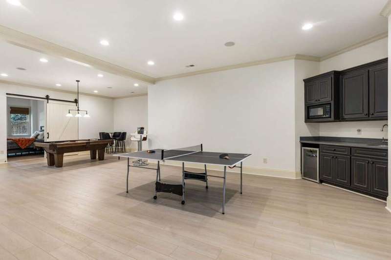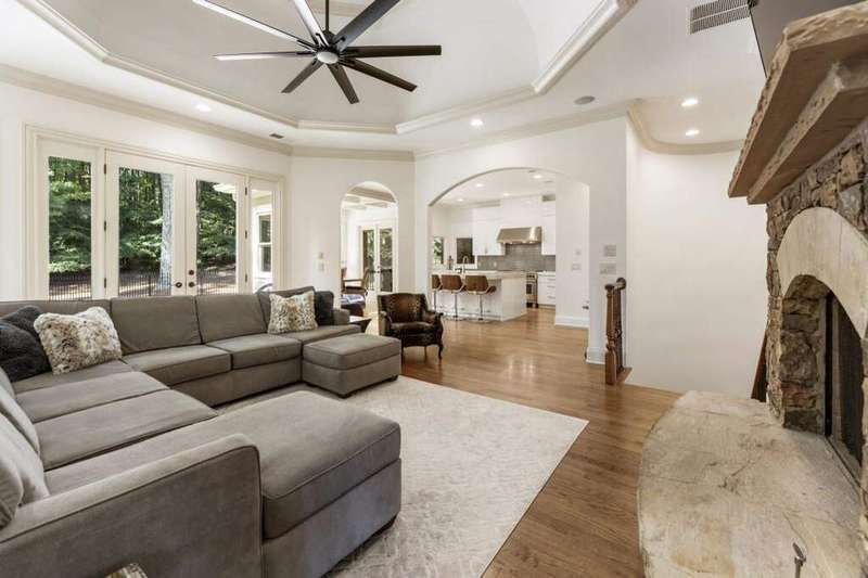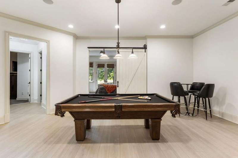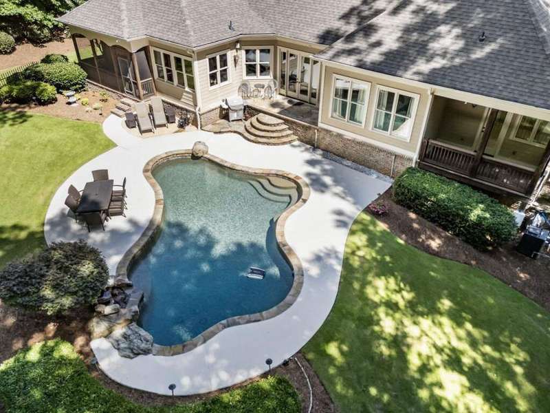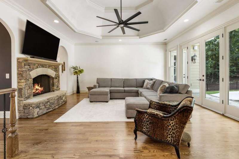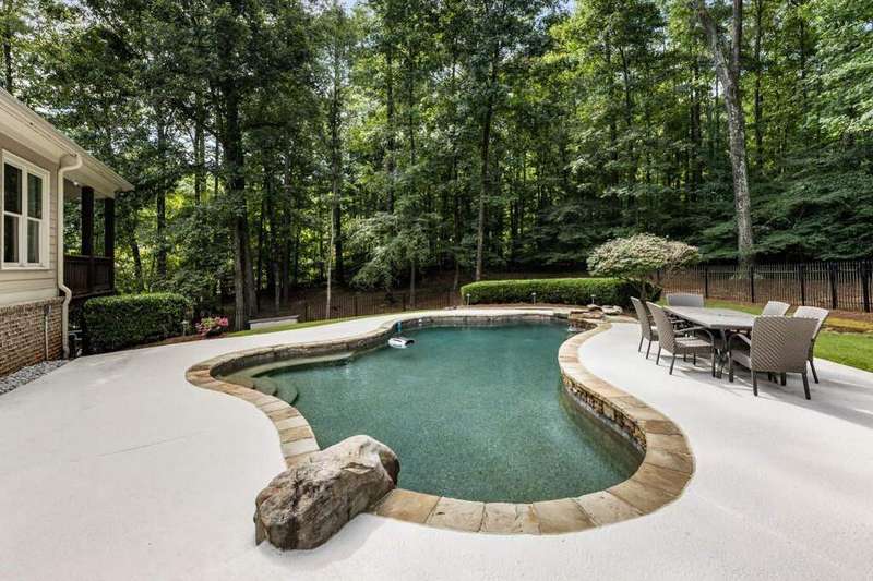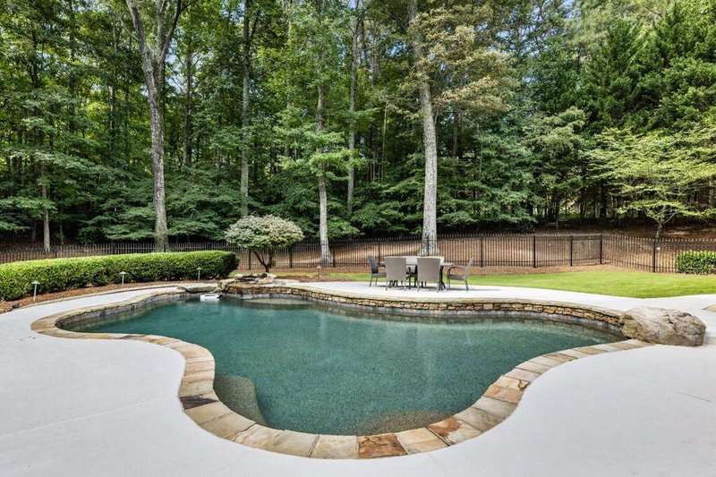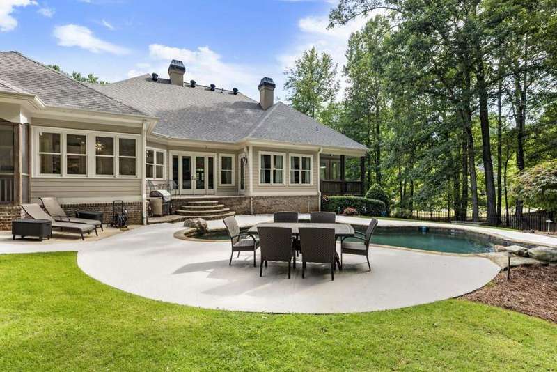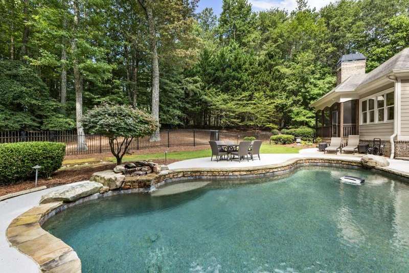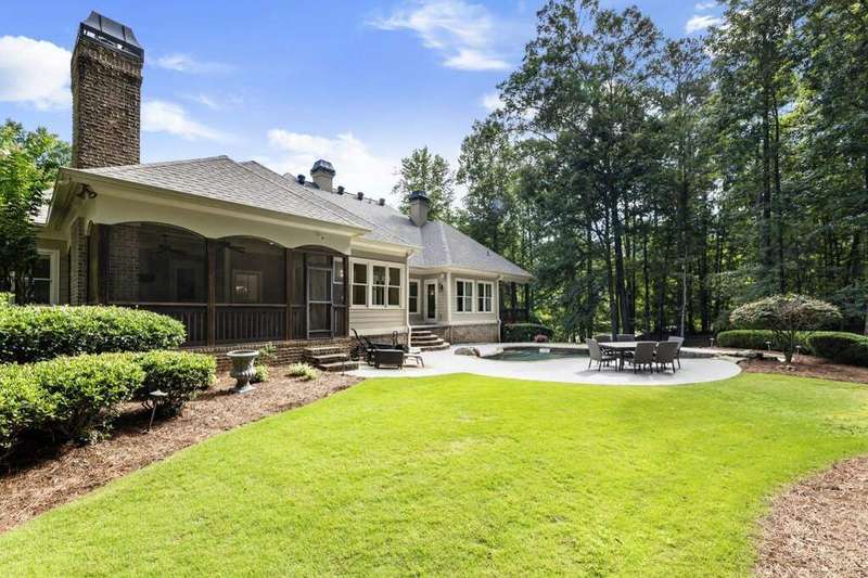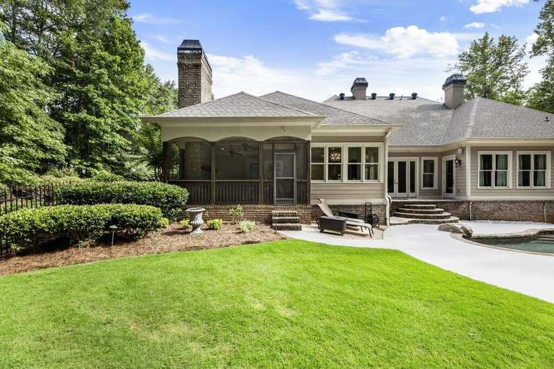 Welcome to this beautifully updated one level ranch style home that offers walk-out on the main level to your outdoor oasis featuring a gunite sparkling pool, a screened porch, and lots of outdoor entertaining space. This gorgeous home is located in Forsyth county and situated at the end of a quiet cul-de-sac in gated enclave of luxury homes. The charming front porch offers a warm welcome and sets the tone for the comfort and quality found throughout the property. Upon entering through the front door, you are greeted by a formal dining room on your right and a private study on your left, complete with built-in bookcases. This thoughtful layout creates a balanced and inviting entry that leads effortlessly into the main living space. The heart of the home features an open-concept kitchen design with this oversized island that offers seating and open concept. The completely modernized kitchen with all new appliances opens to the living room and screened porch. A centrally located fireplace serves as a warm and welcoming focal point, perfect for both everyday living and entertaining. Just off the kitchen, a screened-in back porch with its own fireplace offers a comfortable outdoor living space that can be enjoyed year-round. The primary suite is a peaceful and well-appointed space. The ensuite bathroom features separate dual vanities, two walk-in closets, and a large walk-in shower. A private bonus room, currently used as a home gym, adds function and flexibility. A second bedroom with ensuite is also located on the main floor. The fully finished basement includes two additional bedrooms, two full bathrooms, one half bathroom, a generous media room, and a wet bar. The lower level offers multiple flexible living spaces ideal for craft room, media space, movie room, ping pong or pool table room perfect for entertaining & hosting guests. Every major system has been thoughtfully updated including pool heater, HVAC, water heaters, roof replaced and freshly painted interior with all bathrooms and the kitchen perfectly updated. Even the garage has been upgraded with the flooring recently completed. This home offers timeless design, modern upgrades, and a serene setting. Minutes to GA 400, and shopping/dining at The Collection, Halcyon, and Avalon. Enjoy living with the convenience of Fowler Park and the Greenway right outside of your community!