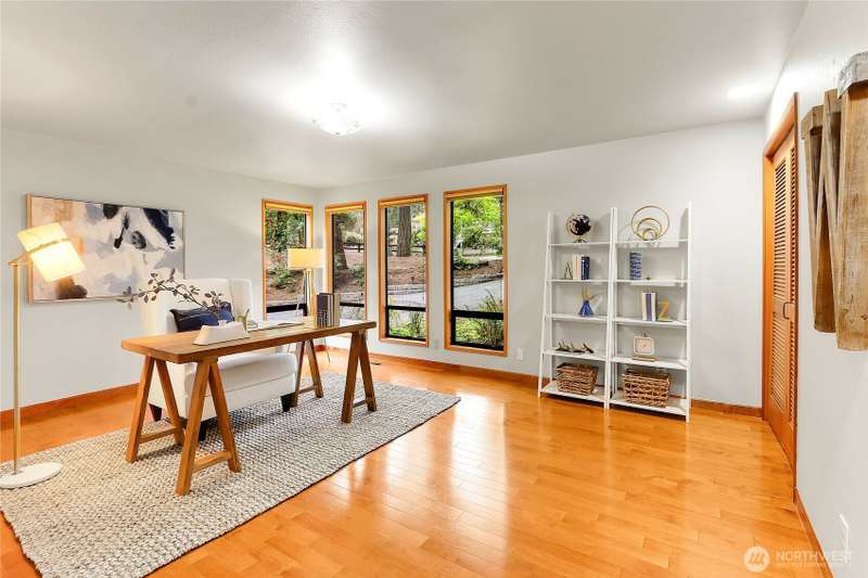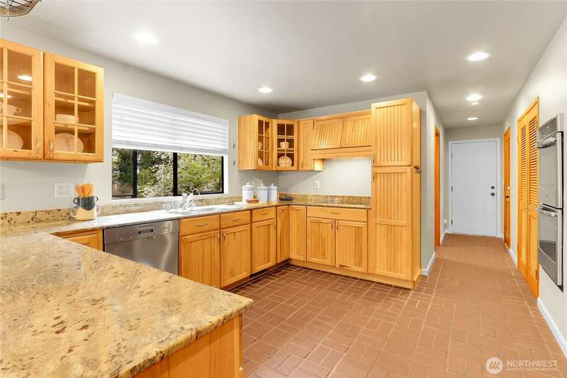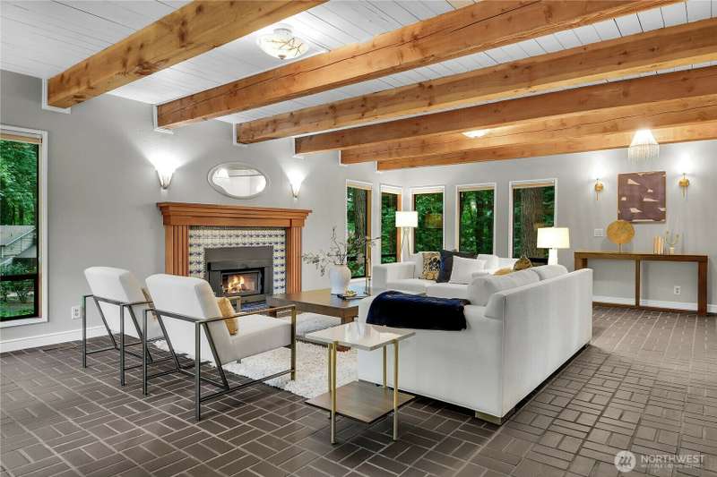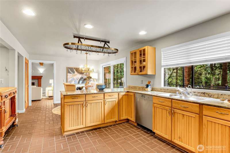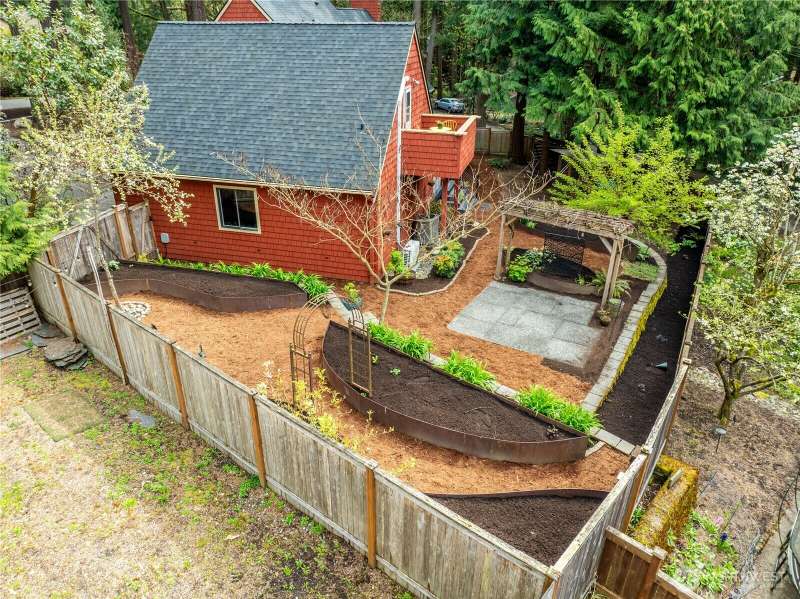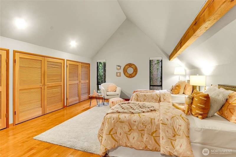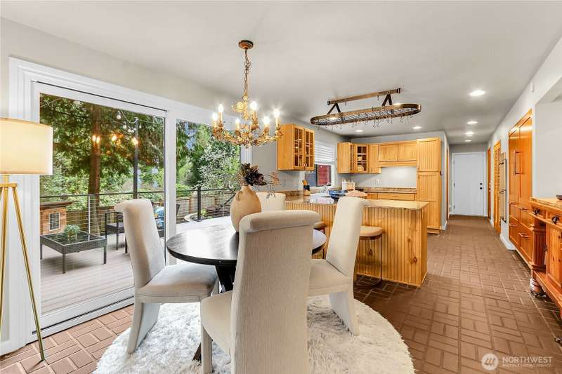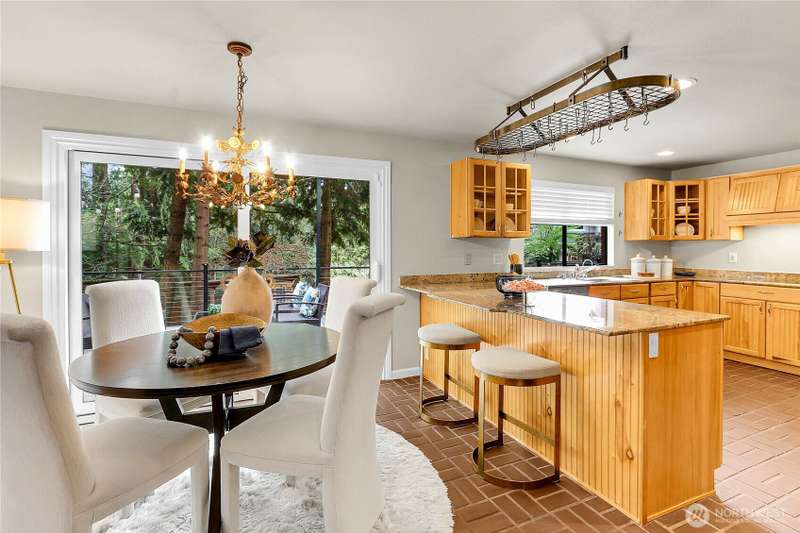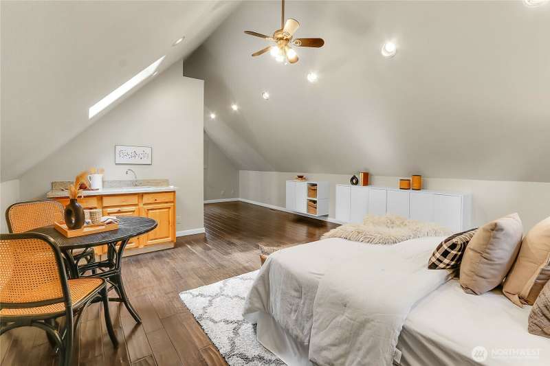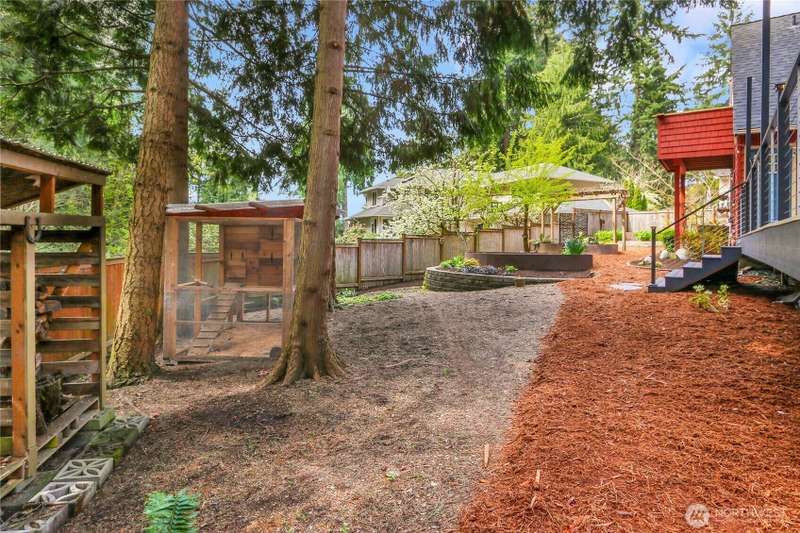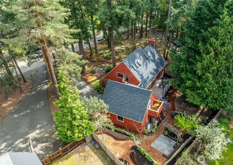 Tucked away in a peaceful setting, this exceptional home offers timeless charm & modern comfort. The spacious living rm features exposed beams, high ceilings, a cozy fireplace, & lrg windows framing views of gardens & surrounding woodlands. The kitchen is beautifully appointed with hickory cabinets, high-end appliances, & ample pantry space—opening to a generous deck ideal for entertaining. Brick& hardwood floors, skylights, & custom woodwork add warmth & character throughout. 2 bedrm. up A legal ADU above the garage offers flexible space for guests, Airbnb, or a private office. Outside, enjoy lush garden beds, a chicken coop—your own private escape just minutes from O.O. Denny Park, scenic walking & biking trails, and city.