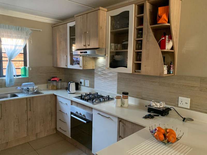 Discover comfort and convenience in this stylish 96 sqm ground floor unit, ideally situated in a well-maintained security complex. This light-filled home offers 2 spacious bedrooms and 2 bathrooms, including a main en-suite with shower and toilet, with a flexible layout that includes a sunroom, perfect as a study or even a guest bedroom. The modern, open-plan kitchen is fitted with Ceasarstone countertops, a gas hob, and an undercounter oven, flowing effortlessly into the spacious lounge and out to the low-maintenance garden and patio area, great for relaxing or entertaining. Additional features include: Double carport Prepaid electricity and fibre connection Access-controlled complex with electric fencing, CCTV, and 24-hour security Communal braai area for social gatherings Enjoy secure, lock-up-and-go living with all the modern comforts you need. Ideal for professionals, small families, or investors!