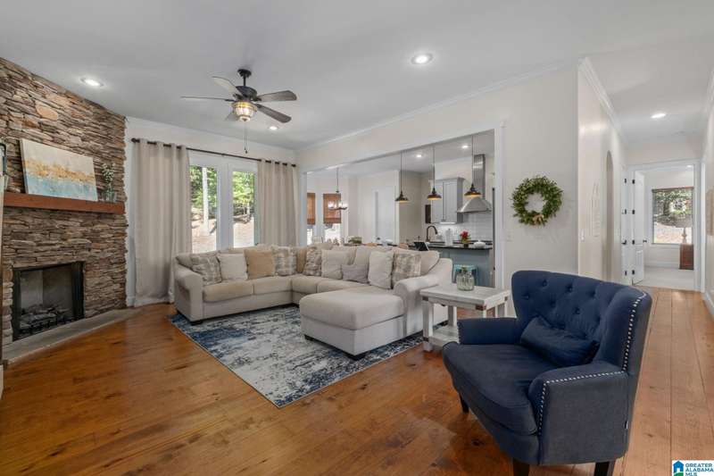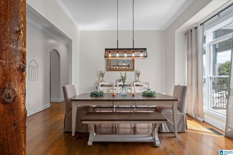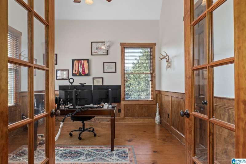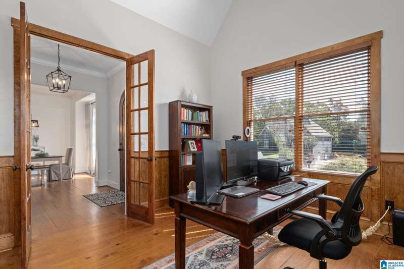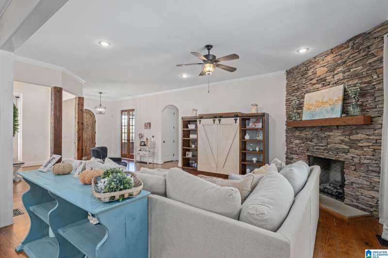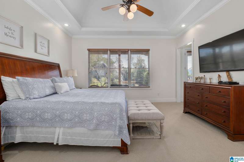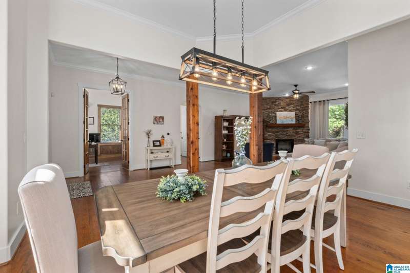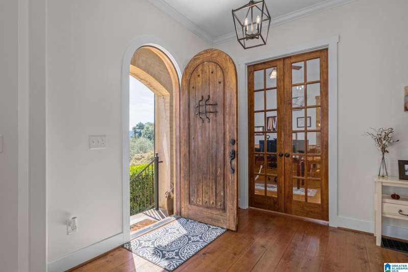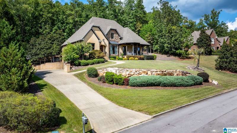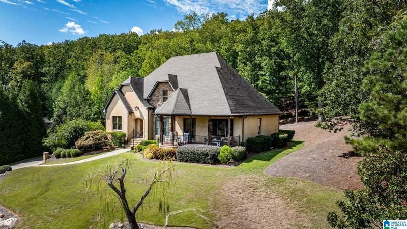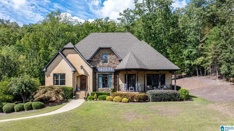 Nestled on a private 1.3 acre lot in the desirable Greystone Cove community, this custom home offers stunning mountain views and exquisite craftsmanship. The open floor plan features wide plank hardwood floors flowing from the foyer into the dining room, great room, and kitchen. The great room includes a stacked stone gas log fireplace, and the dining room boasts a charming wood beam column entrance. The chef's kitchen is designed with custom cabinetry, granite countertops, an island with breakfast bar, and stainless steel appliances. A private office with vaulted ceilings is accessed through French doors off the foyer. The main level master suite offers vaulted ceilings, his-and-her walk-in closets, a sitting room, and private access to the covered porch. The spa-like master bath has dual vanities, a jetted tub, and separate shower. Upstairs, two additional bedrooms, two baths, and a den offer extra living space. The finished basement is great for entertaining. Make this home yours!