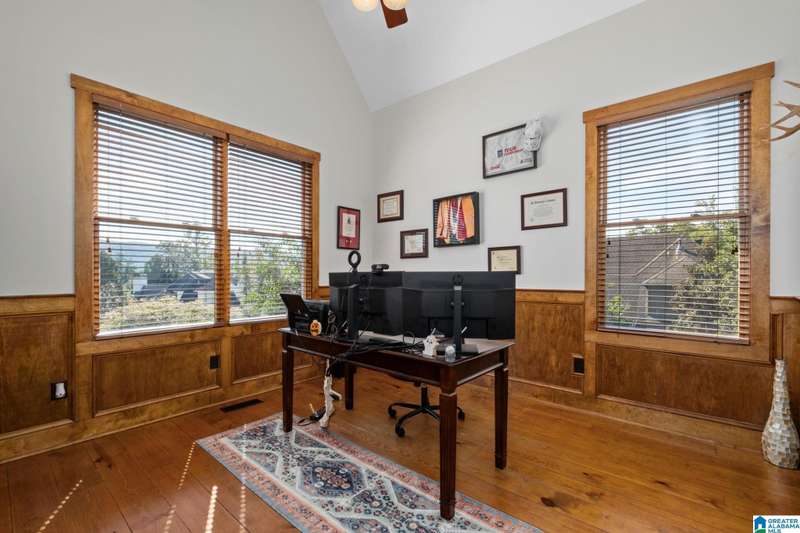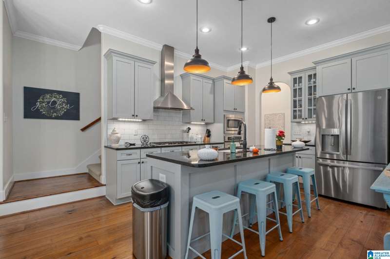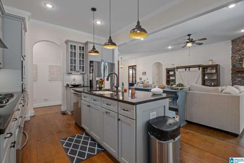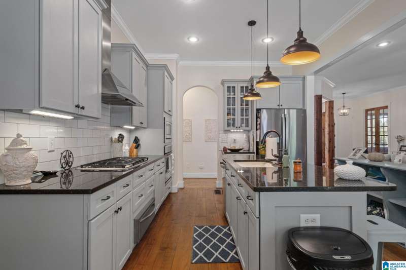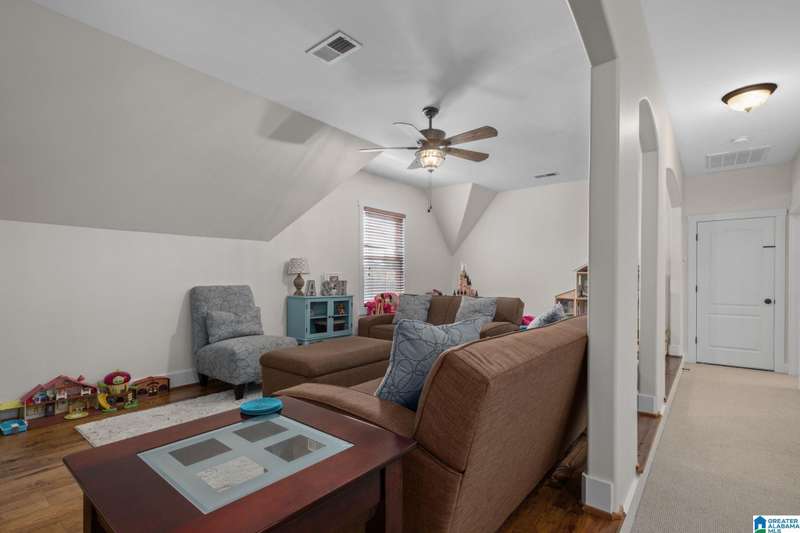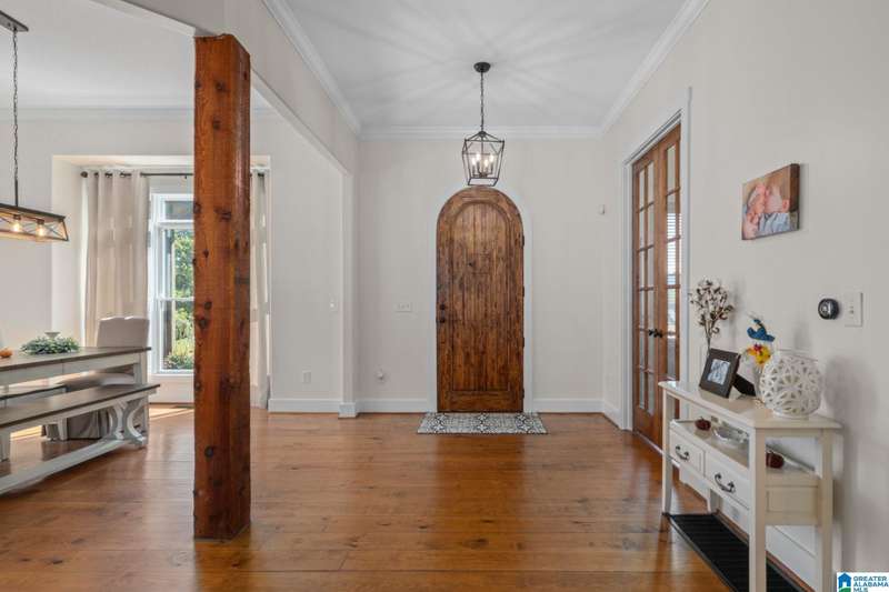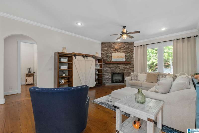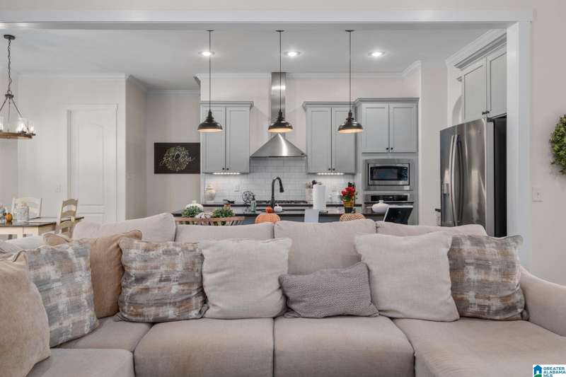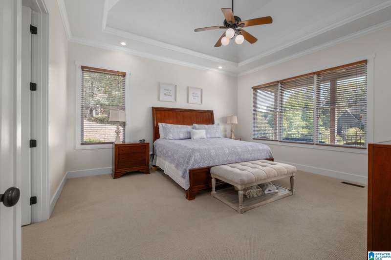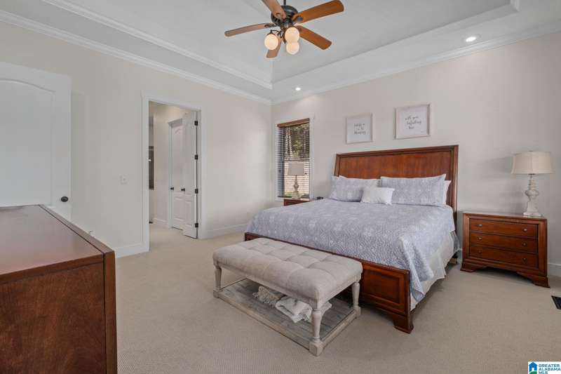 Nestled on a private 1.3 acre lot in the desirable Greystone Cove community, this custom home offers stunning mountain views and exquisite craftsmanship. The open floor plan features wide plank hardwood floors flowing from the foyer into the dining room, great room, and kitchen. The great room includes a stacked stone gas log fireplace, and the dining room boasts a charming wood beam column entrance. The chef's kitchen is designed with custom cabinetry, granite countertops, an island with breakfast bar, and stainless steel appliances. A private office with vaulted ceilings is accessed through French doors off the foyer. The main level master suite offers vaulted ceilings, his-and-her walk-in closets, a sitting room, and private access to the covered porch. The spa-like master bath has dual vanities, a jetted tub, and separate shower. Upstairs, two additional bedrooms, two baths, and a den offer extra living space. The finished basement is great for entertaining. Make this home yours!