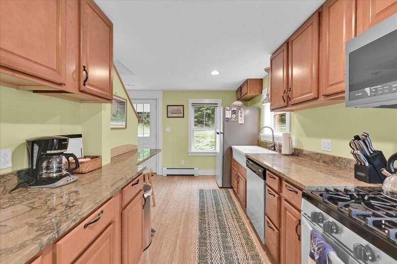 Welcome to the Honeymoon Cottage! This sweet 1940s gambrel single family home has been completely renovated 10 years ago and sits on over 2+ acres just outside of historic Castine village. Offering 3-4 bedrooms, this home has been beautifully maintained and expertly managed by its owners in a way that belies the fact that it has also been a very successful rental in it's recent history. Well loved by it's VRBO summer guests over the years, most return in subsequent years to re-experience the Honeymoon Cottage's charm as well as proximity to the village's amenities. The home's layout and room flow lend themselves for use as a perfect family home, retirement home (offering 1st floor bedroom), or investment property. A 4th bedroom (below grade) benefits from a separate entrance and would alternately make a convenient home office. A new deck with composite decking next to an enclosed porch allows for three season enjoyment above the backyard patio. A beautiful spot to enjoy all that Castine has to offer, with the village close by -- golf, boating, public beach, shops and restaurants, plus just under an hour to beautiful Acadia National Park