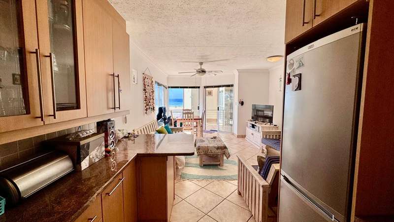 Experience coastal living at its finest in this beautifully appointed 2-bedroom, 2-bathroom apartment. Nestled in a sought-after location just a few steps from the beach, this bright and spacious apartment offers a seamless blend of comfort, style, and natural beauty. Central open living area for relaxing, entertaining, or watching TV—usually the heart of the apartment, open with sliding doors open onto a semi enclosed patio with build-in braai and a private small storage room. Two Generous Bedrooms both with built-in wardrobes; the master bedroom includes an en-suite and direct balcony access, Secure basement parking for one vehicle.