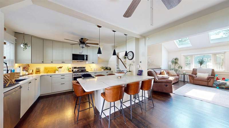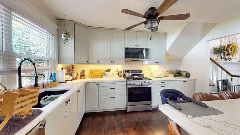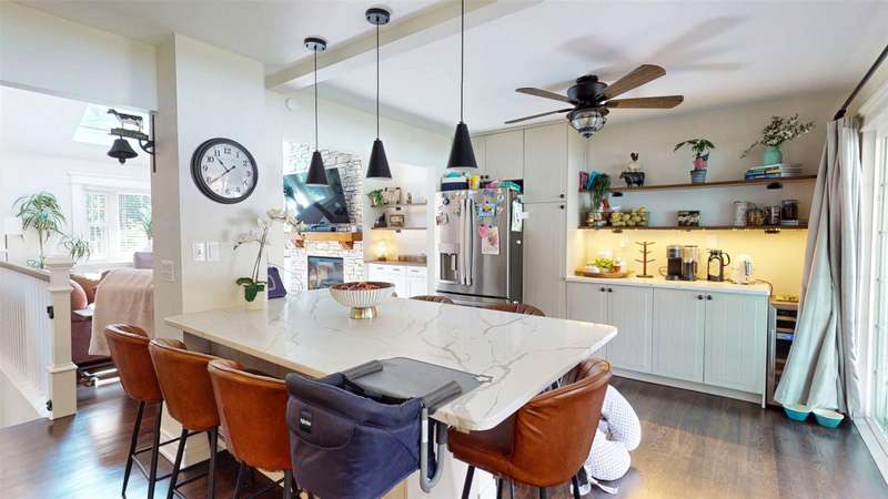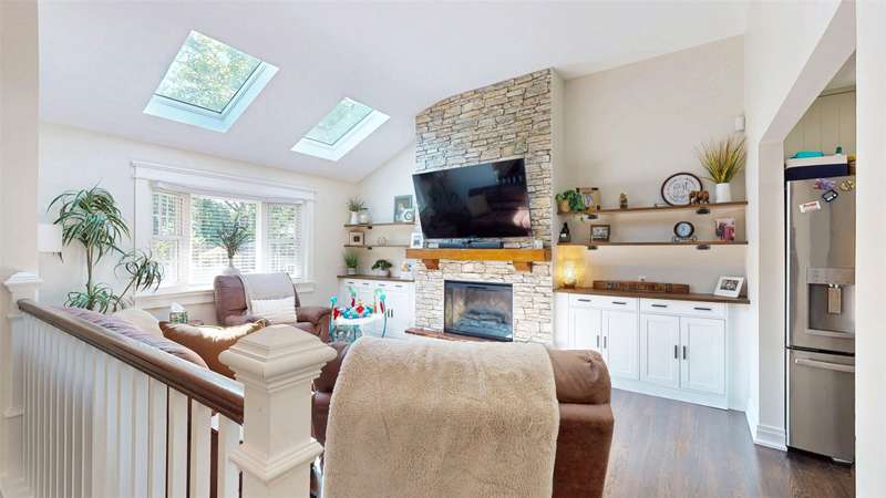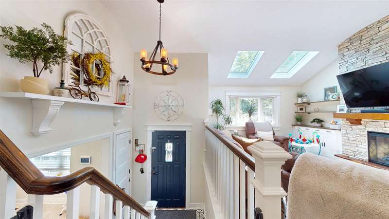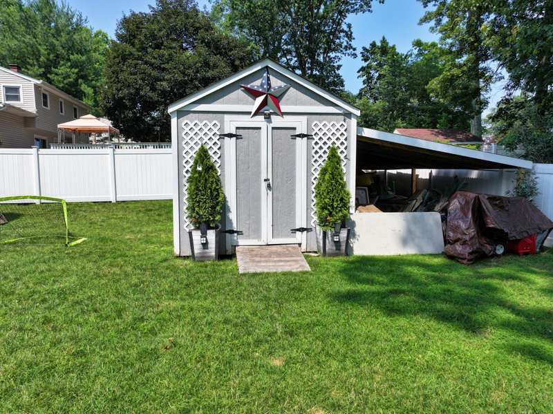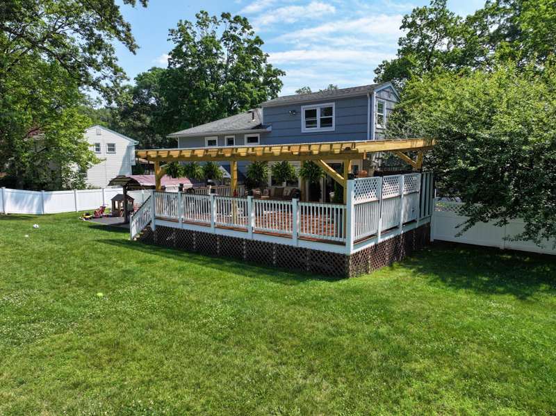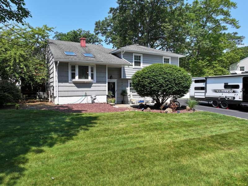 Welcome to 114 Shetland Drive! Set in a quiet, commuter-friendly neighborhood, this thoughtfully updated 4-bedroom, 3-bathroom Split Level home offers comfort, convenience, and charm all under one roof. When you enter, you will see the Family Room with built in TV Entertainment unit, access to the rear yard and garage. The 1/2 Bath finishes off the first floor. On the Second floor you have the renovated kitchen featuring modern finishes, granite counters, ample cabinetry, pantry, reverse osmosis system, stainless steel appliances, Center Island with storage and seating for 8. Kitchen is open to the Living Room with an electric fireplace, skylights and built in shelving and storage. The Third floor has a Full Bath, the Primary Bedroom with 1/2 Bath and 2 additional bedrooms. The Fourth Floor has a bright airy bedroom with 2 large closets. The Basement area offers additional storage and laundry area with ample shelving. Step outside to enjoy a spacious fenced-in yard complete with an inground sprinkler system. A large Trek deck with adjacent patio set the stage for gathering or morning coffee. Parking is made easy with a private driveway, and you'll find Laurel Plains Elementary School just a short walk away. Shopping, public transportation. The nearby Nanuet train station and major highways offer smooth access to the city or weekend getaways. Additional updates include custom blinds, new interior doors, entryway coat closet, interior railings, baseboard and trim around windows. If you re seeking a move-in-ready home with outdoor appeal and smart updates, this one might just win your heart.